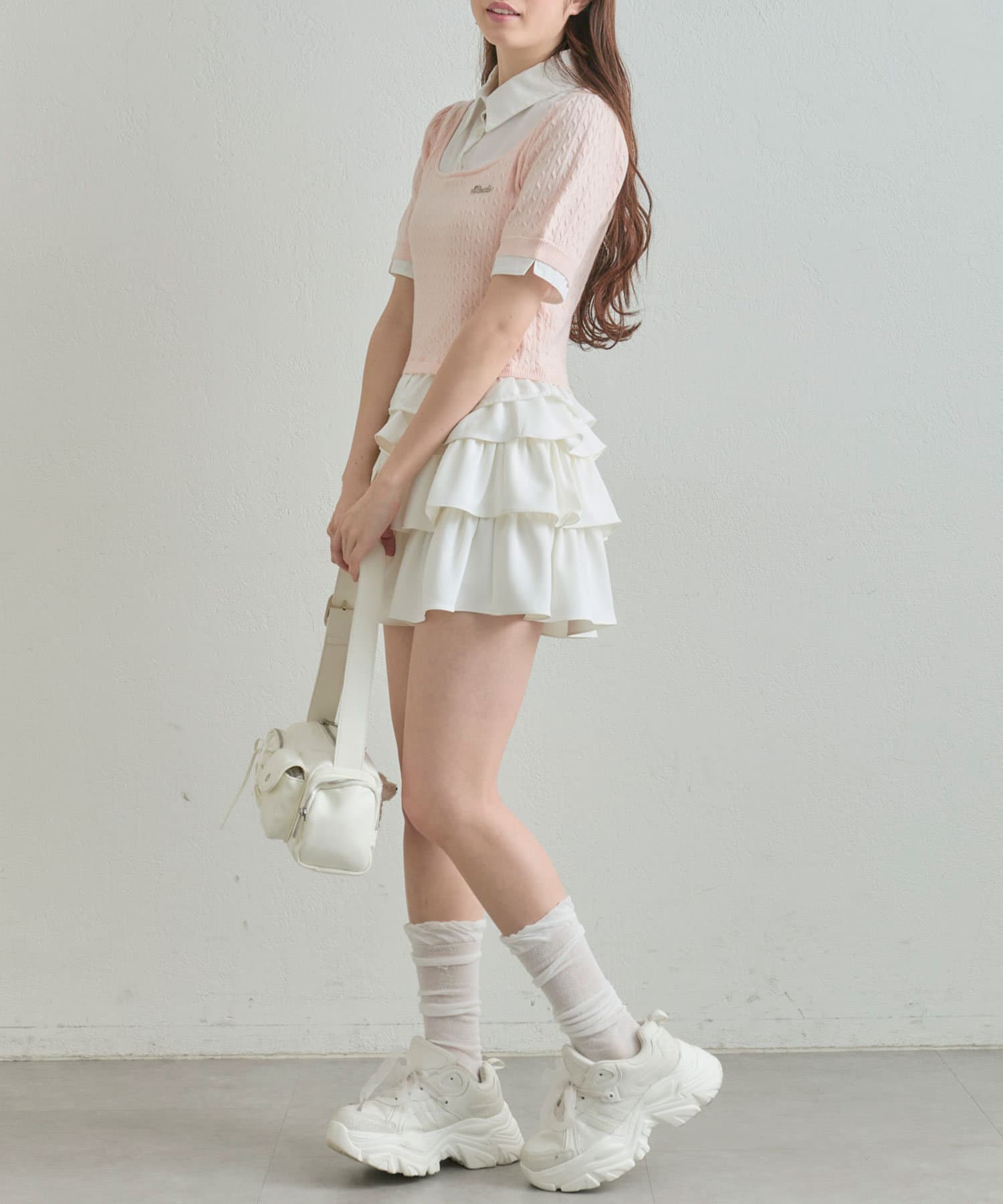 ・ティアードスカートと合わせると、甘めなガーリーコーデに仕上がります。