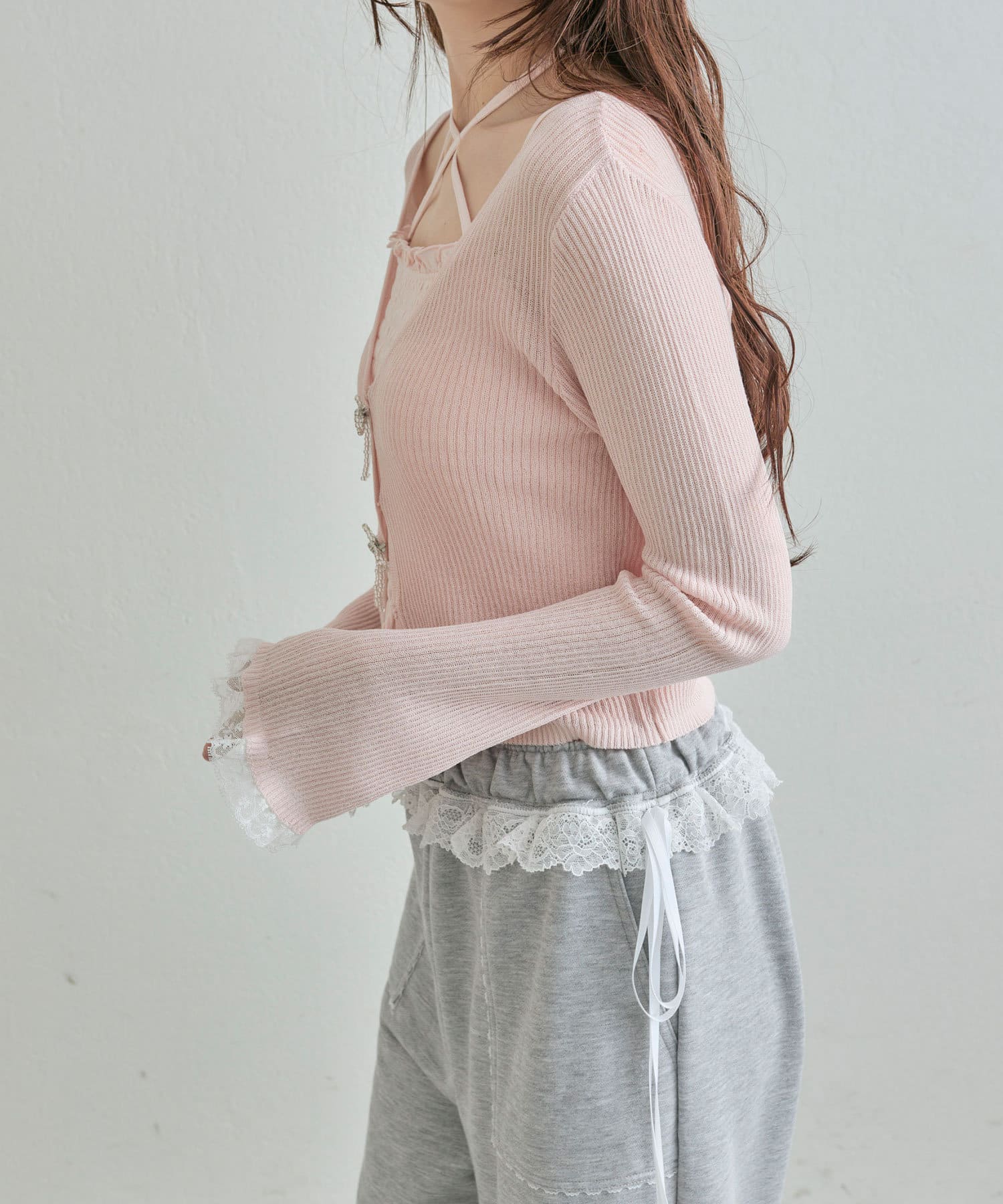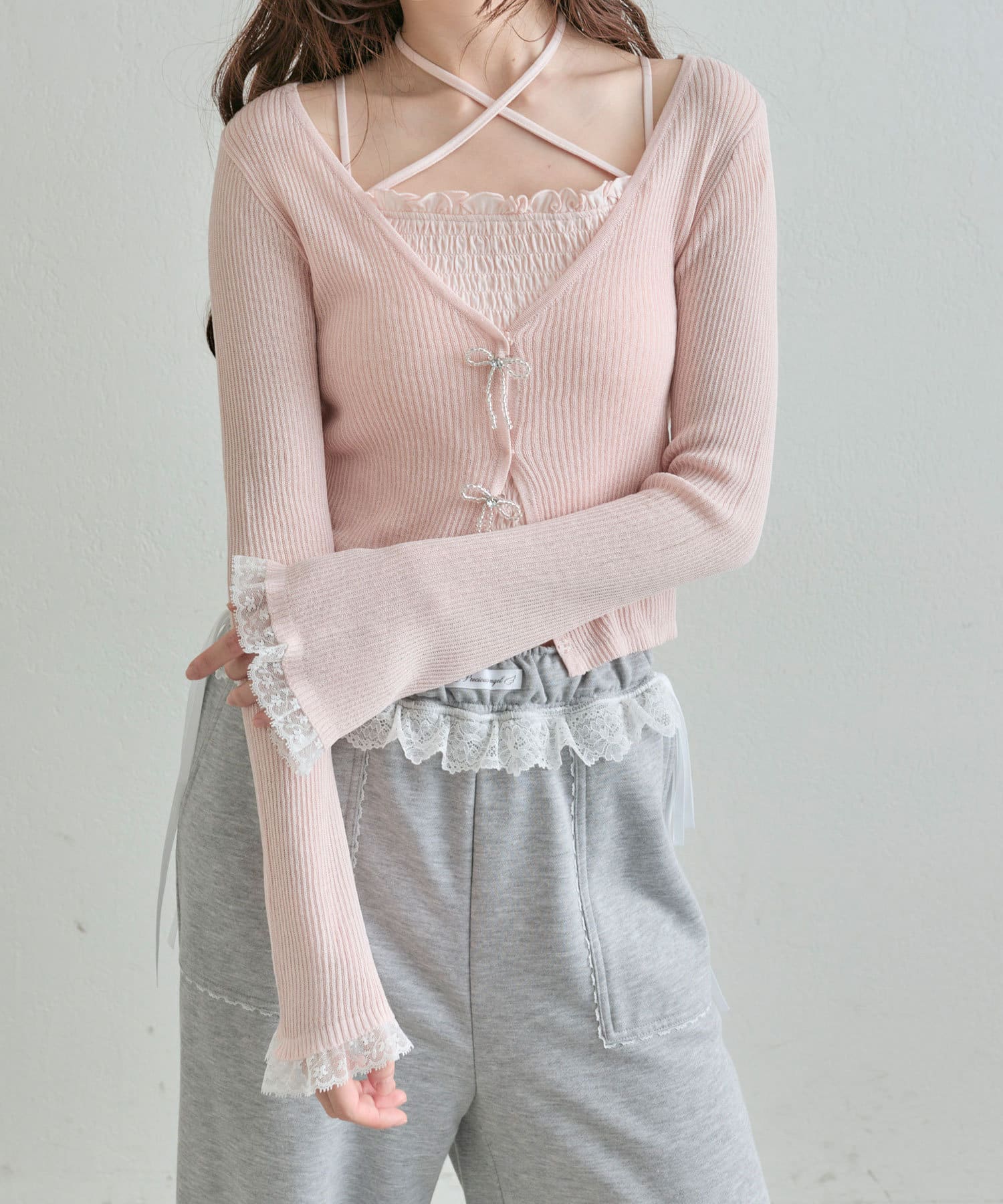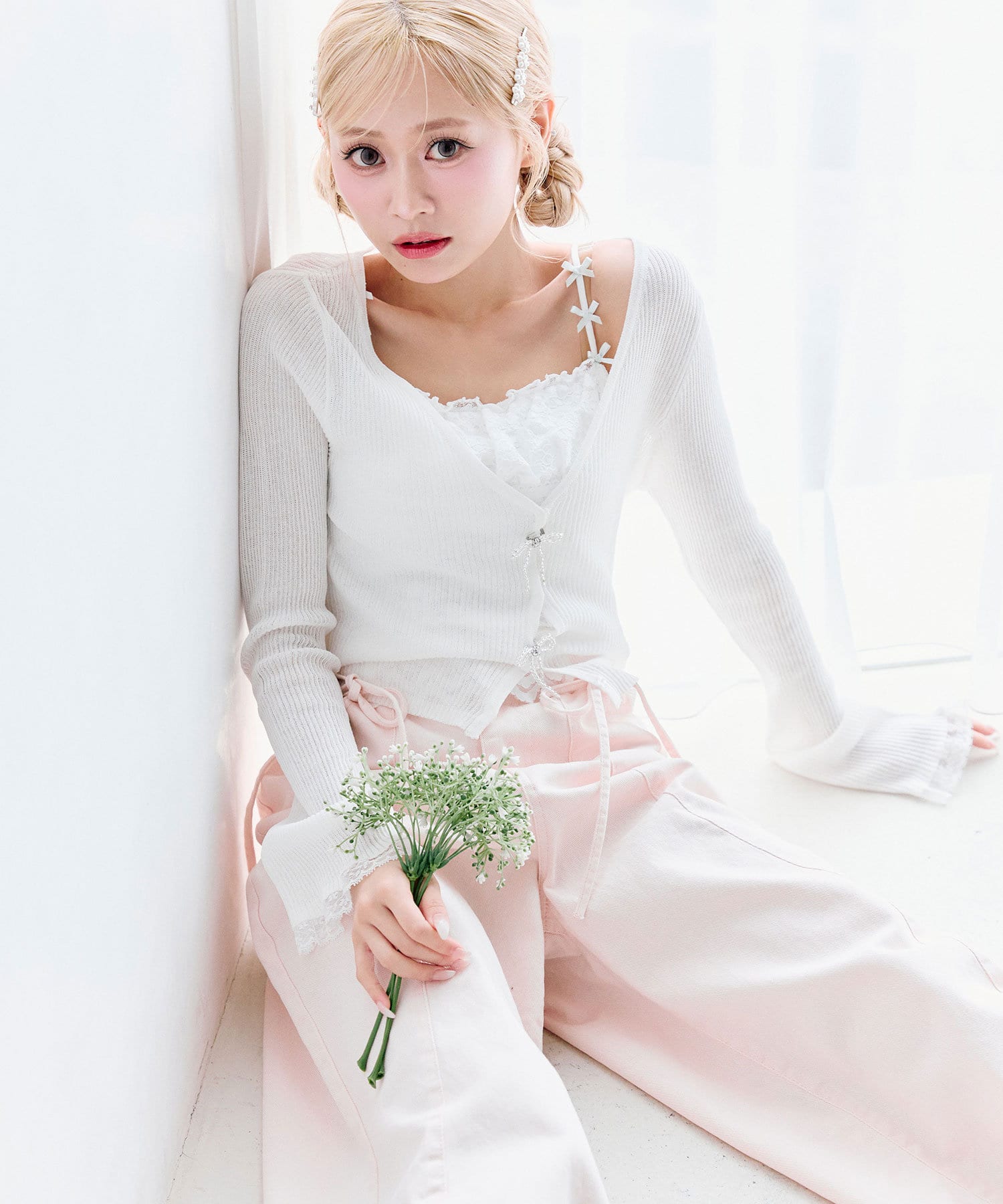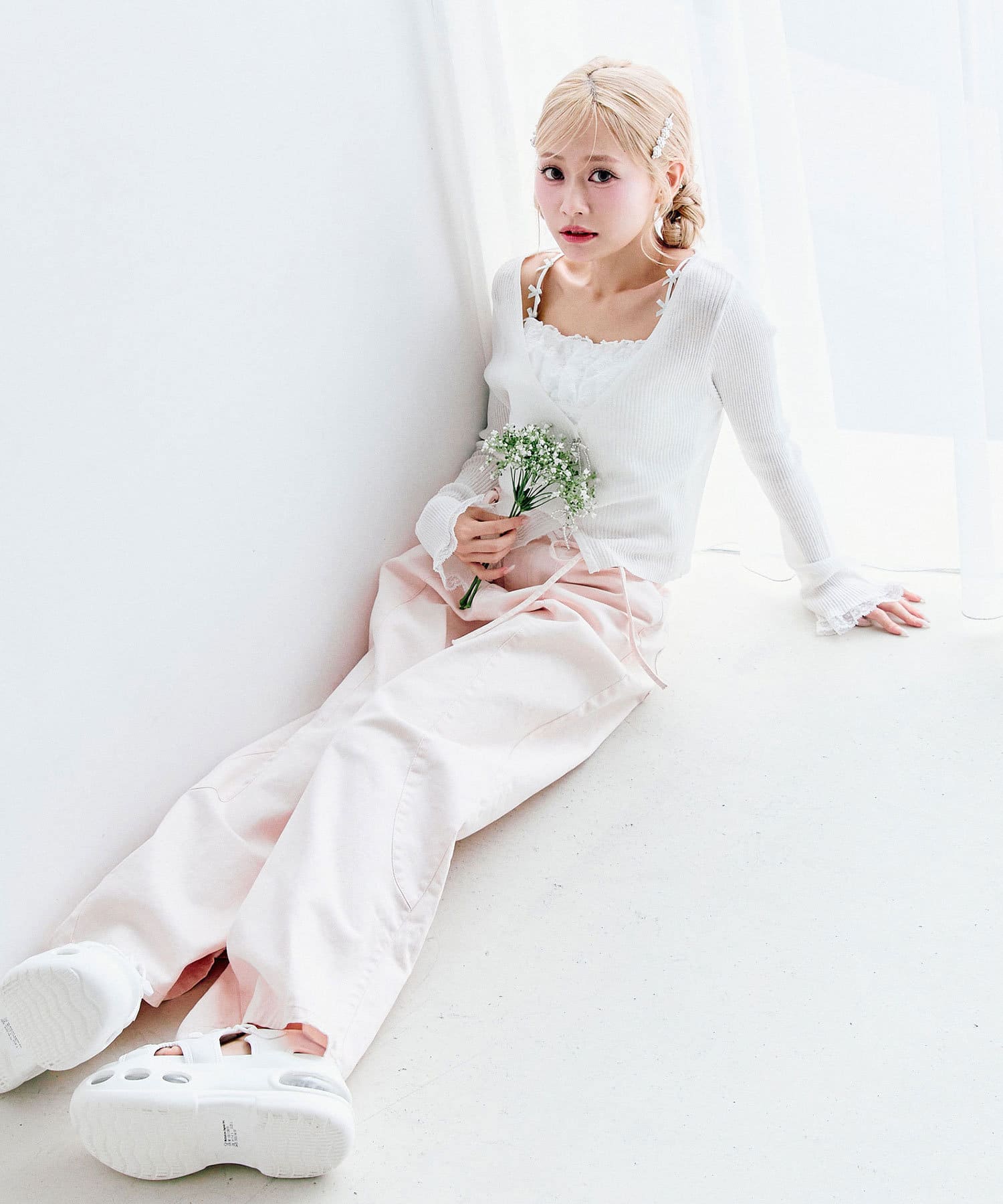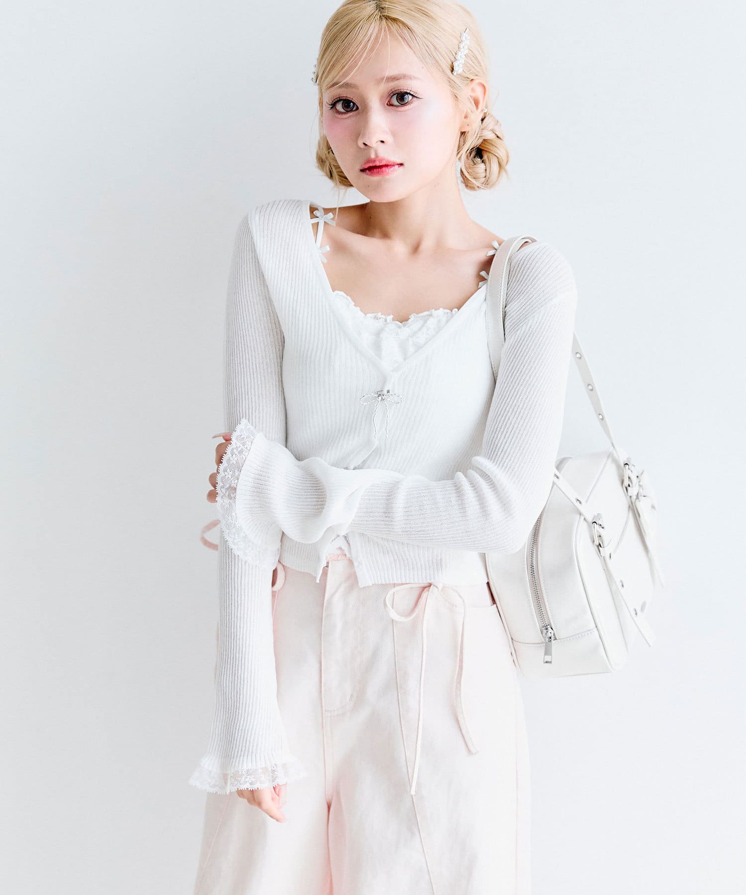 ・袖口にあしらわれた上品なレースが、可愛らしさと大人っぽさを両立します。