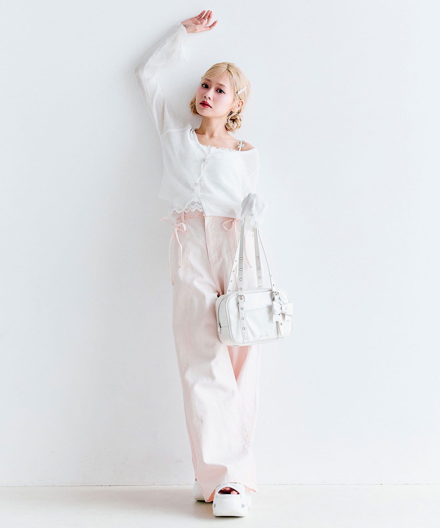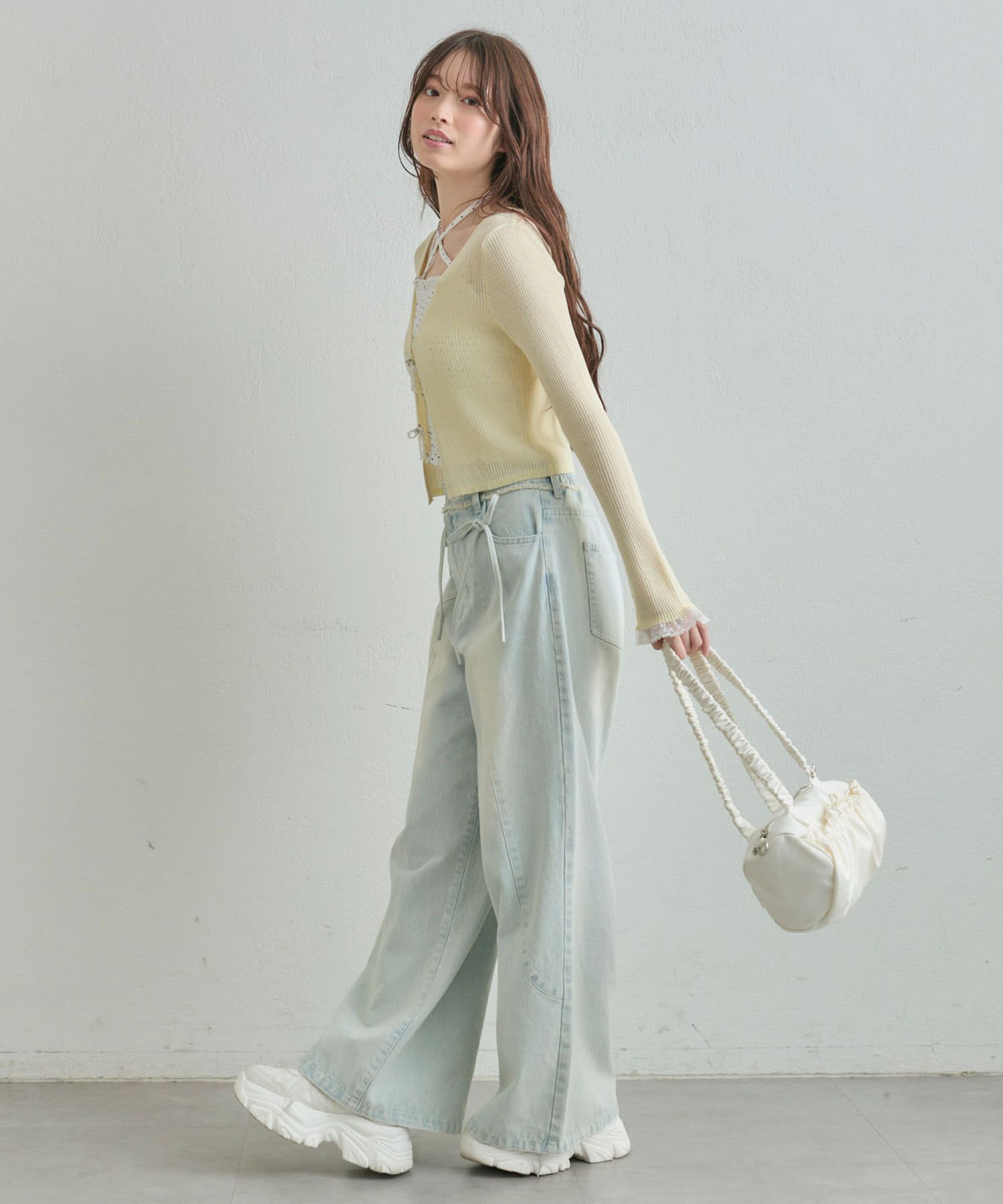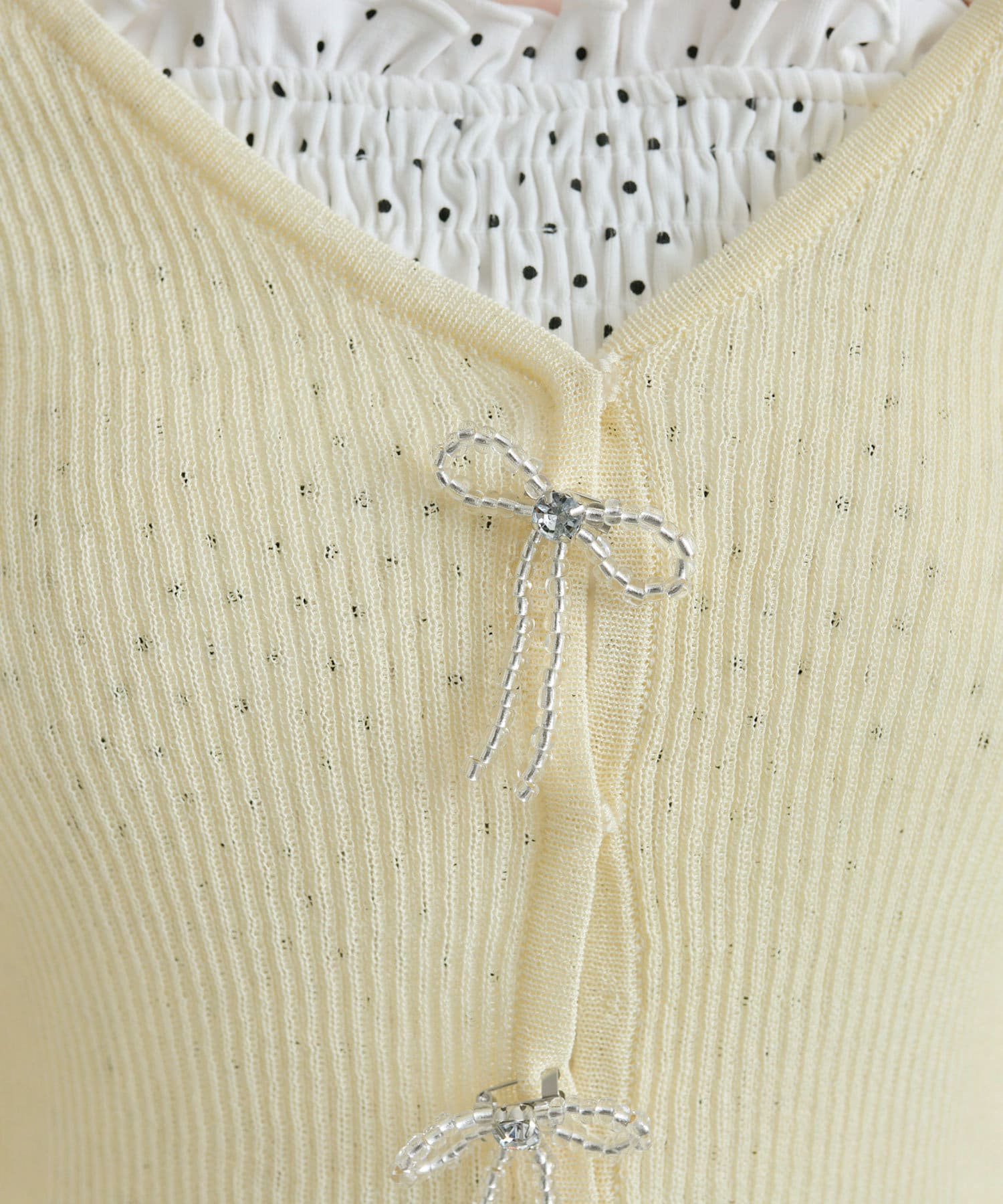 ・キラキラのビーズでできたリボンがポイントで、さりげない輝きが、コーデに上品さをプラスしてくれます。