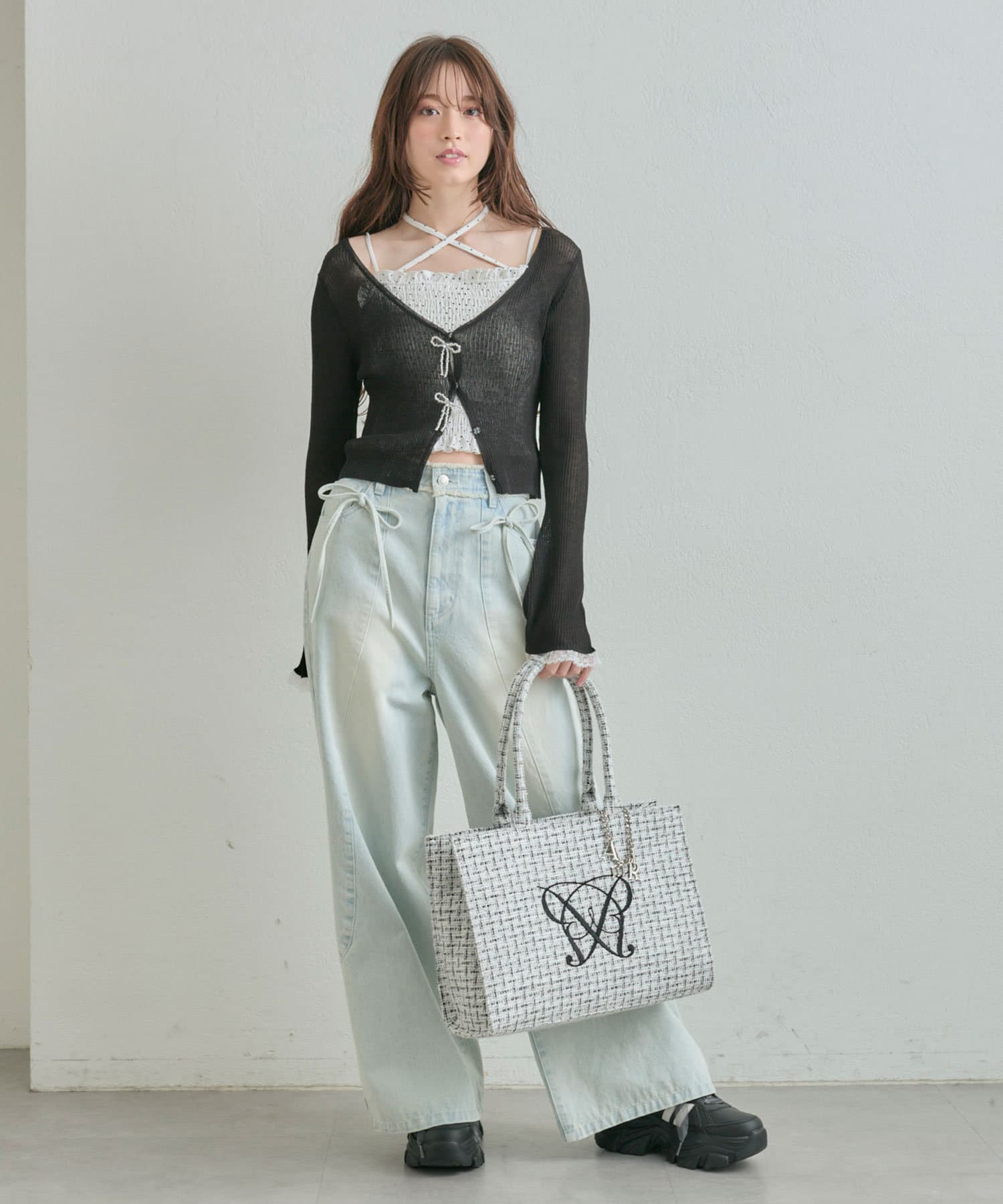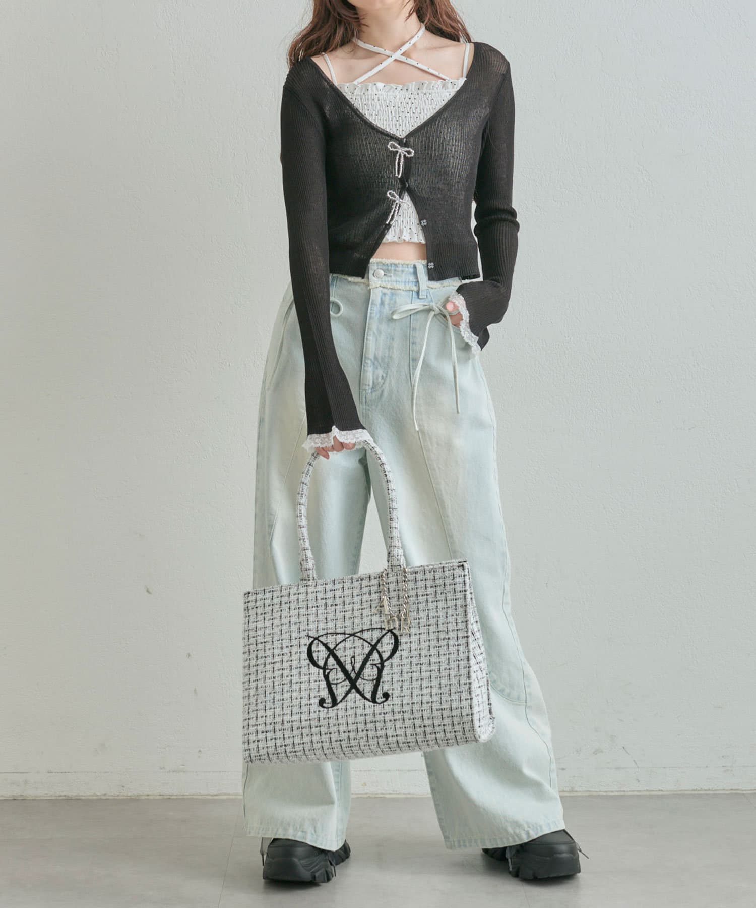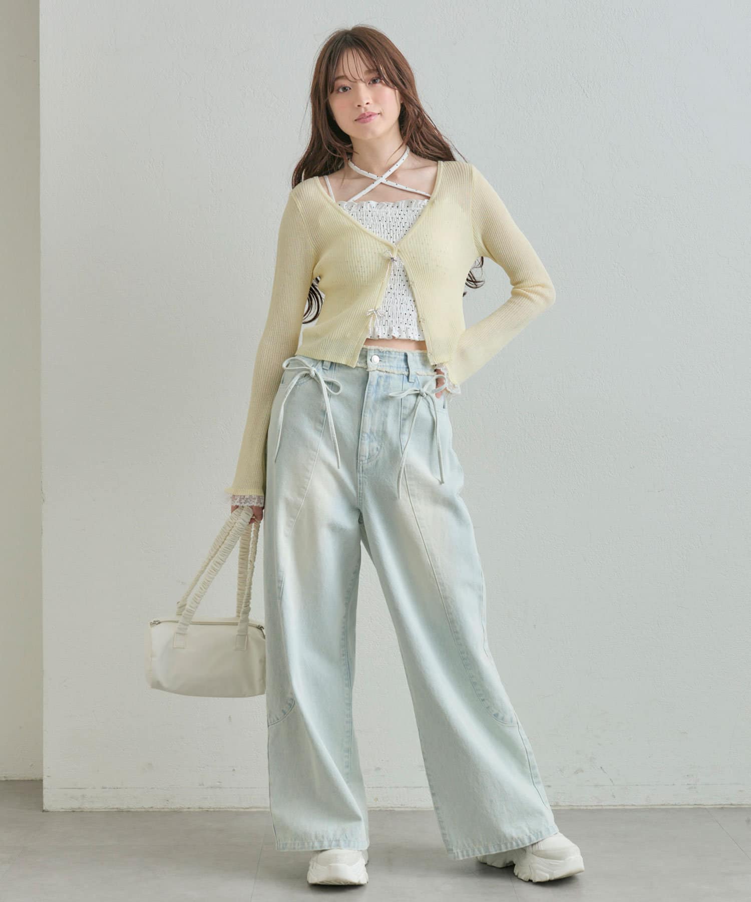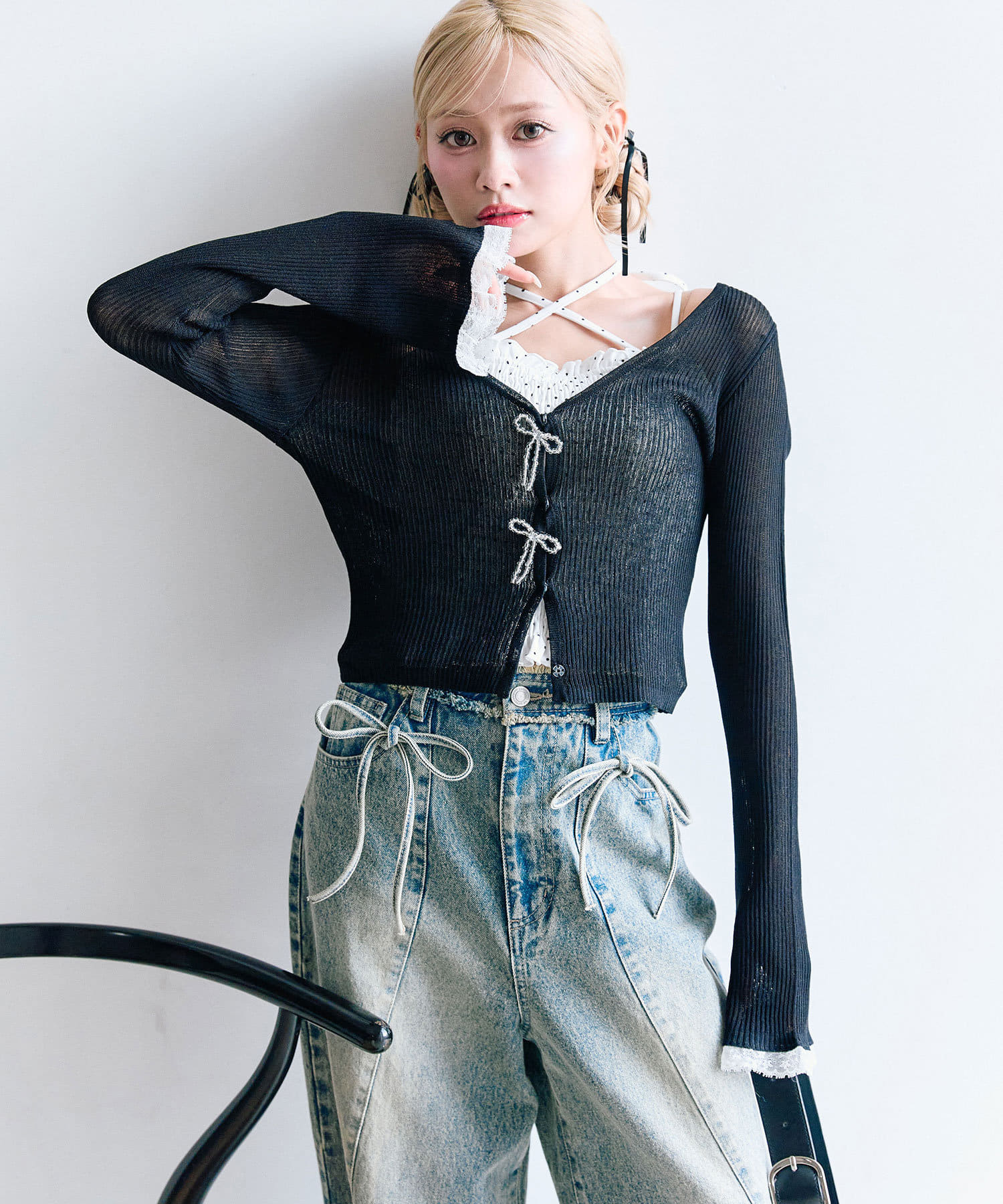 ・キラキラのビーズでできたリボンがポイントで、さりげない輝きが、コーデに上品さをプラスしてくれます。