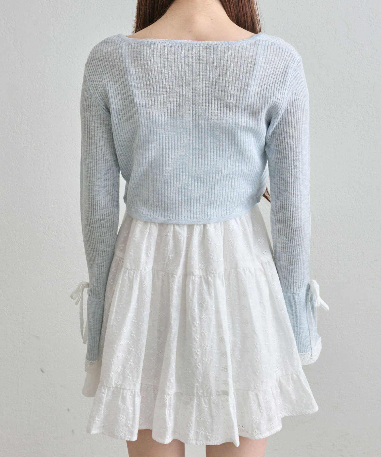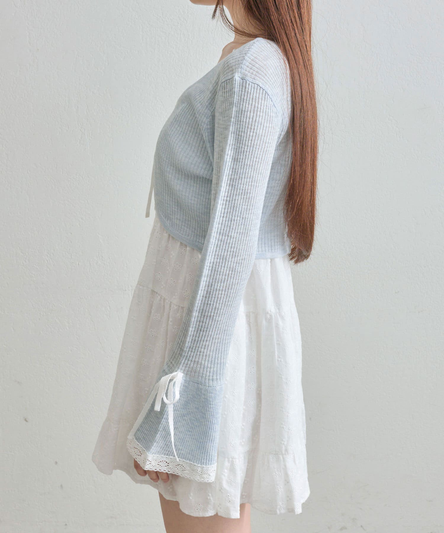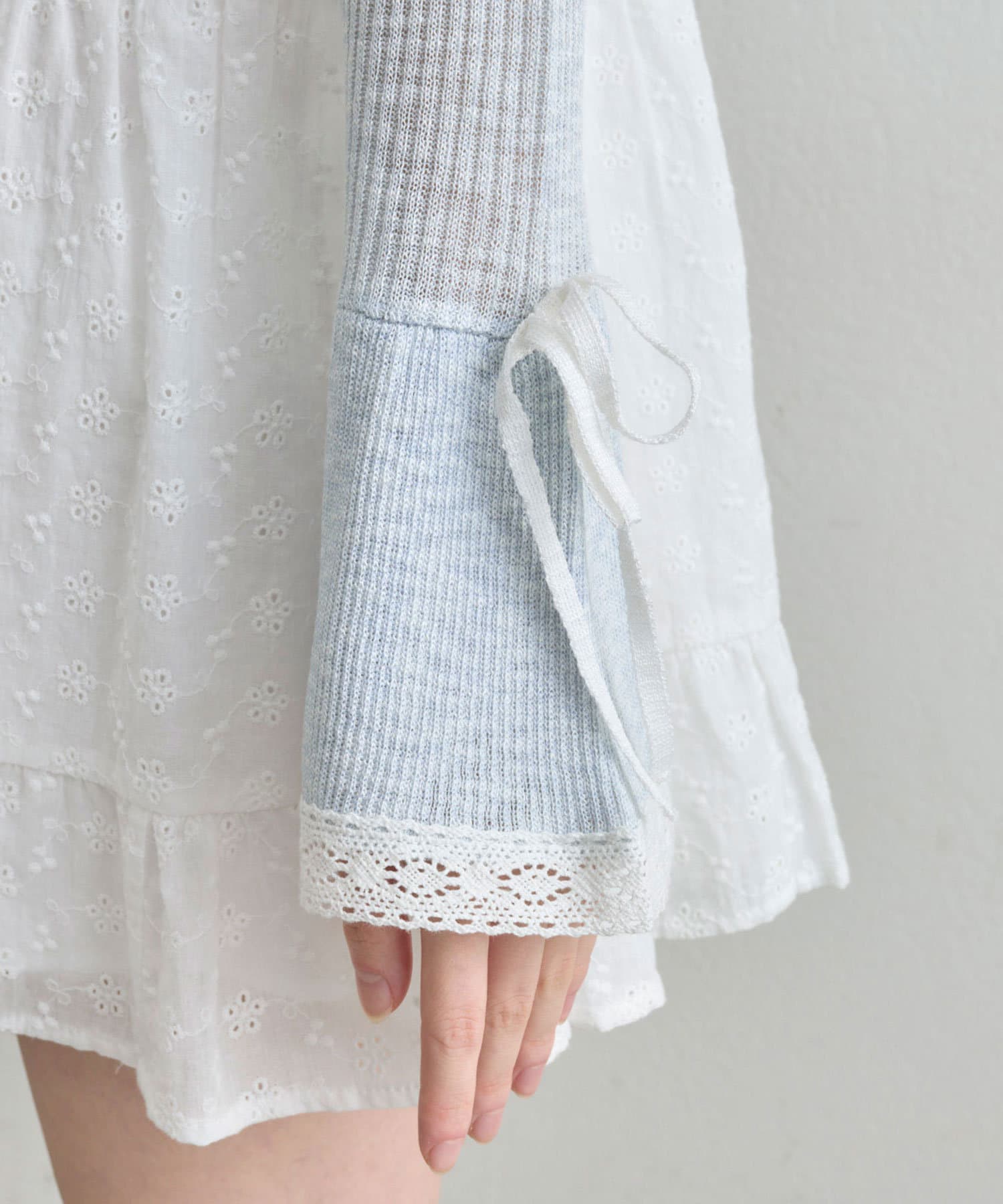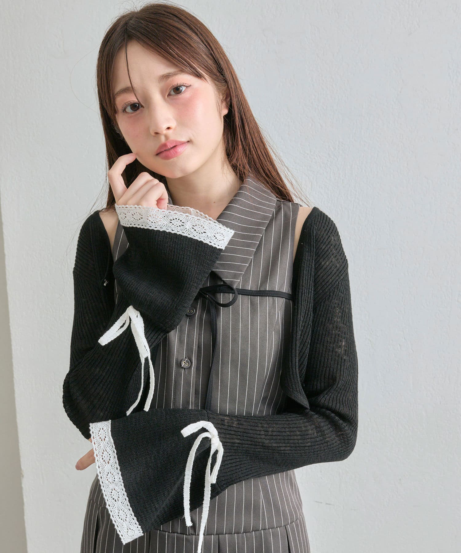 ・袖にさりげなくレースが付いていて、甘さをプラスするデザインです。