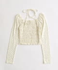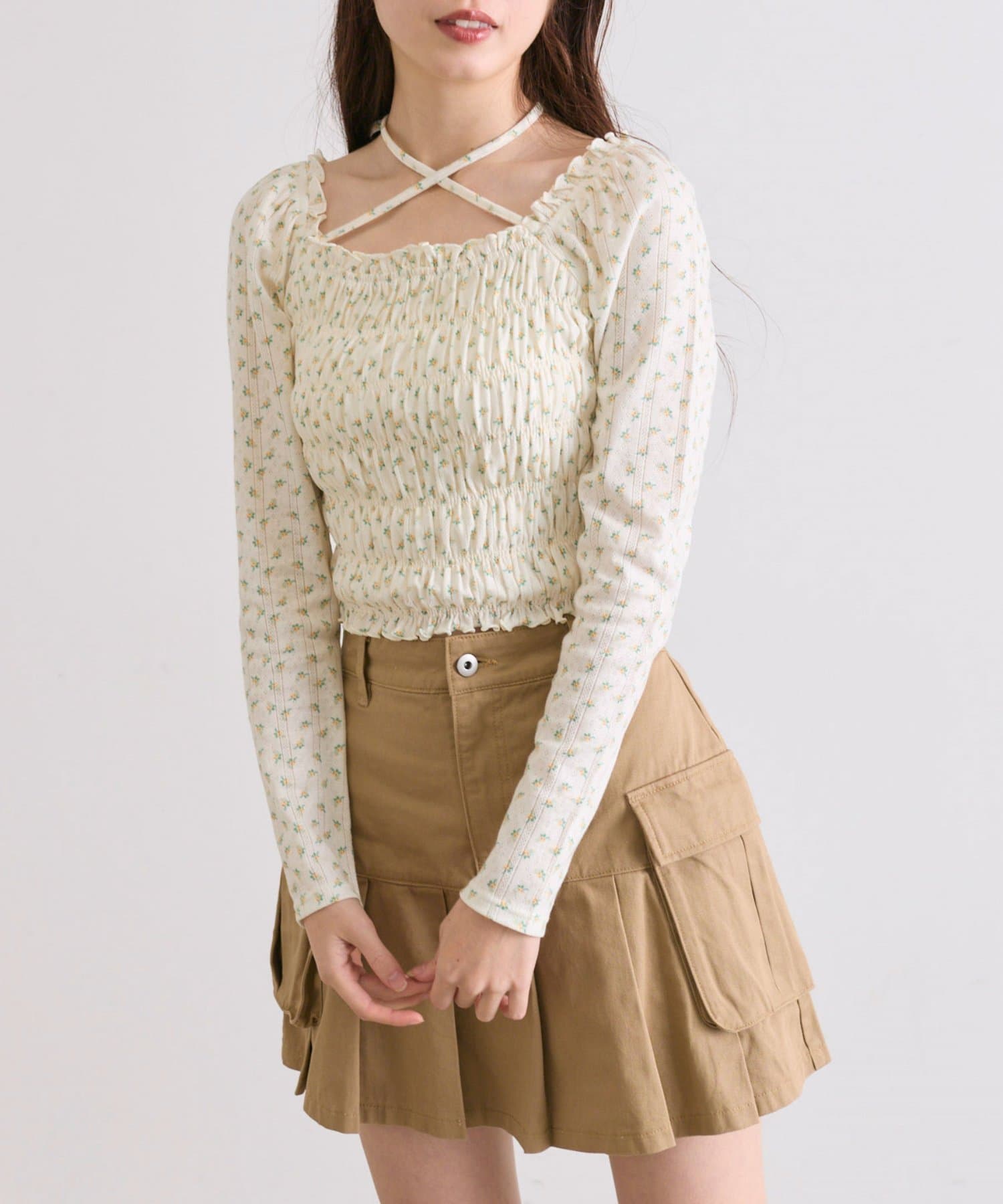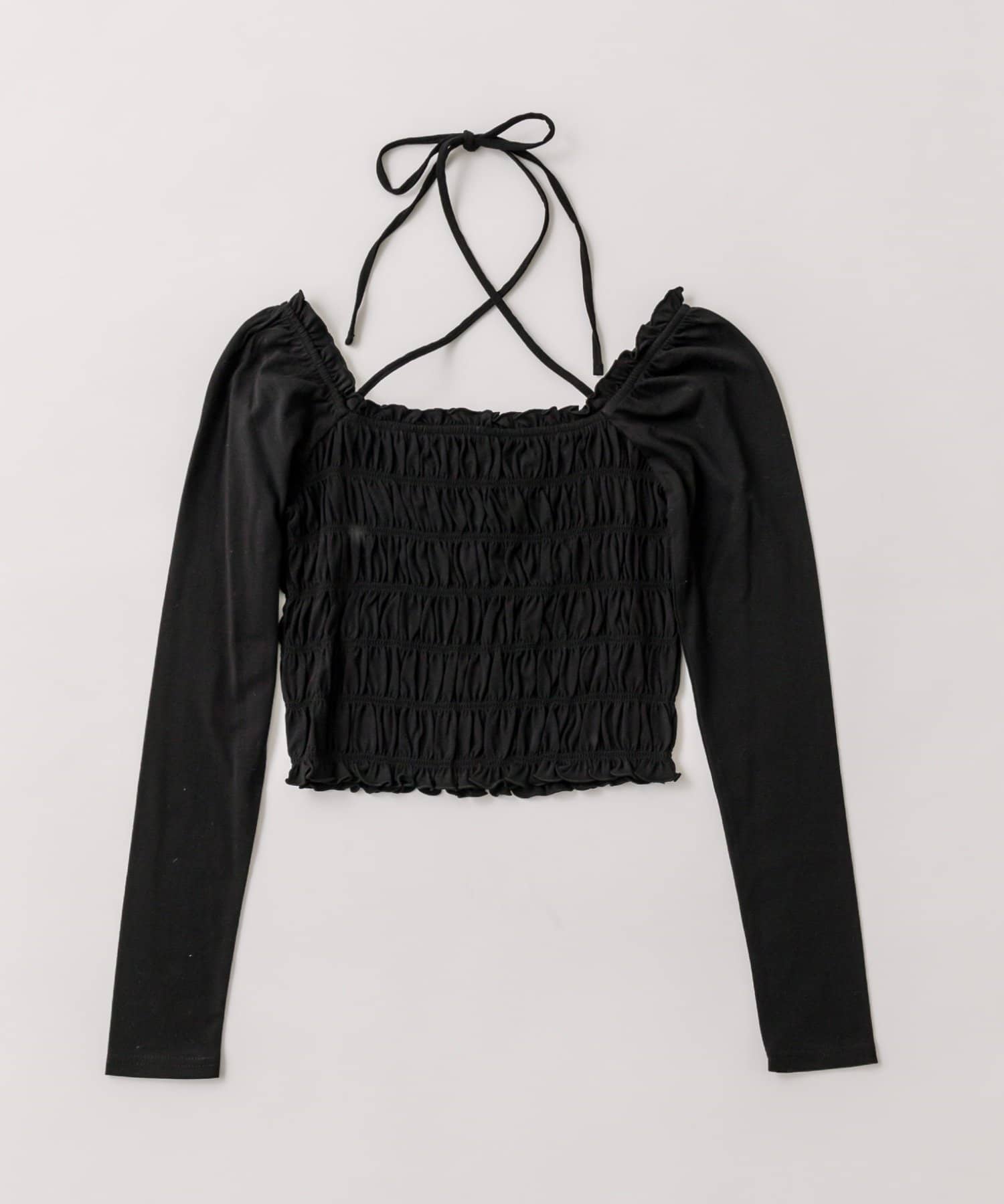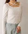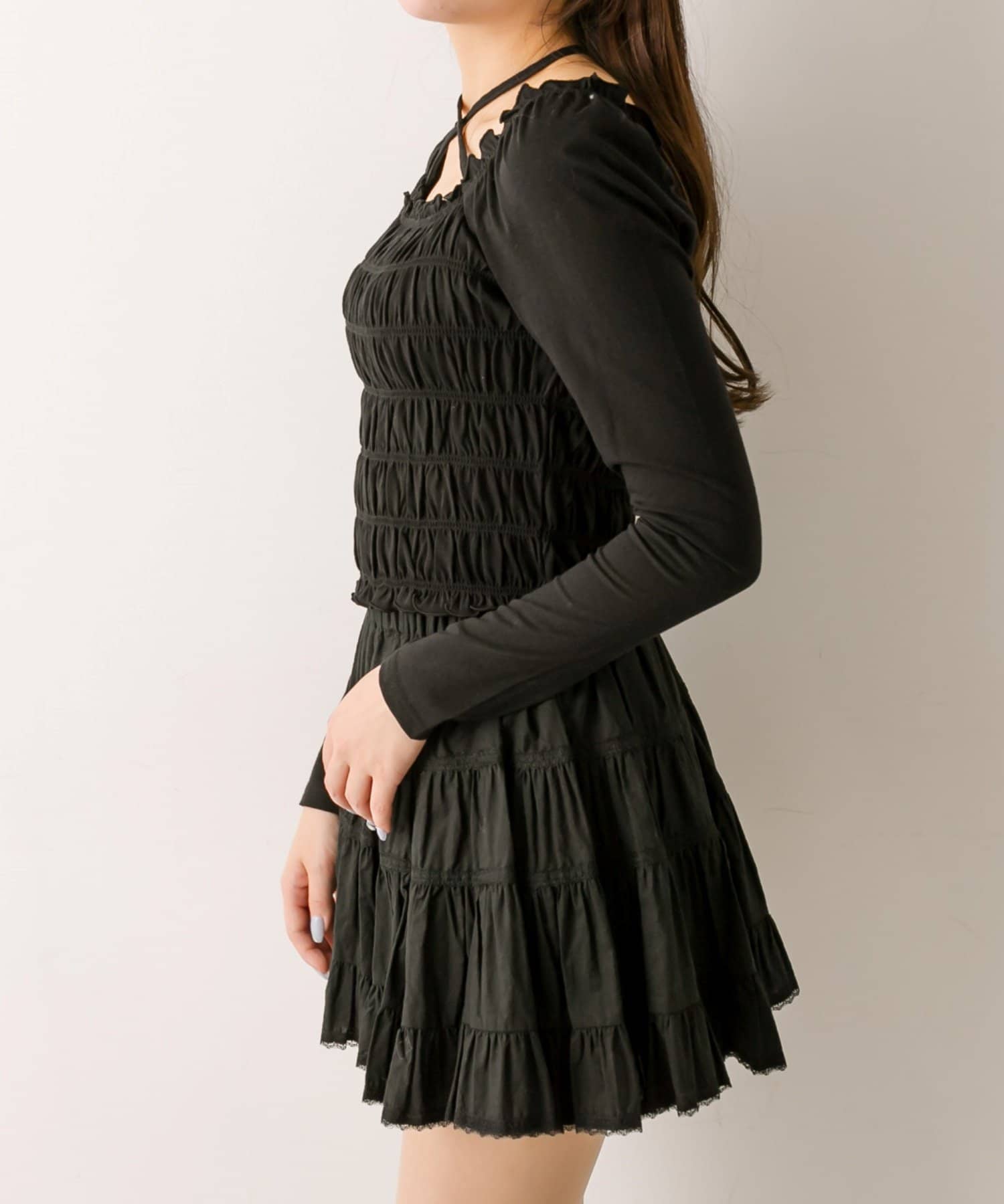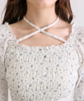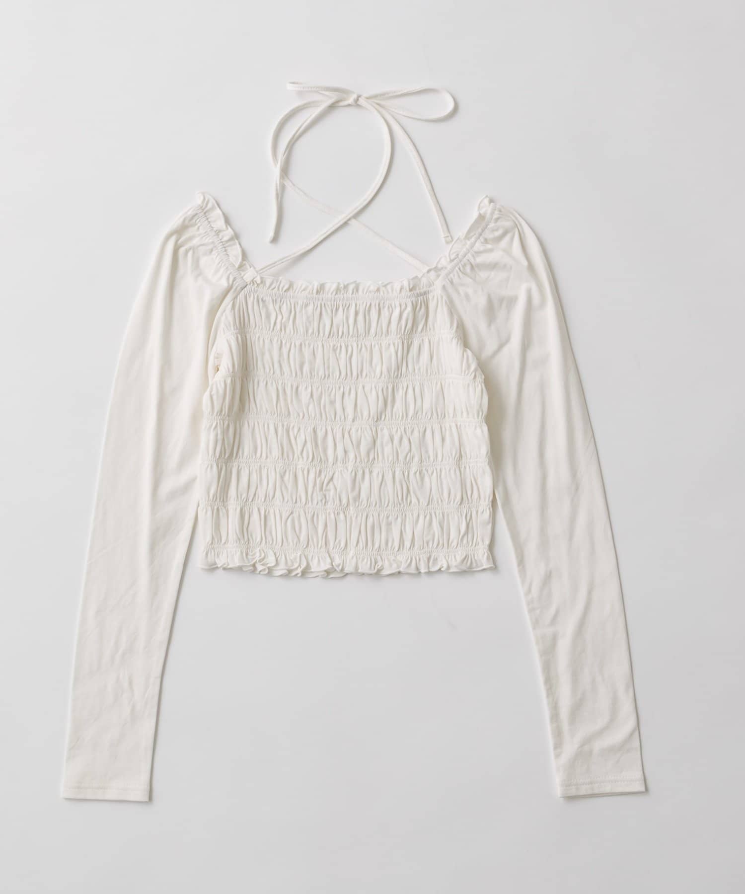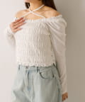 ・スクエアネックにホルターネックのディテールが女性らしい印象を演出します。