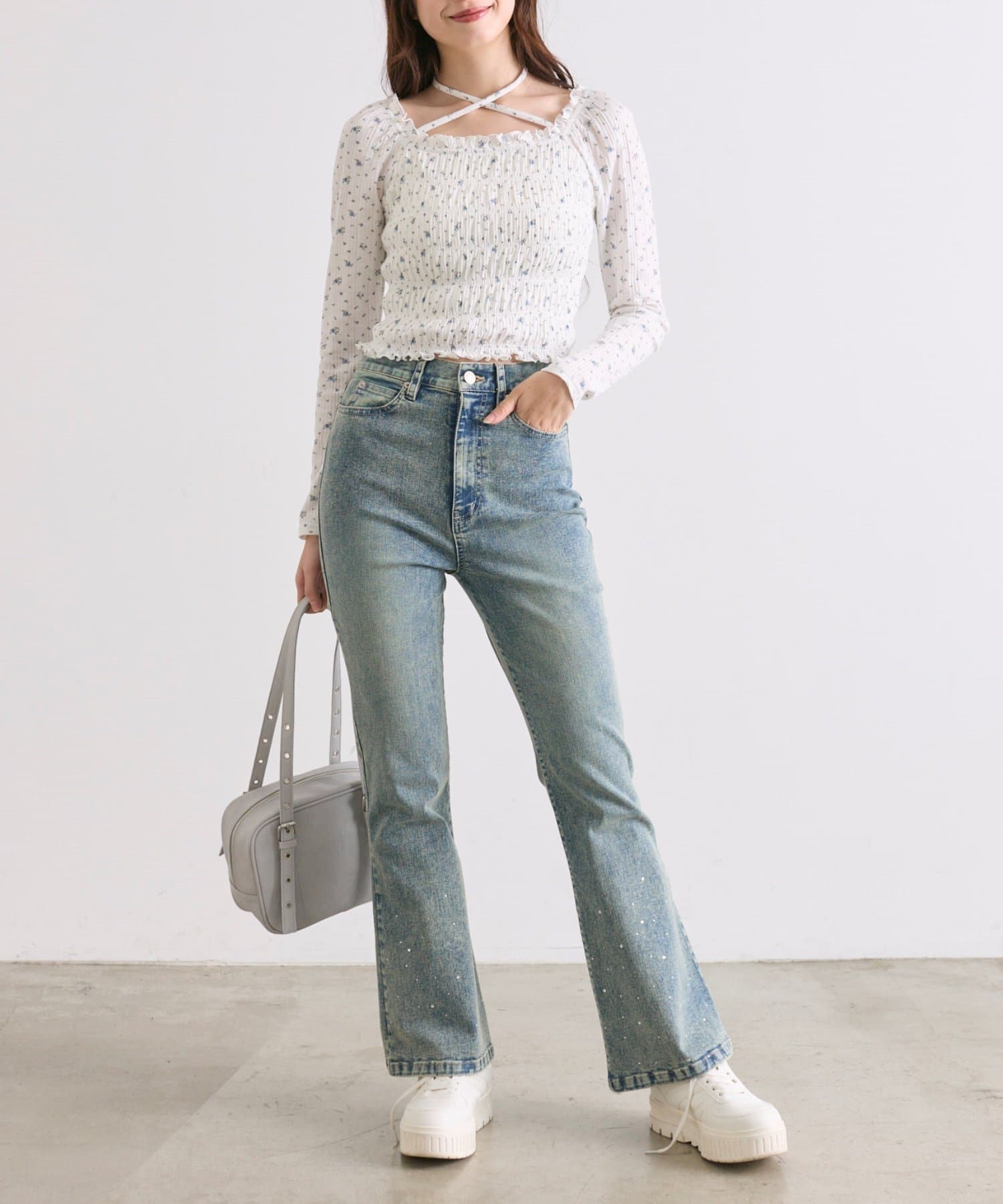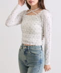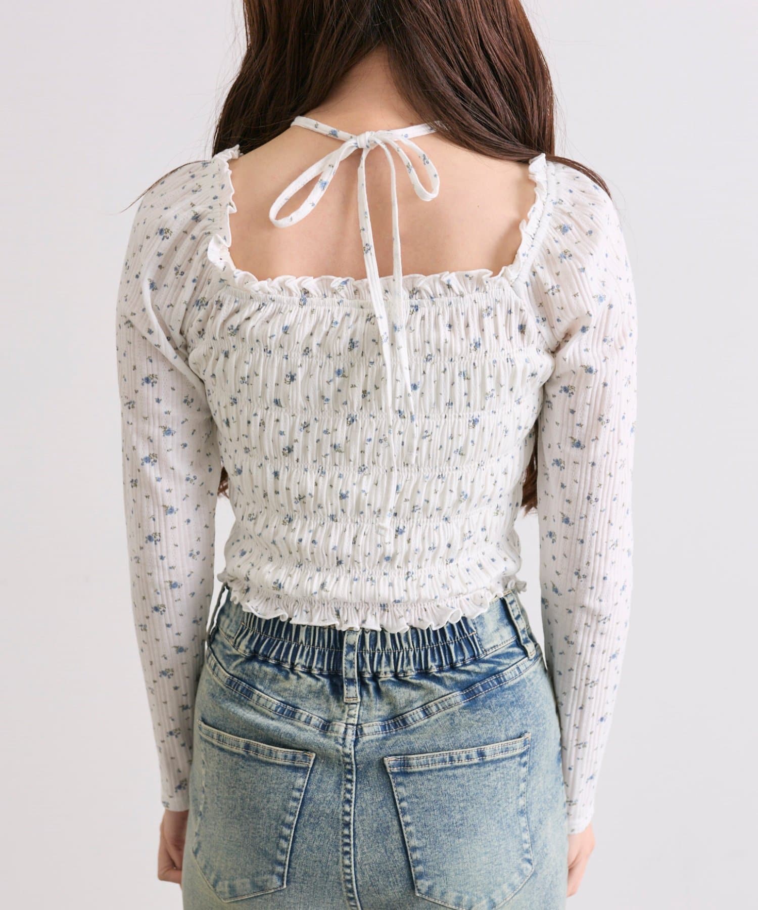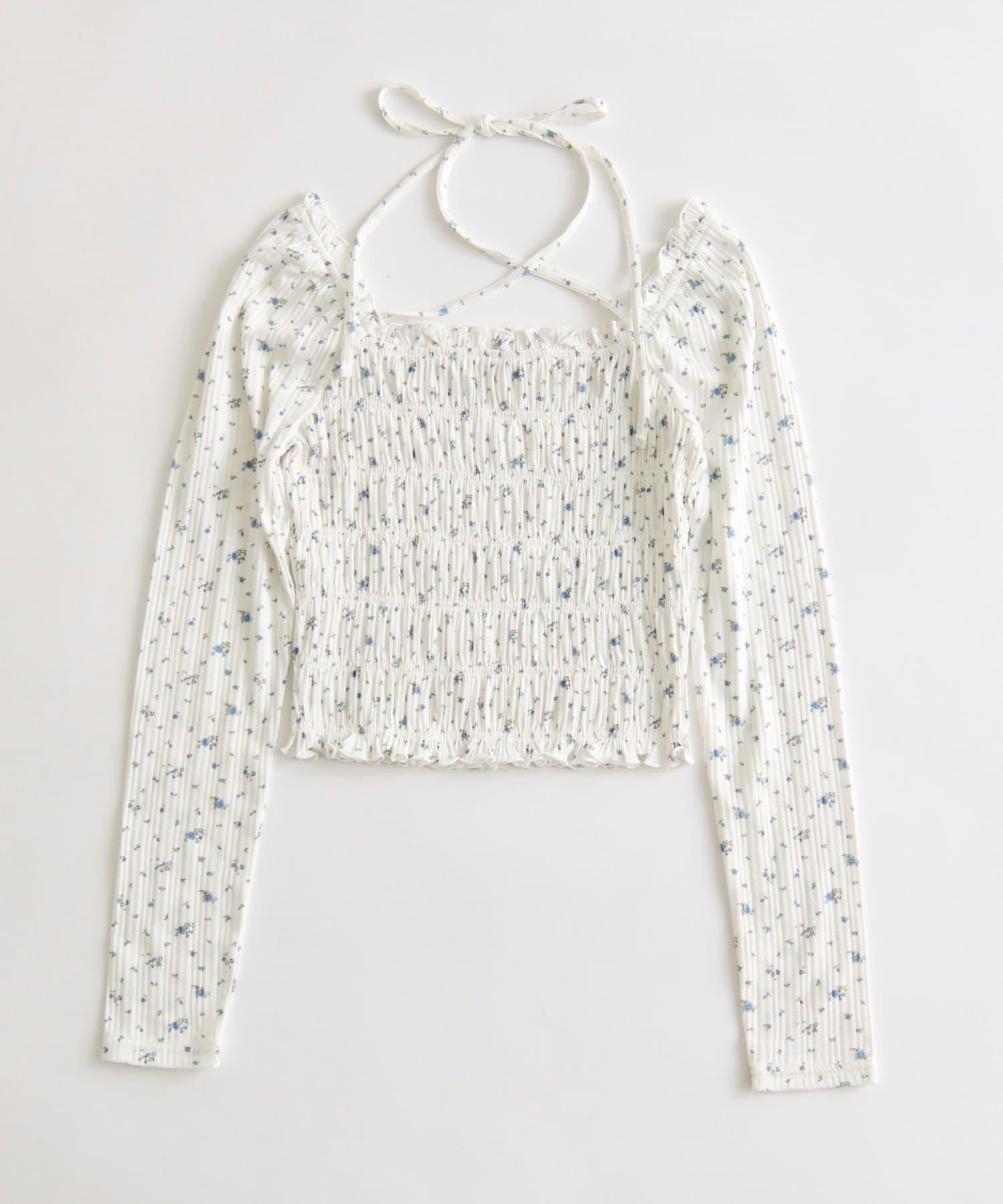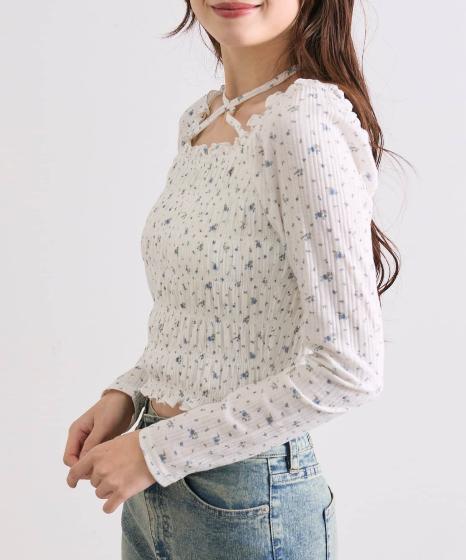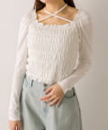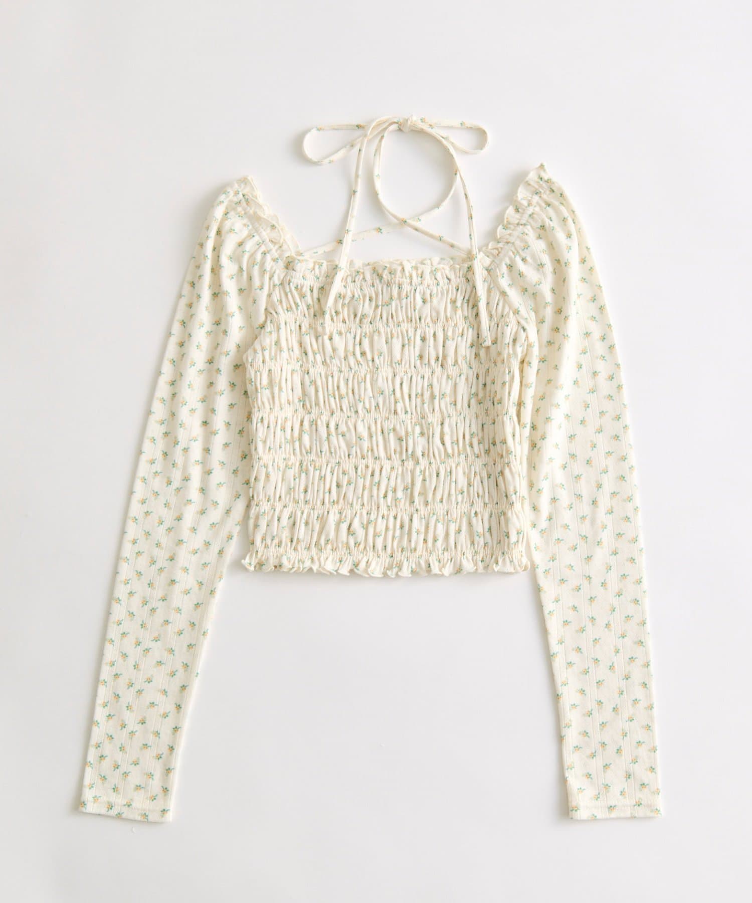 ・スクエアネックにホルターネックのディテールが女性らしい印象を演出します。