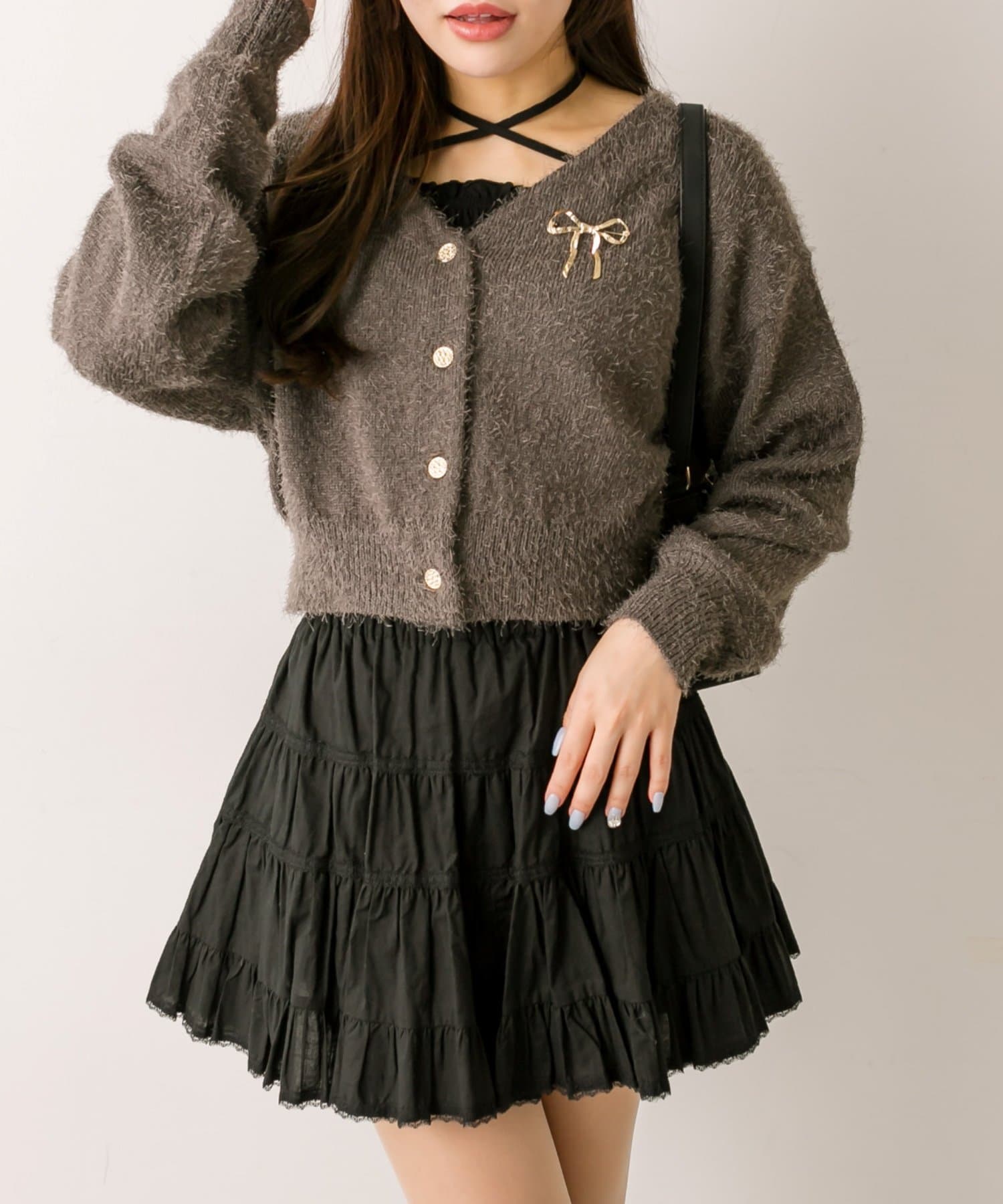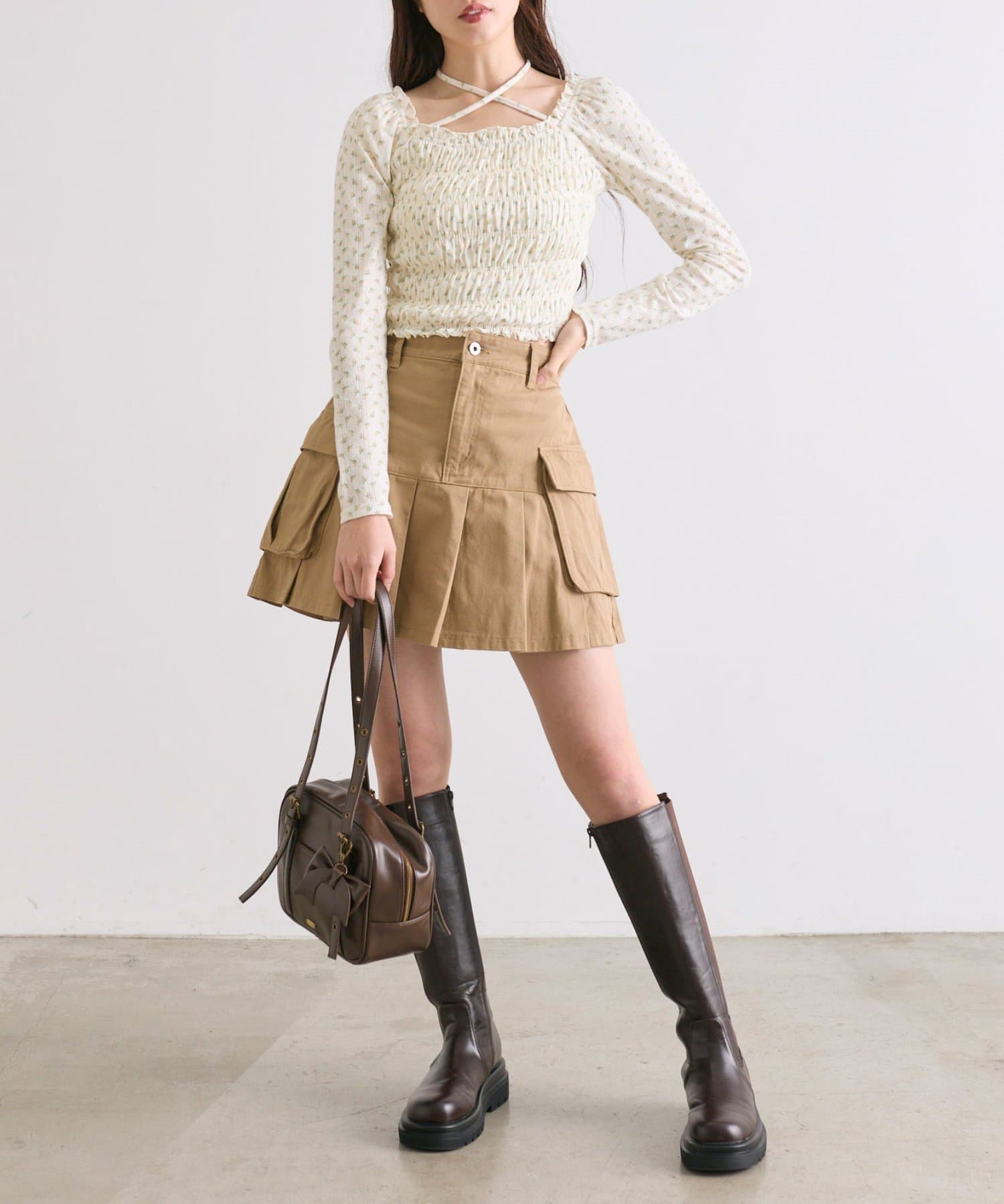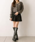 ・ミニスカートを合わせるとガーリーな雰囲気にまとまります。