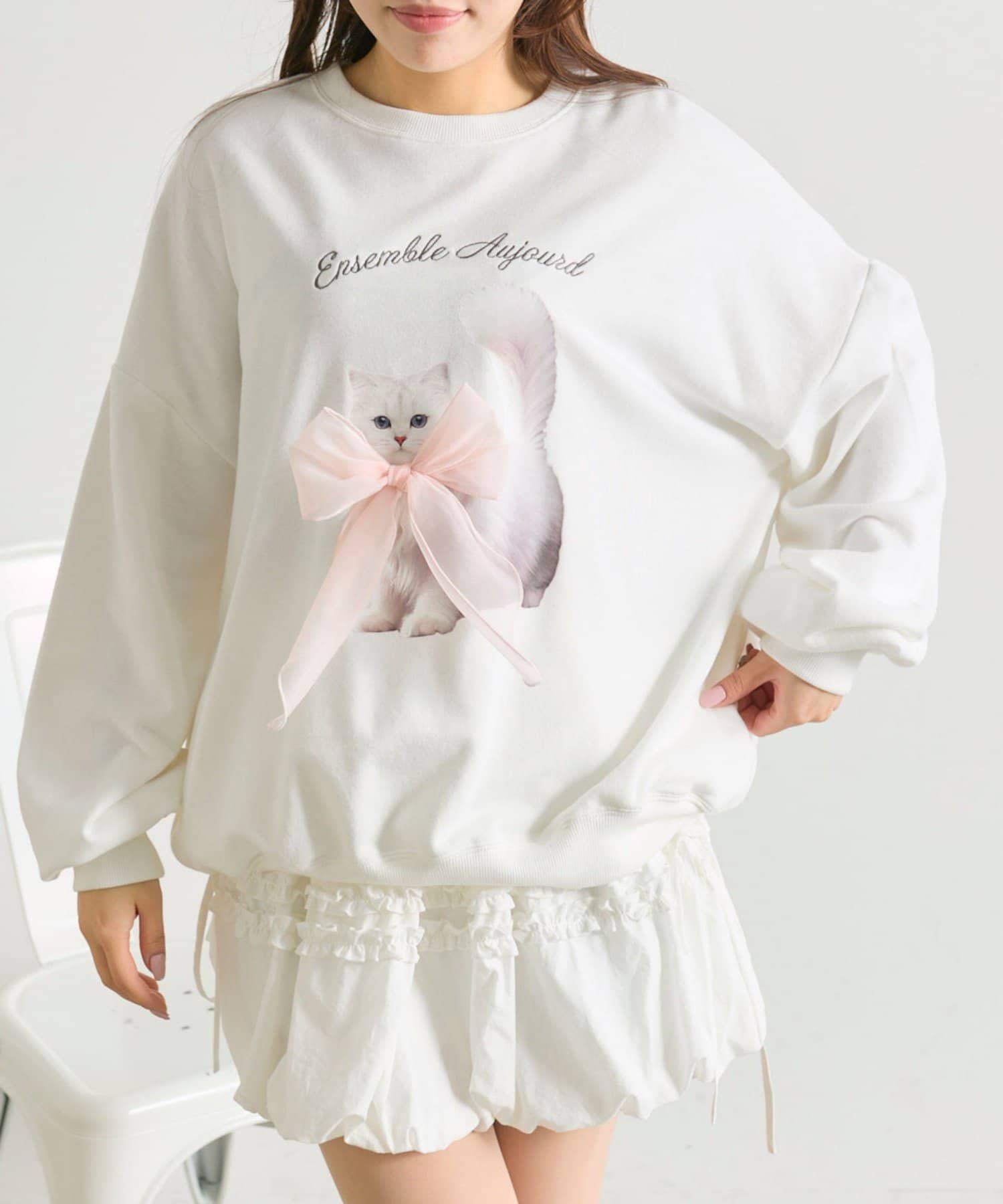 ・カラーごとに異なるデザインを施したガーリーデザインのスウェット。