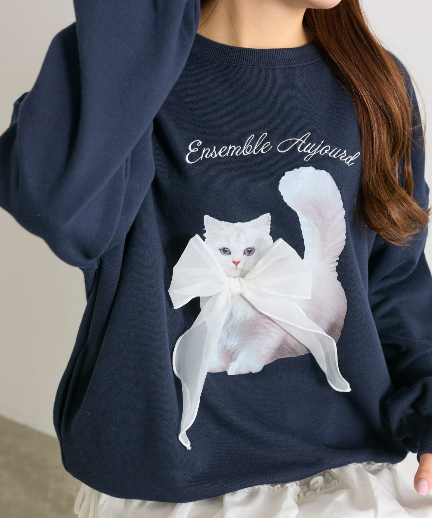 ・オフ/ネイビーはネコプリントに大きなリボン、ピンク/トップグレーはレオパードやレースのリボンのデザインです。
