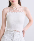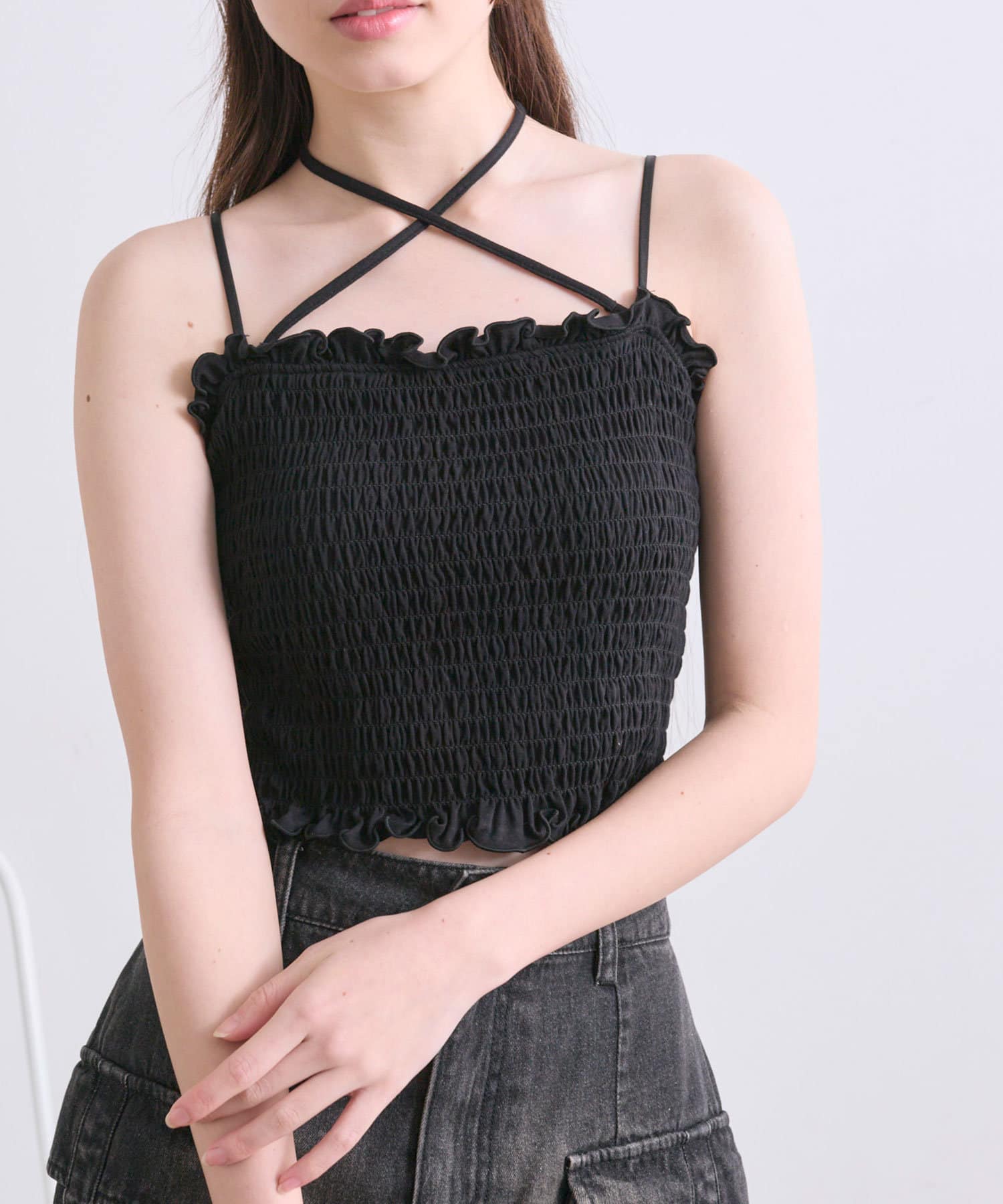 ・シャーリングデザインで見えてもかわいいキャミソール。