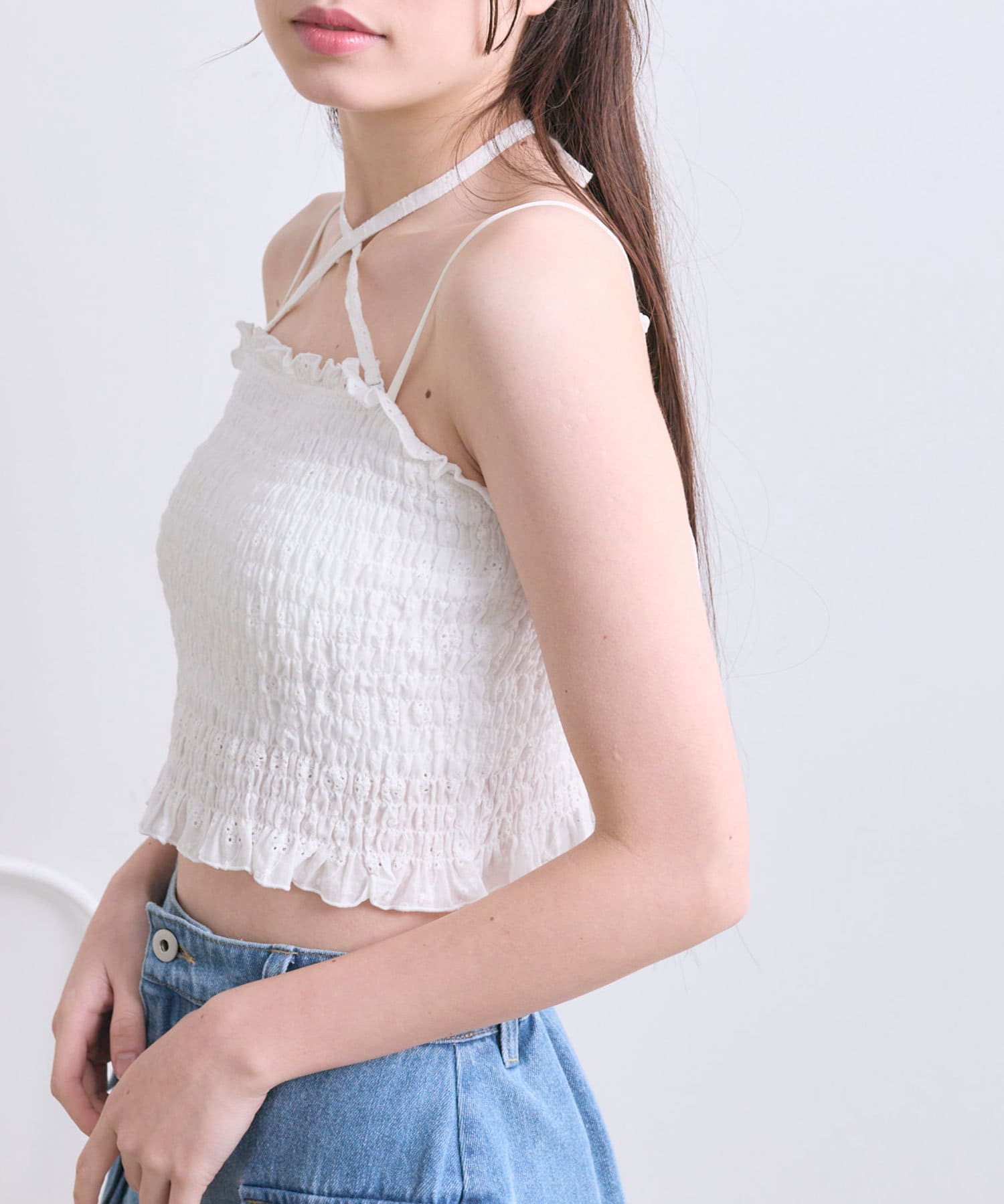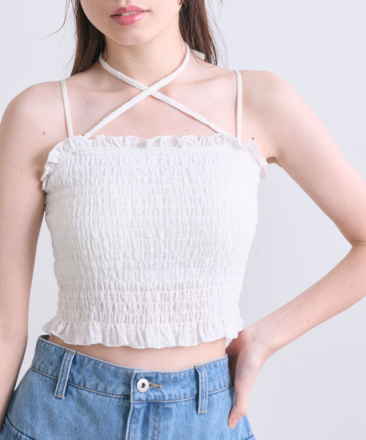 ホルターネックで顔周り華やかになるキャミソール