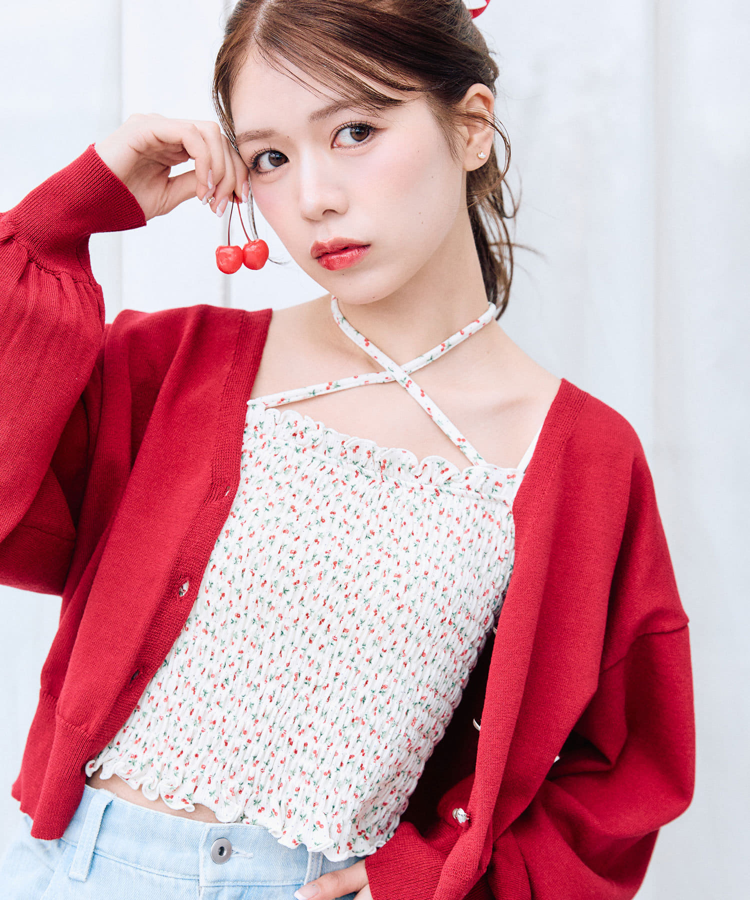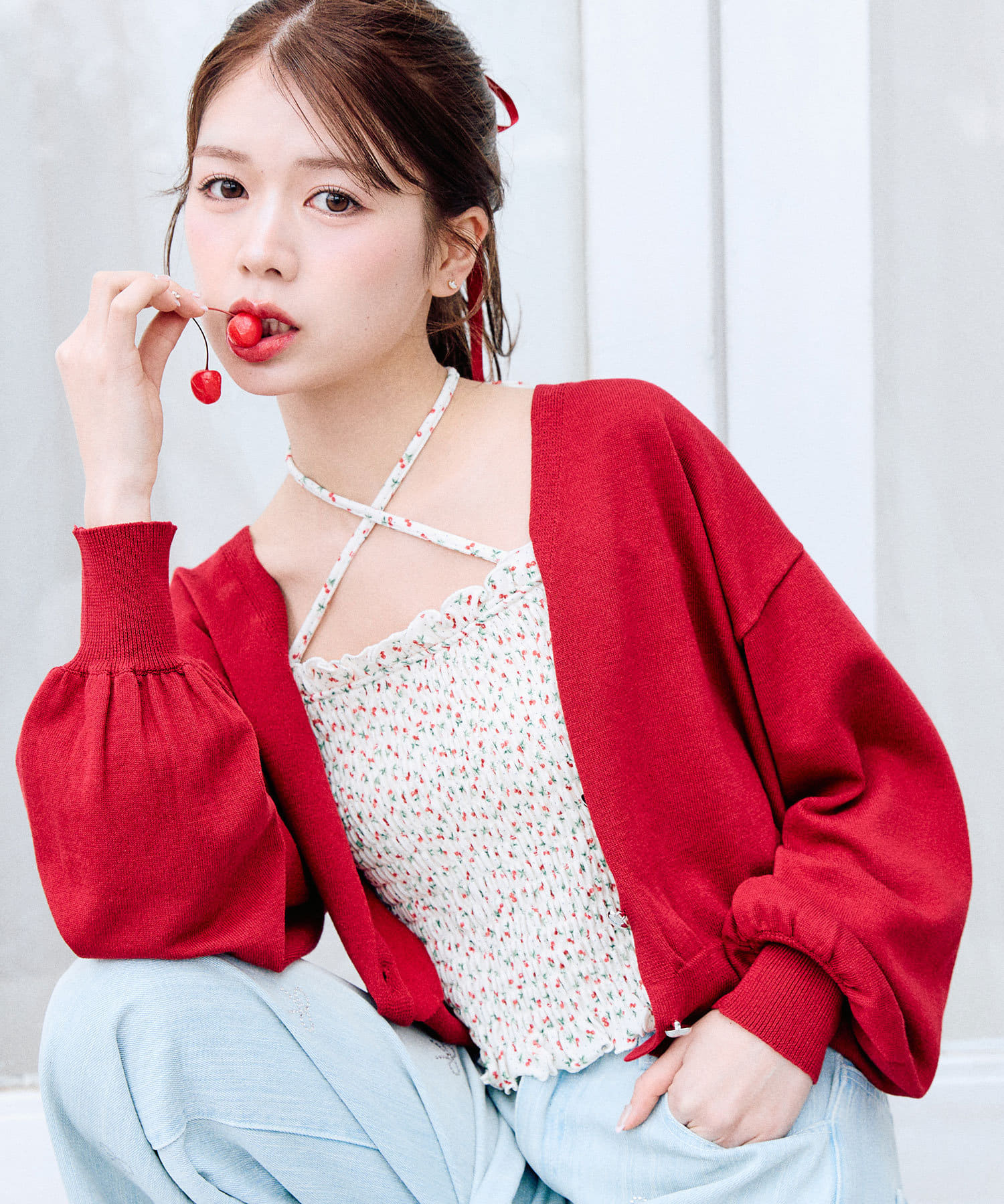・オフは花柄のコットン素材、アイボリーはさくらんぼ柄で、コーデのポイントになります。