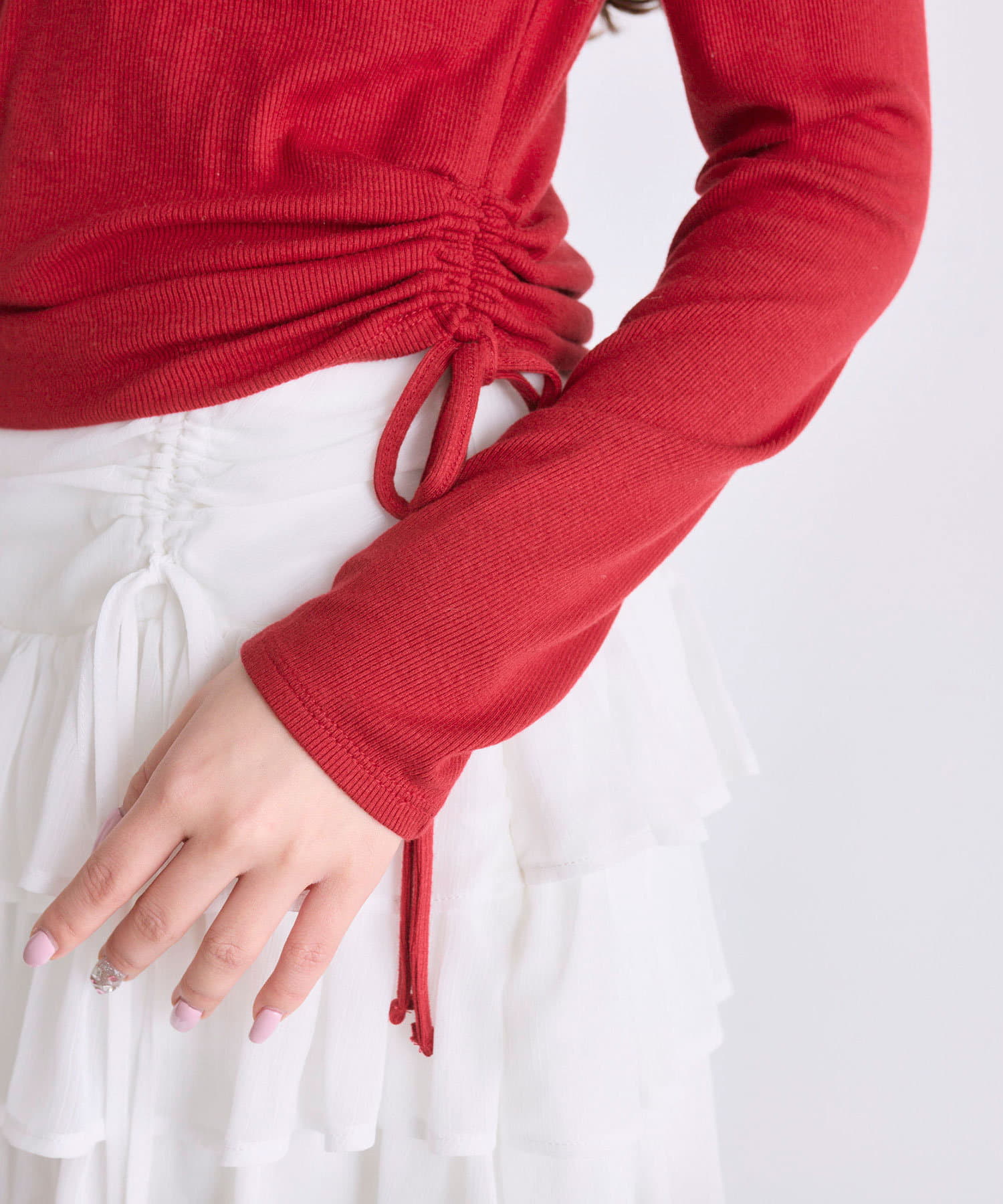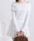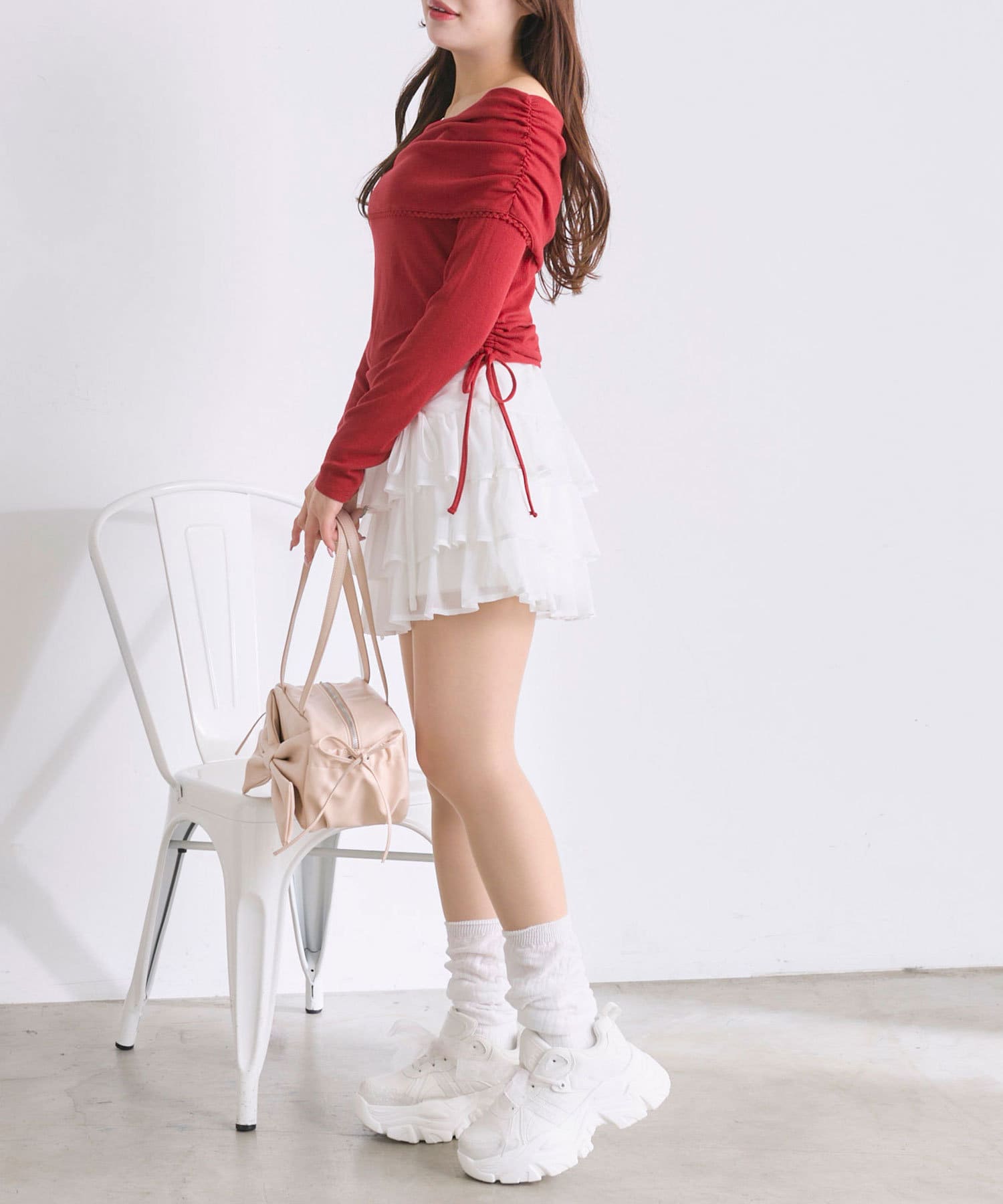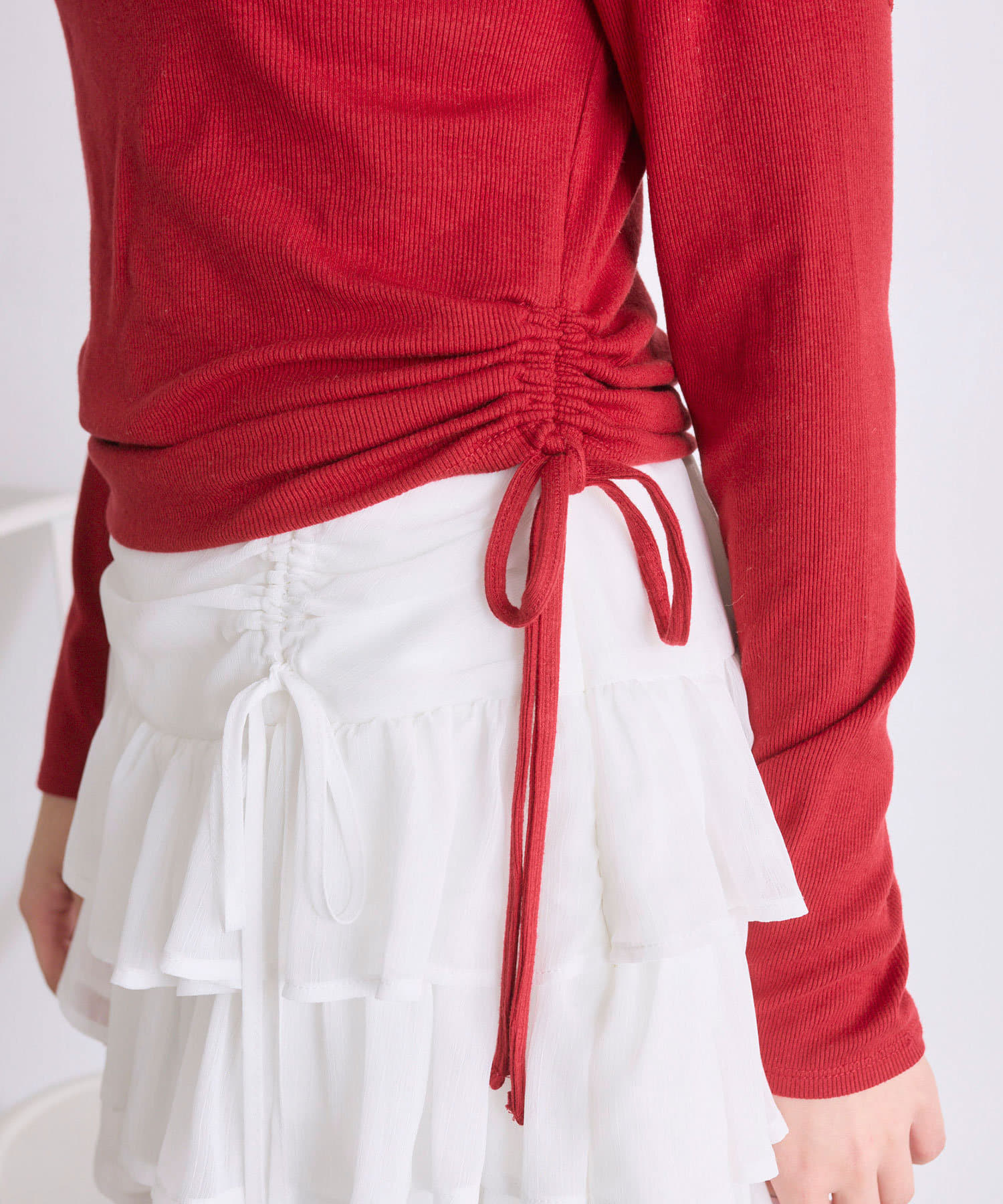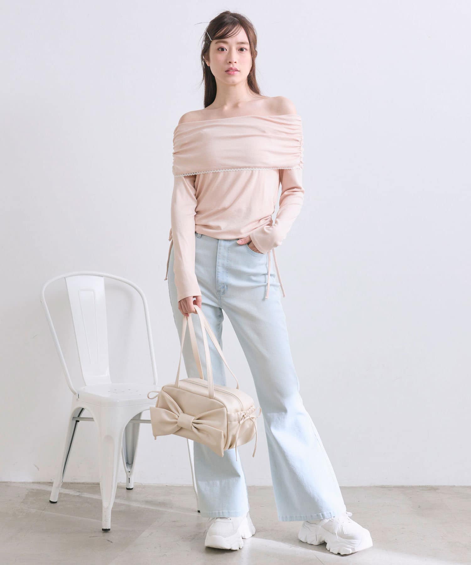・さりげないピコレースやサイドのドロストリボンがコーデに甘さをプラスします。
