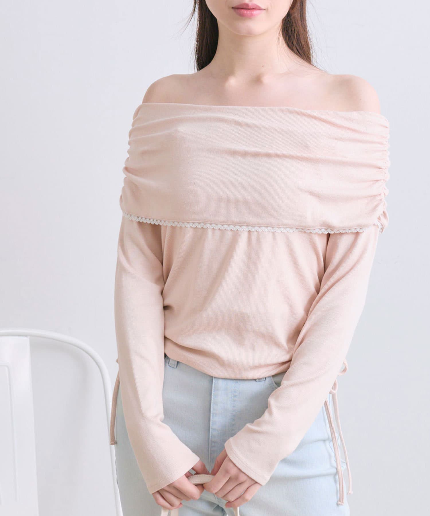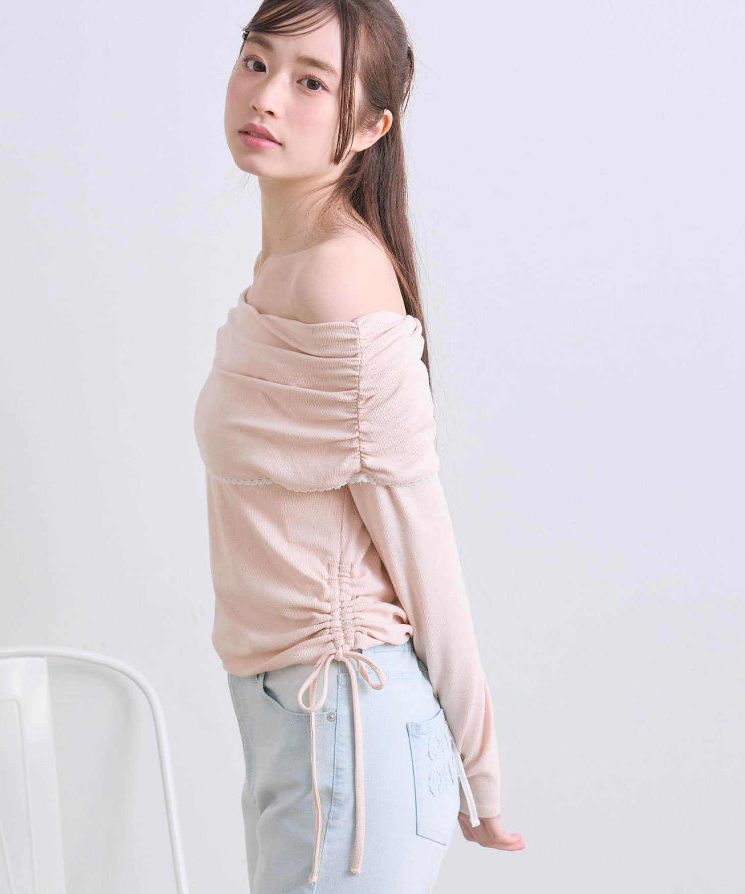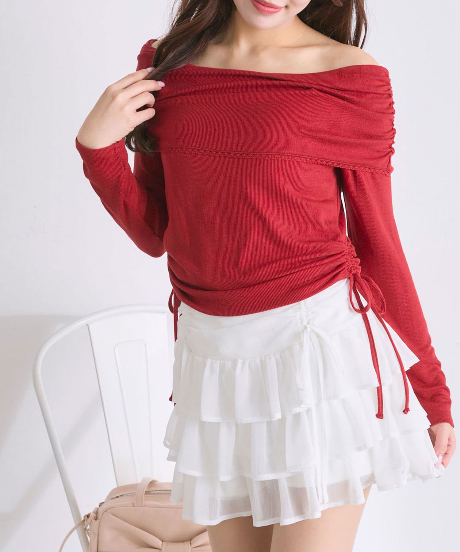 ・さりげないピコレースやサイドのドロストリボンがコーデに甘さをプラスします。