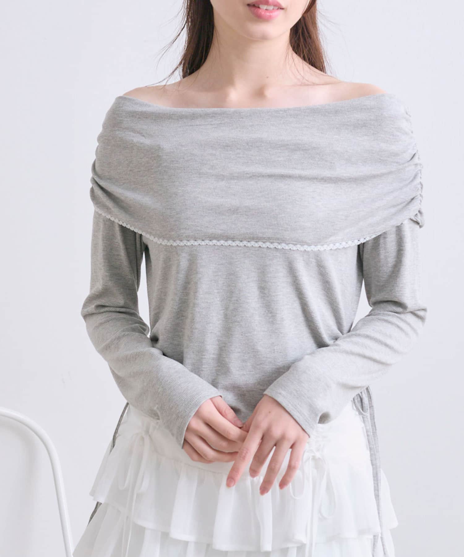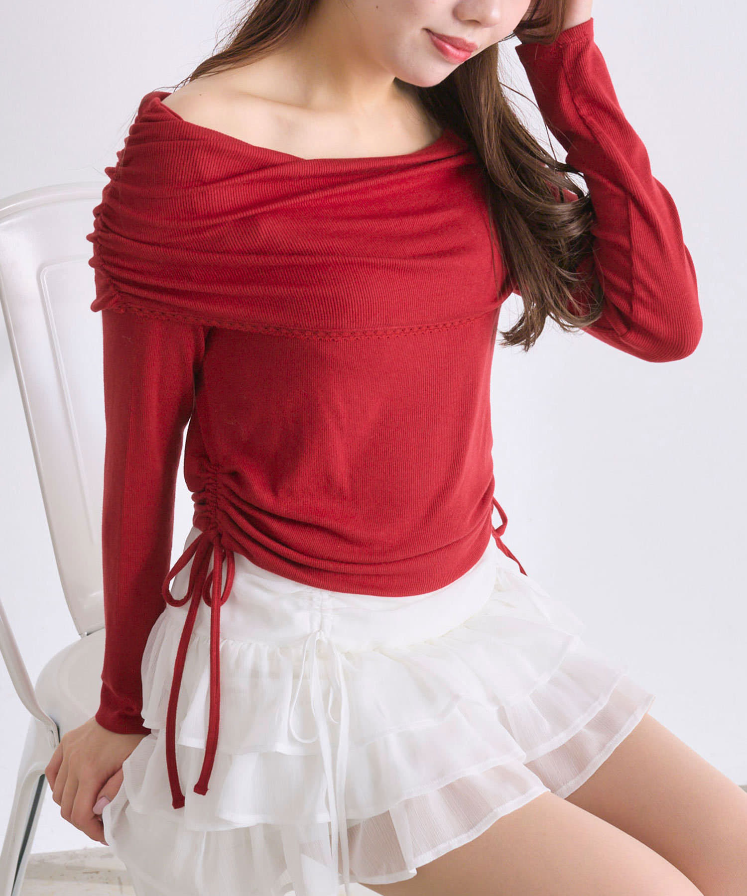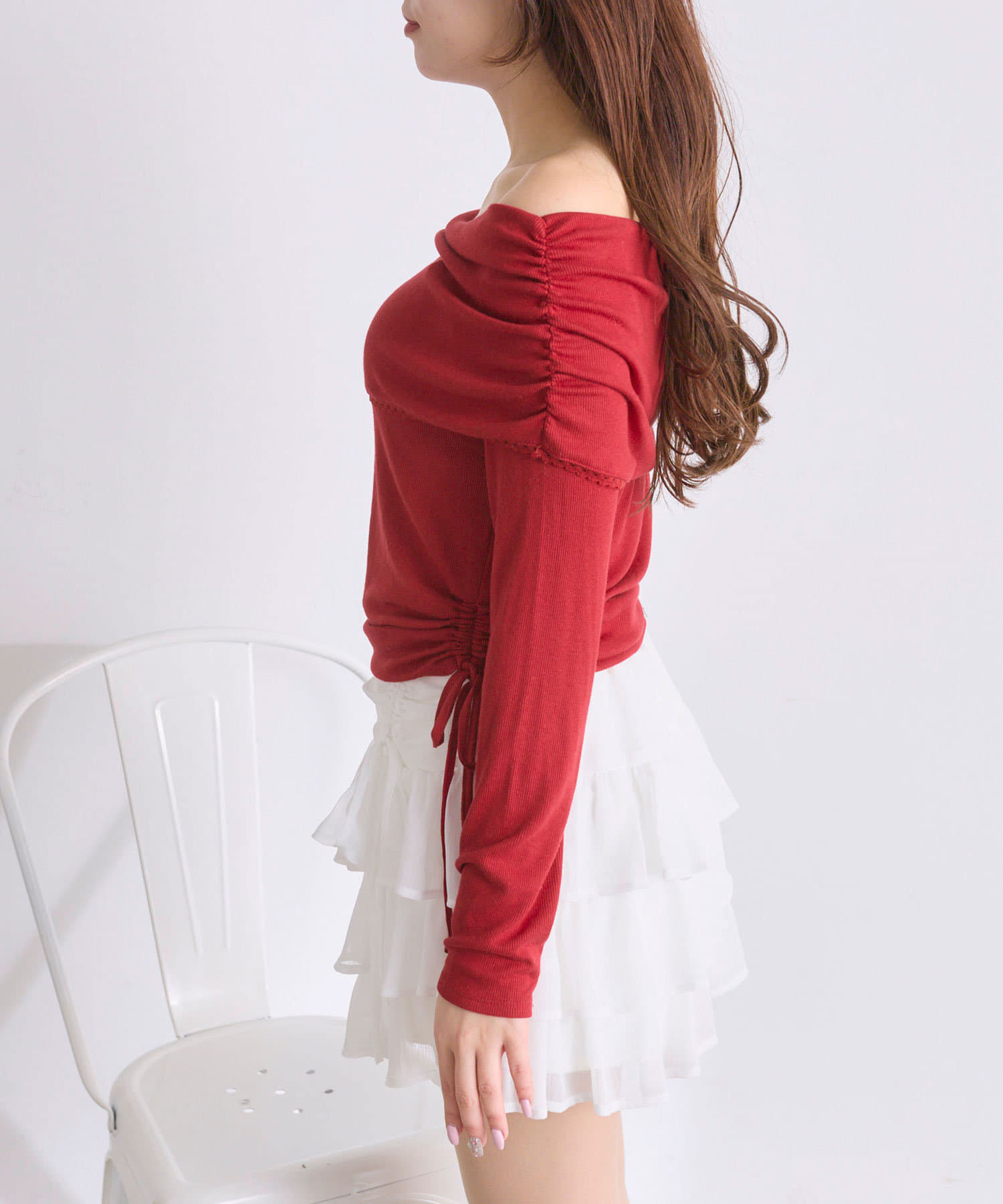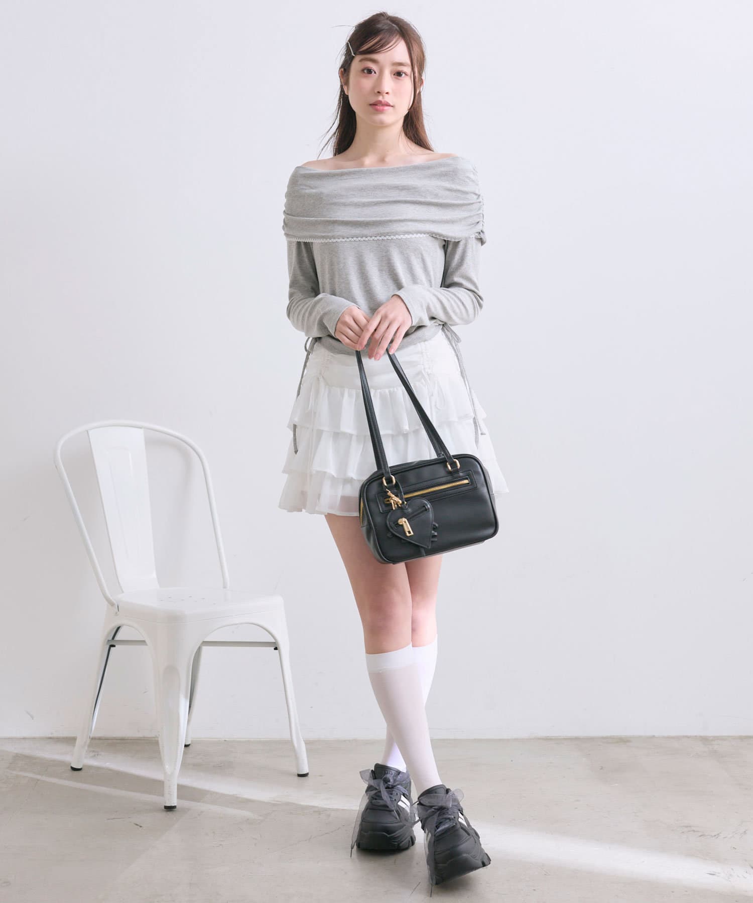 ・さりげないピコレースやサイドのドロストリボンがコーデに甘さをプラスします。