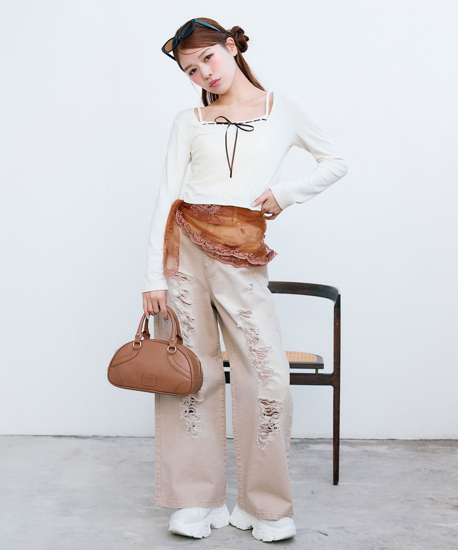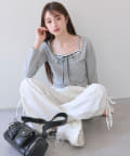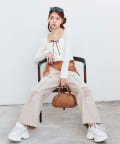 ・デニムパンツと合わせたカジュアルガーリーなコーデもかわいいです。
