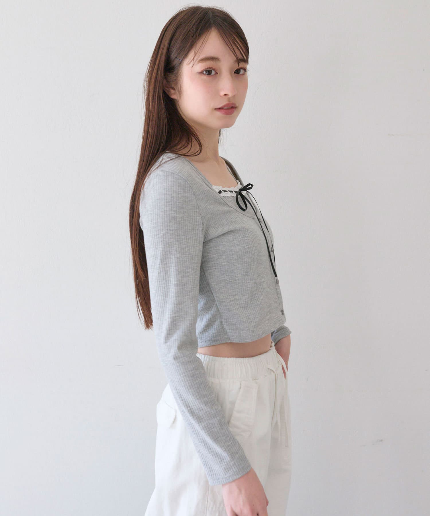 品番 1051060160 素材 【アイボリー・ブラック】本体: レーヨン93%, ポリウレタン7% レース部分: 綿50%, ポリエステル50% リボン: ポリエステル100% 【トップグレー・レッド】本体: ポリエステル65%, レーヨン28%, ポリウレタン7% レース部分: 綿50%, ポリエステル50% リボン: ポリエステル100% 原産国 中国 サイズ FREE カテゴリ トップス > Tシャツ/カットソー タイプ レディース ギフト ラッピング 可 取り扱い 本体:手洗い可能 アイテムサイズ