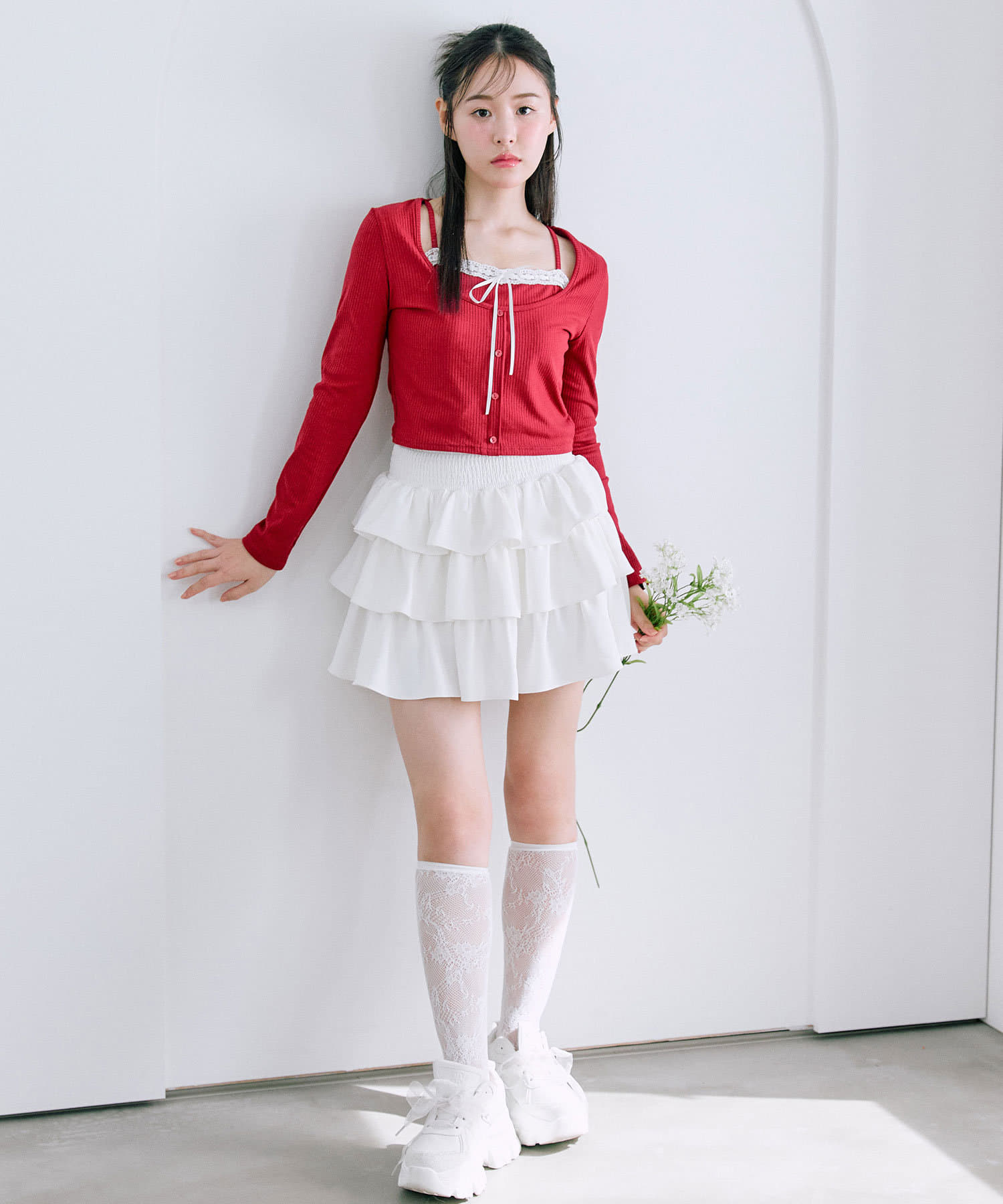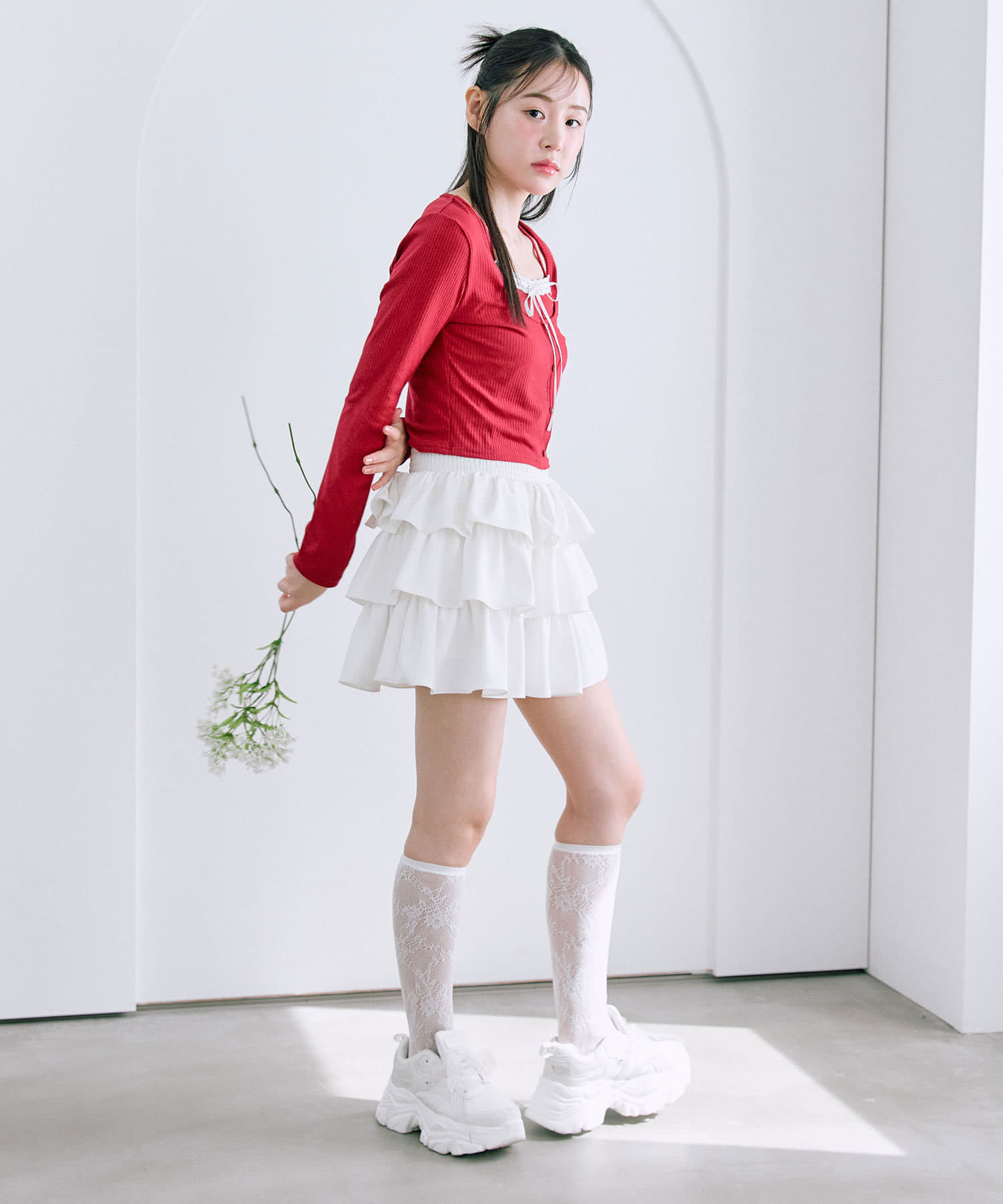 ・ミニスカートと合わせてガーリーに仕上げるのがおすすめ。