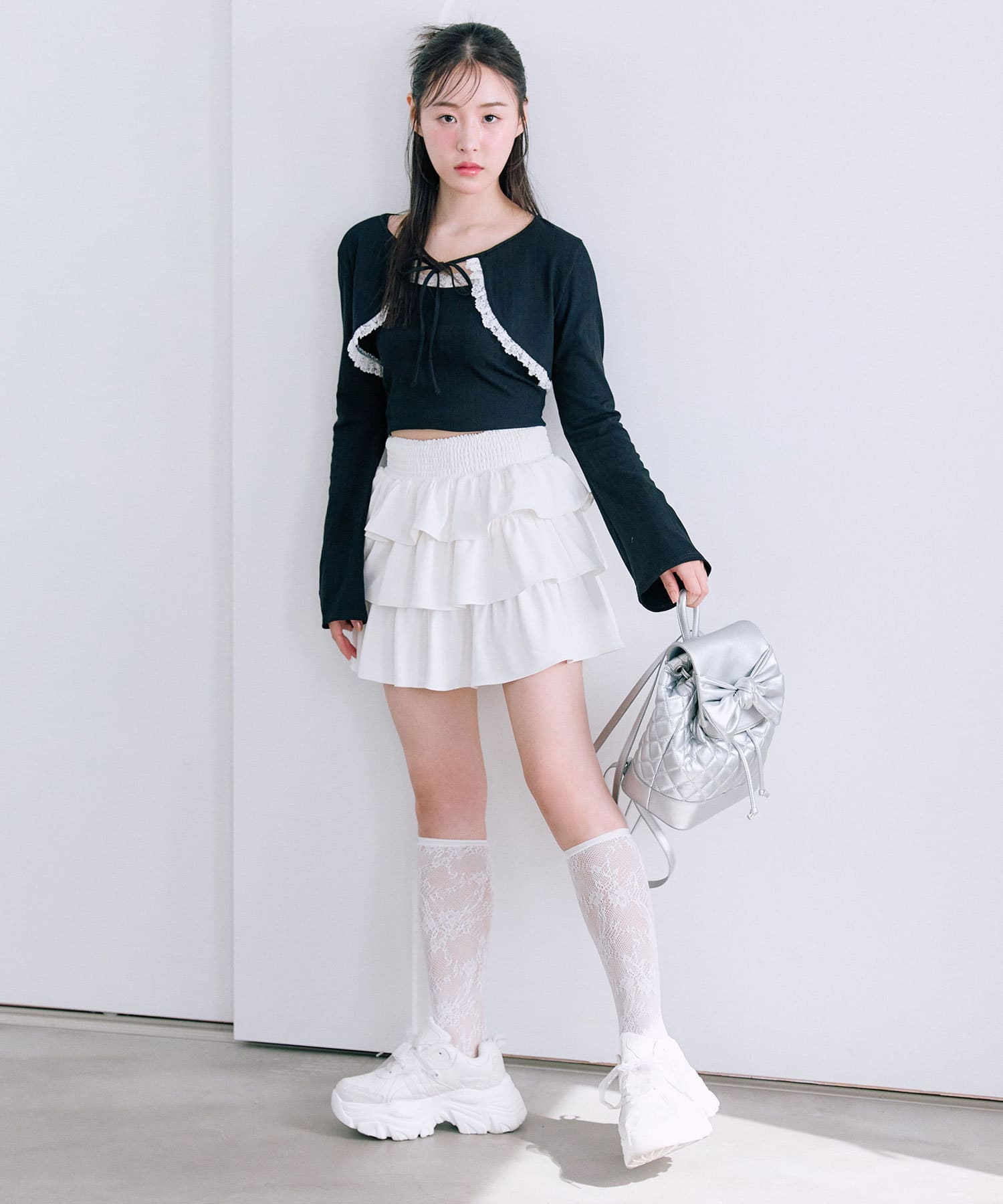 ・ガーリー好きな方はミニスカートを合わせるのがおすすめです。