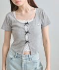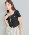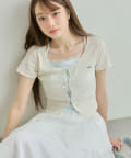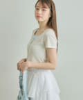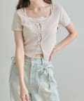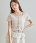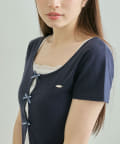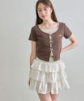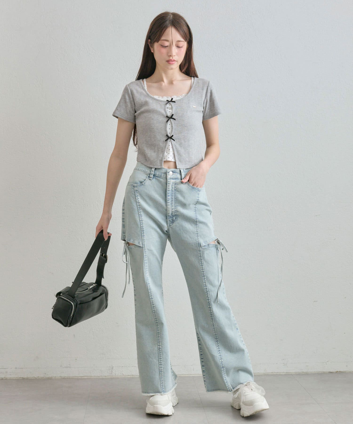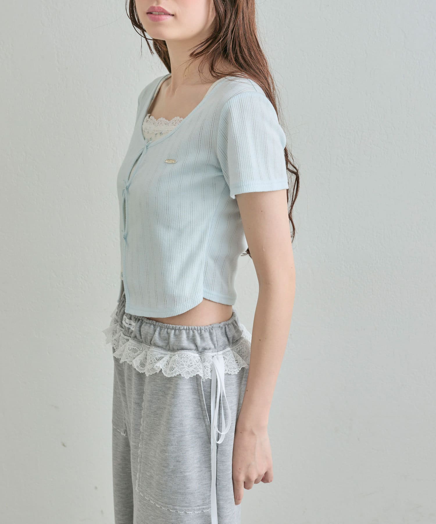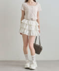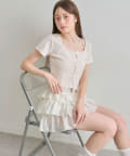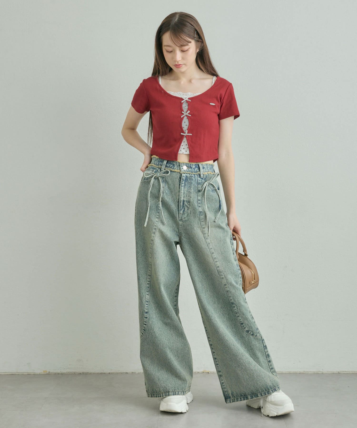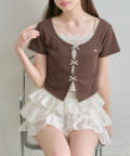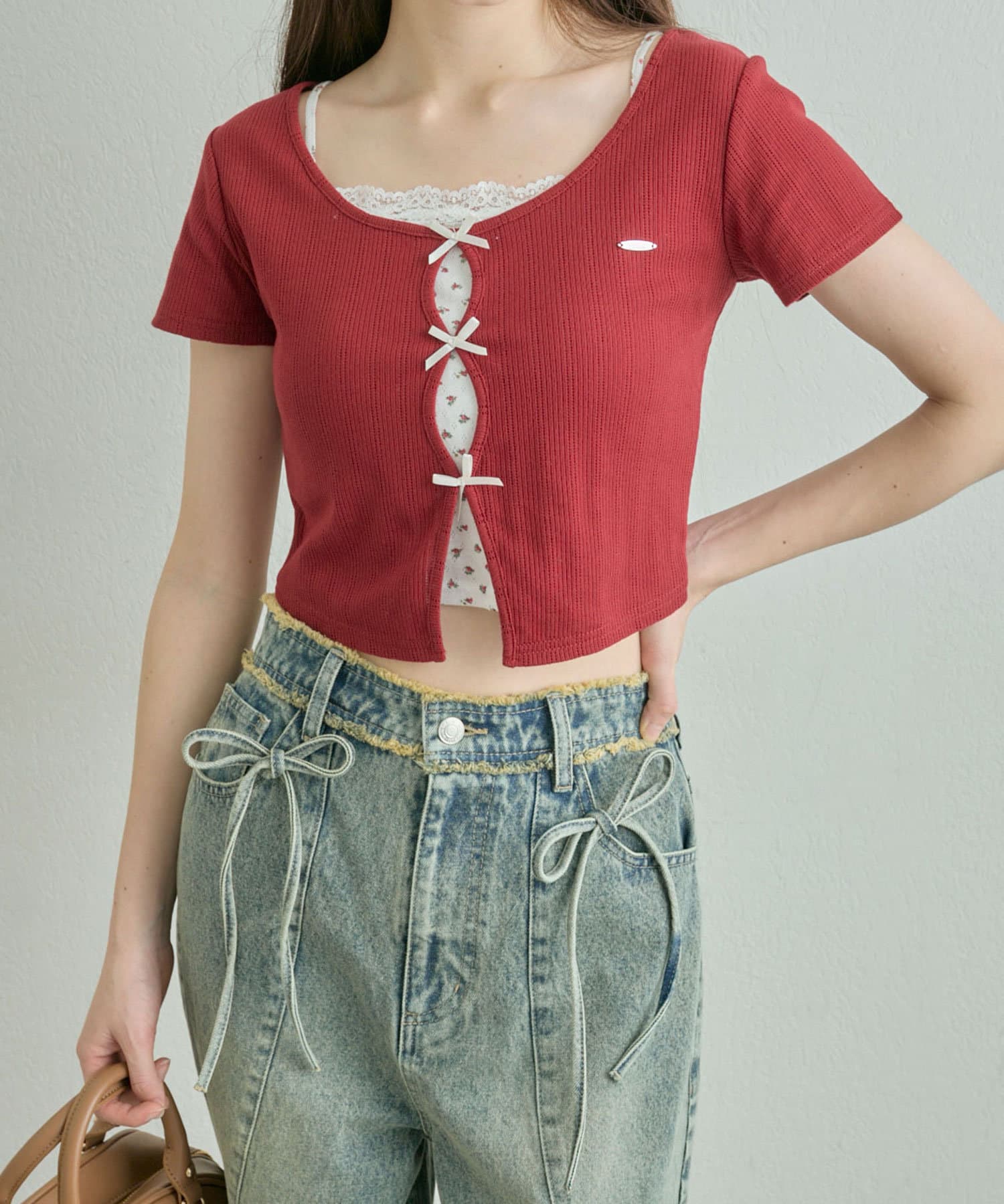 ・小さいリボンに胸元のレースなどかわいい要素たくさんのトップス。