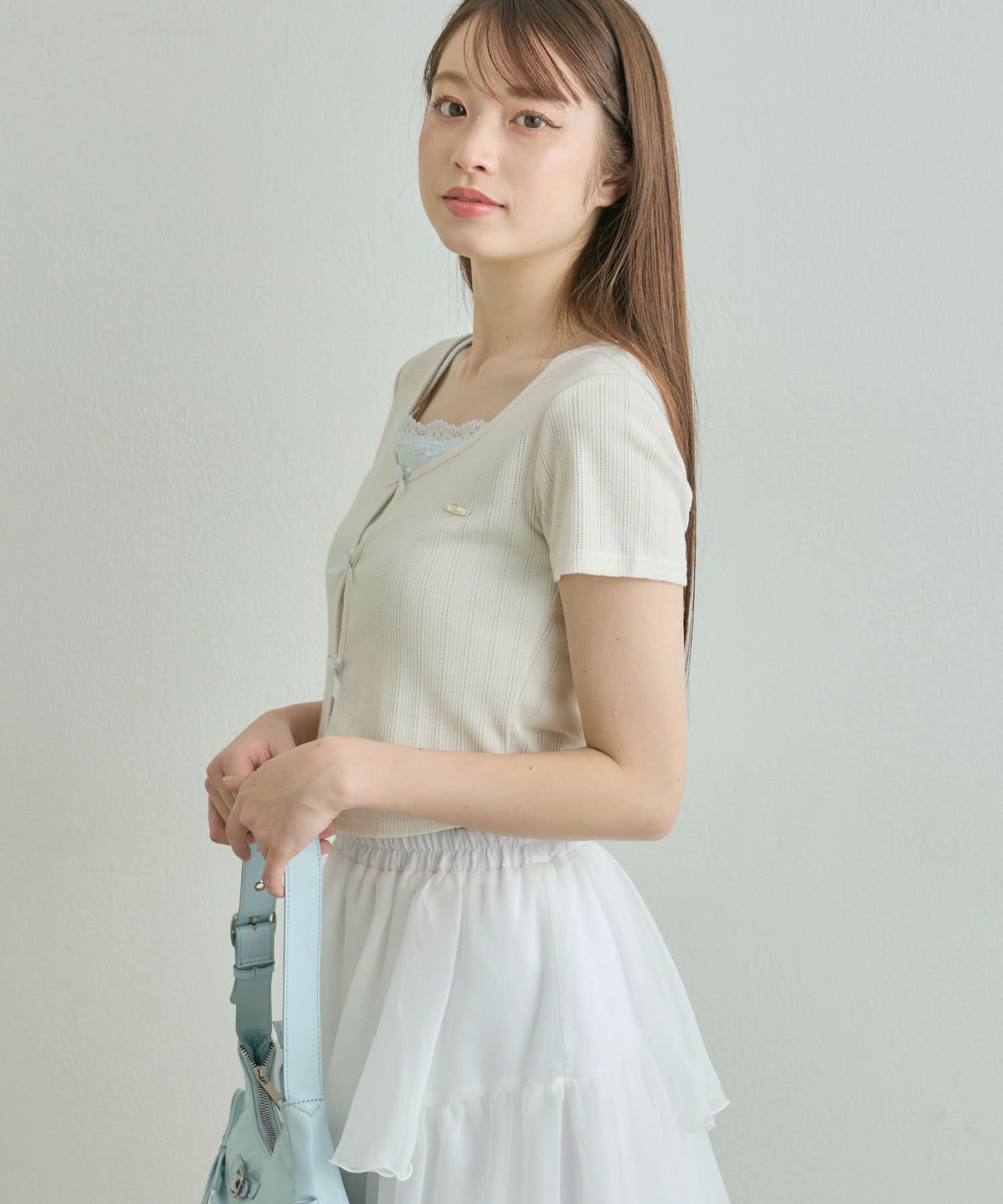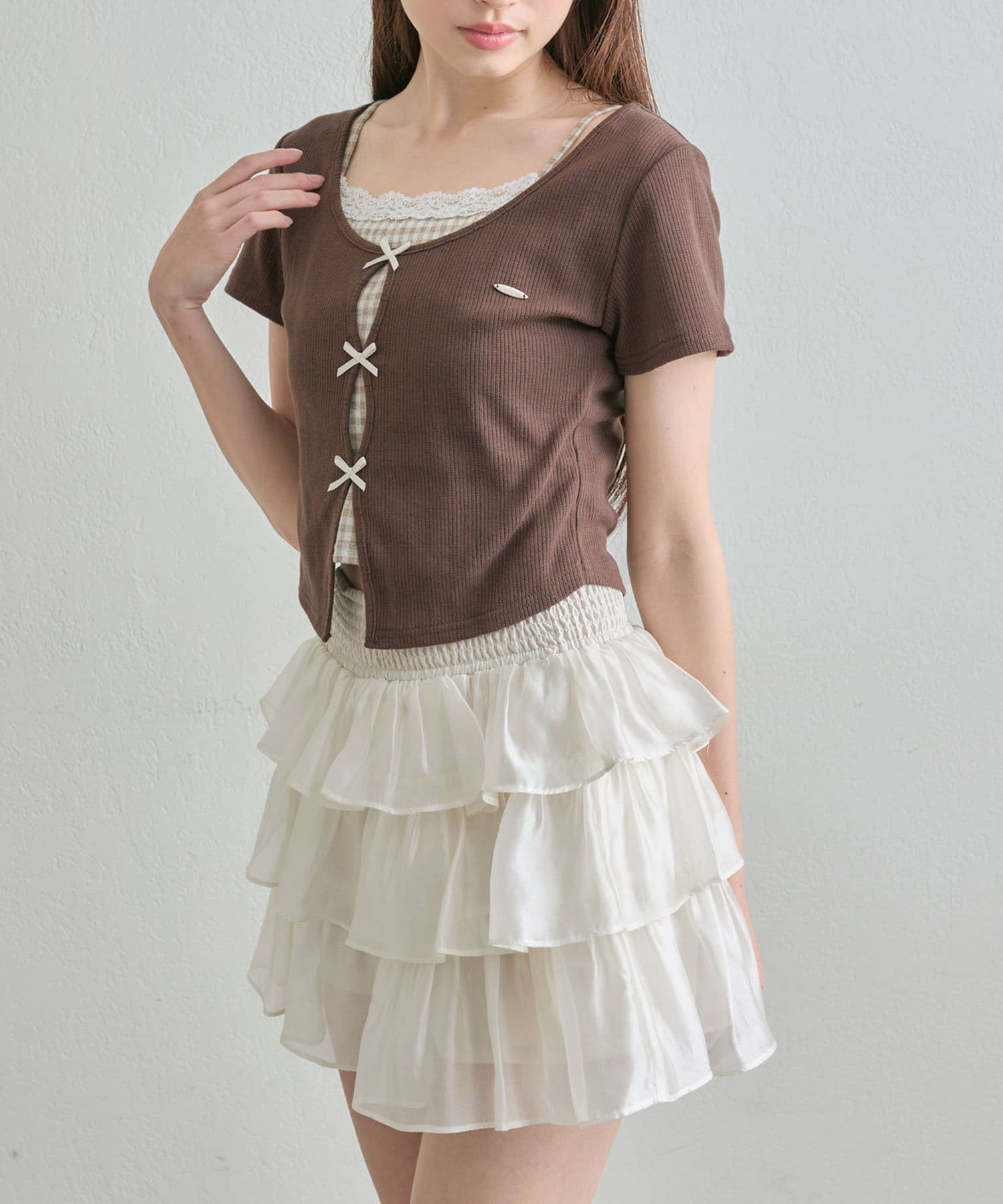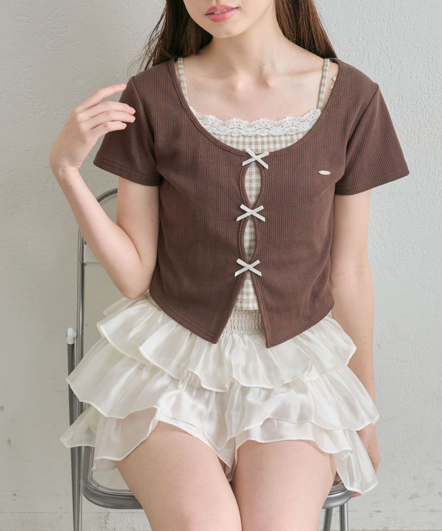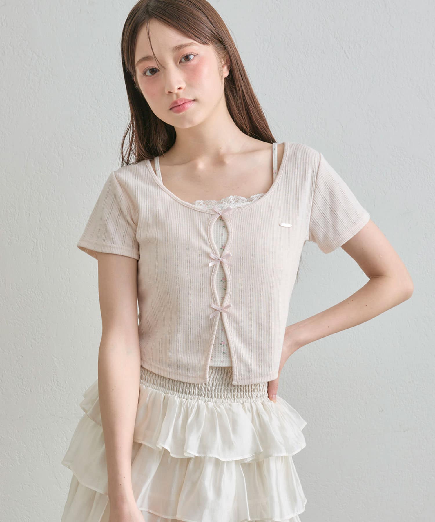 ・キャミインナーにカーディガンを合わせたようなレイヤード風のデザインです。