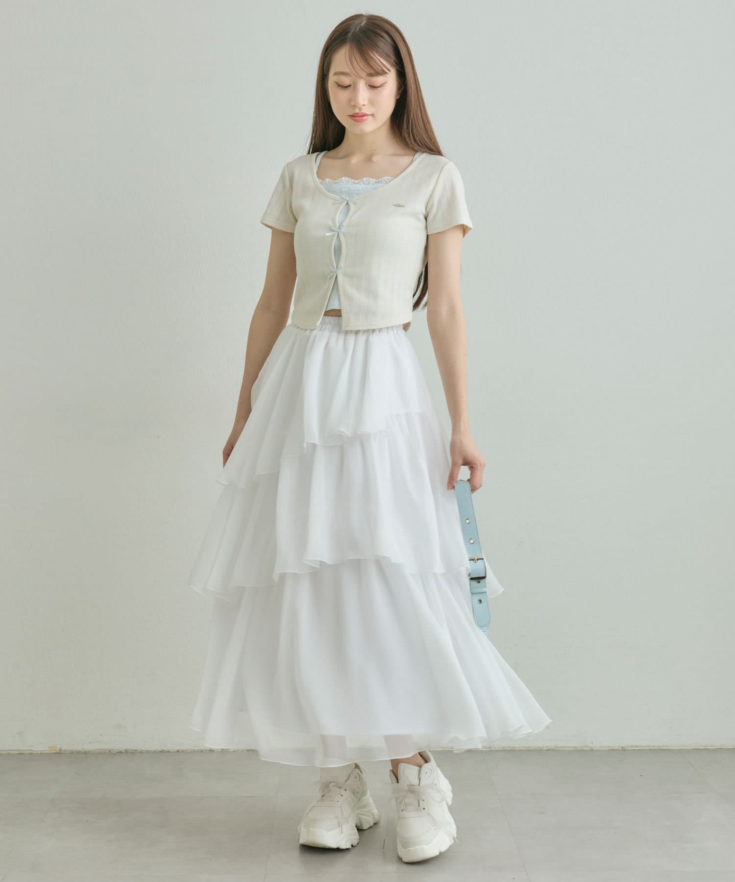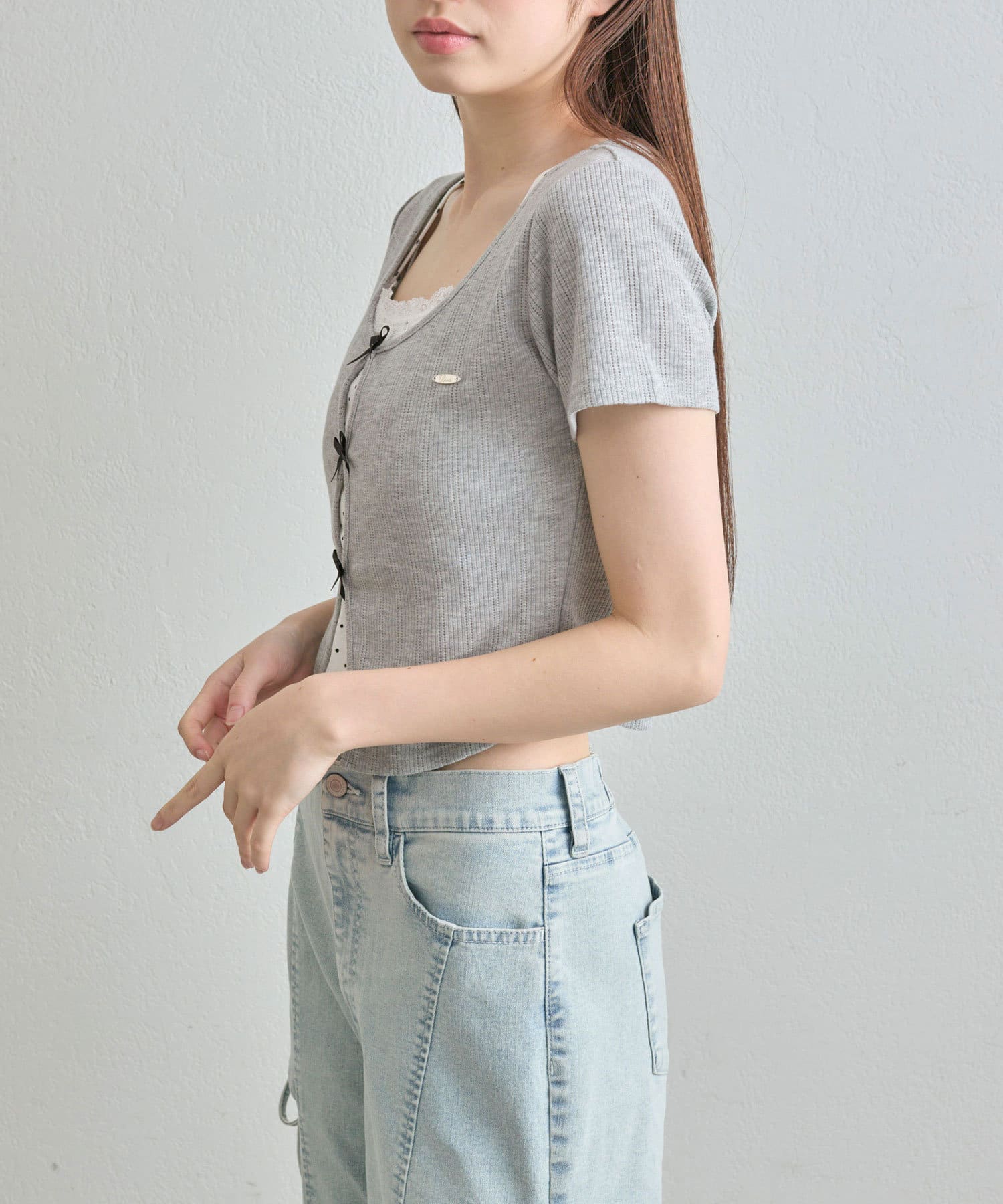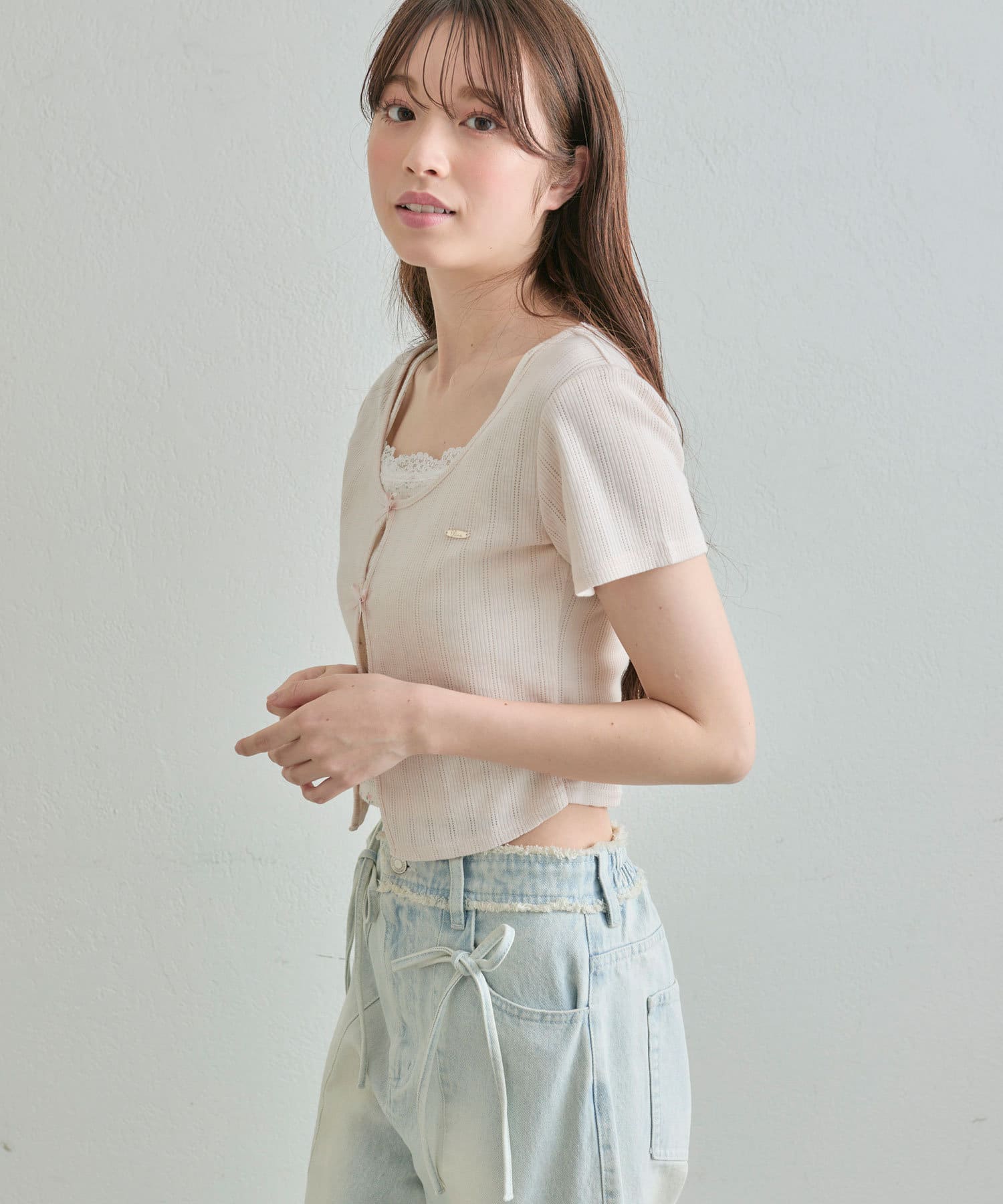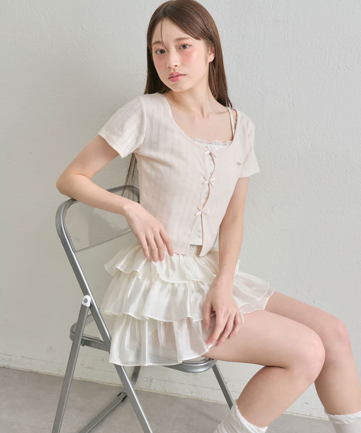 ・キャミインナーにカーディガンを合わせたようなレイヤード風のデザインです。