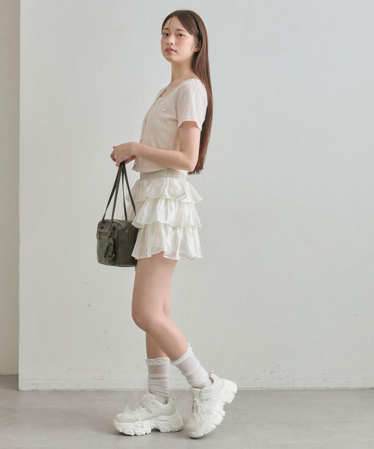 ・ミニスカートを合わせたガーリーコーデがおすすめ。
