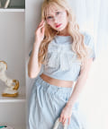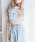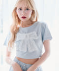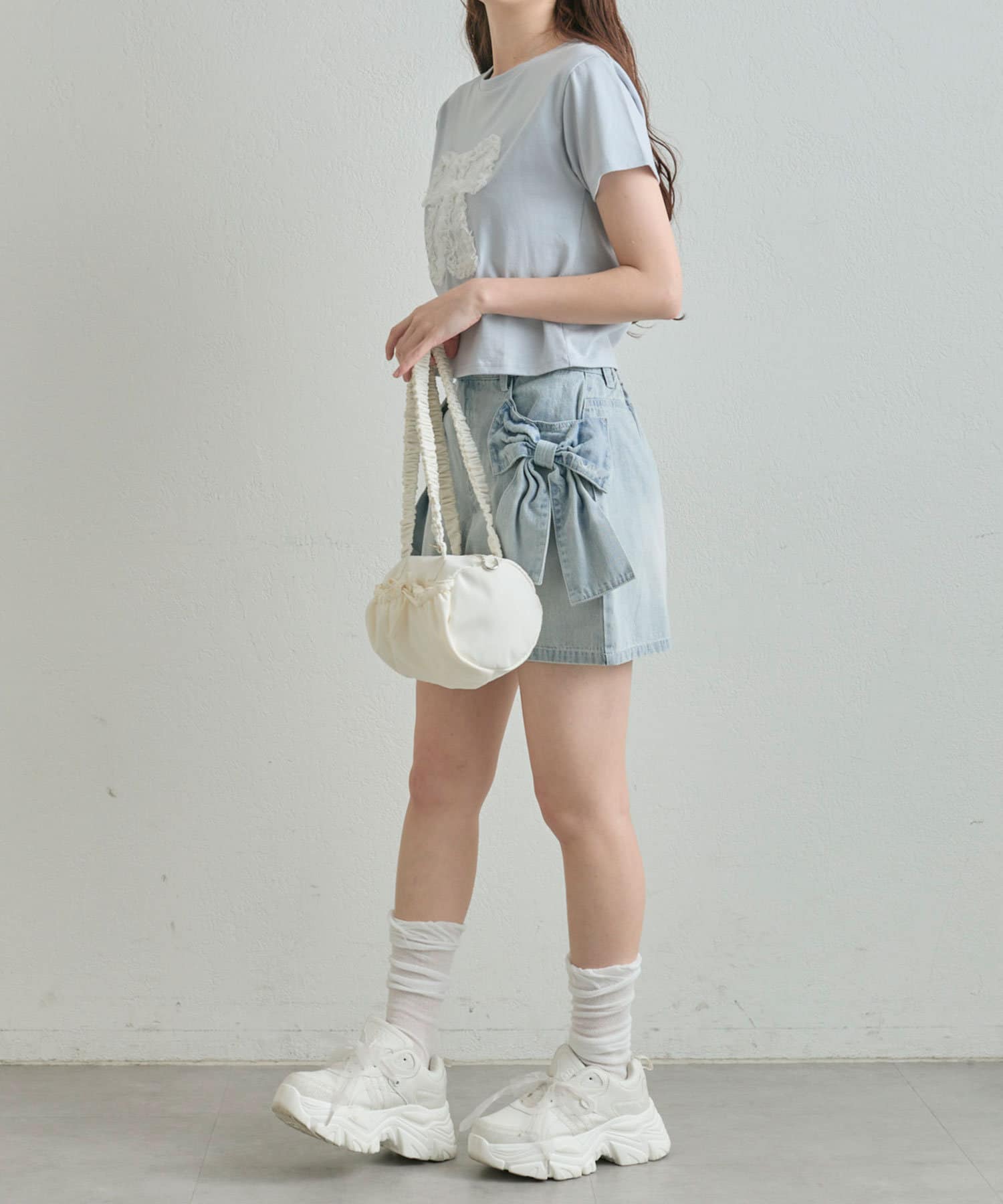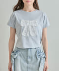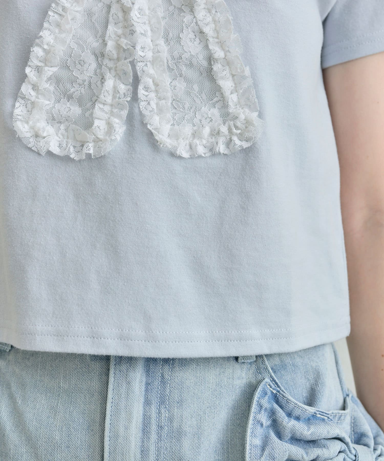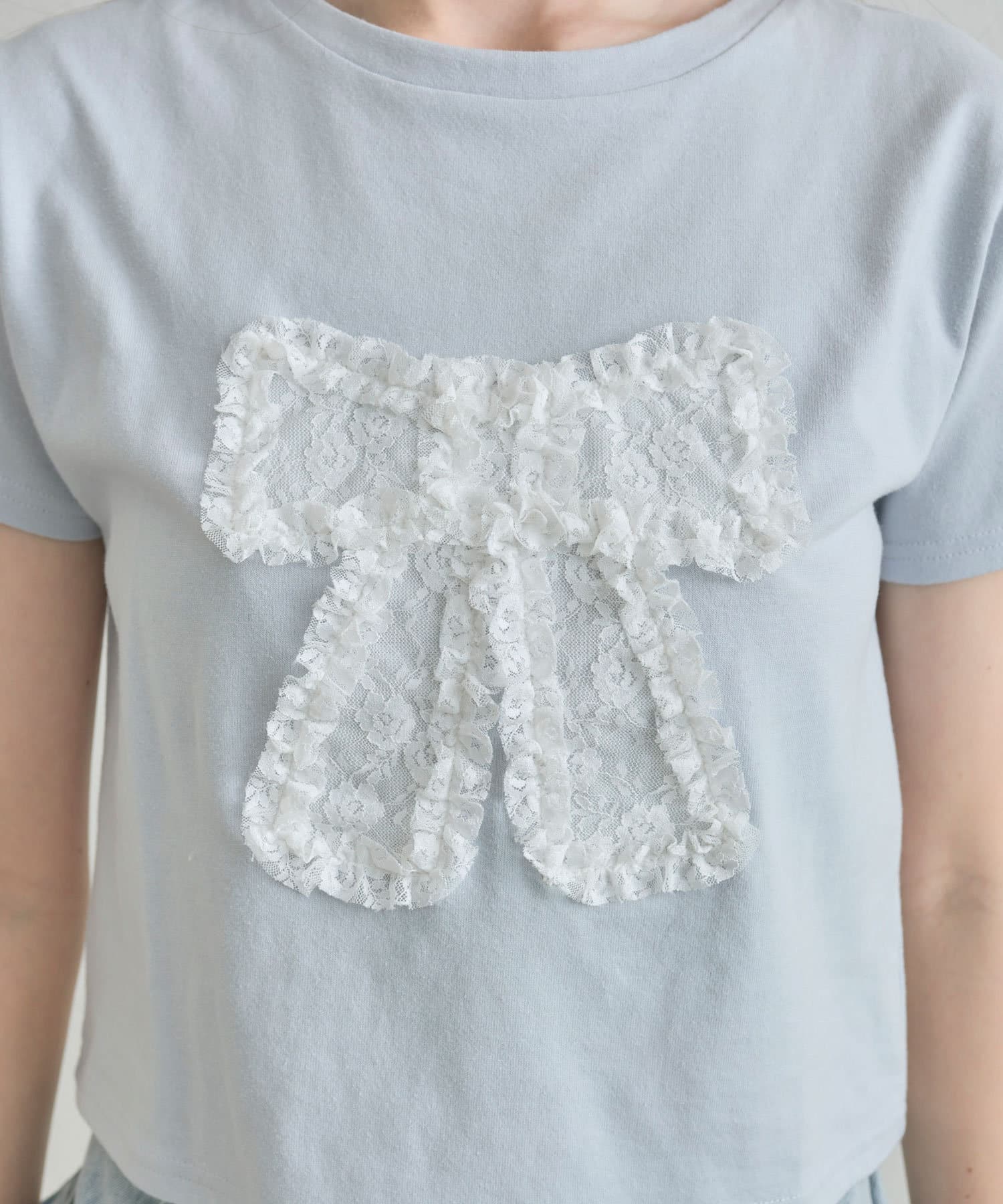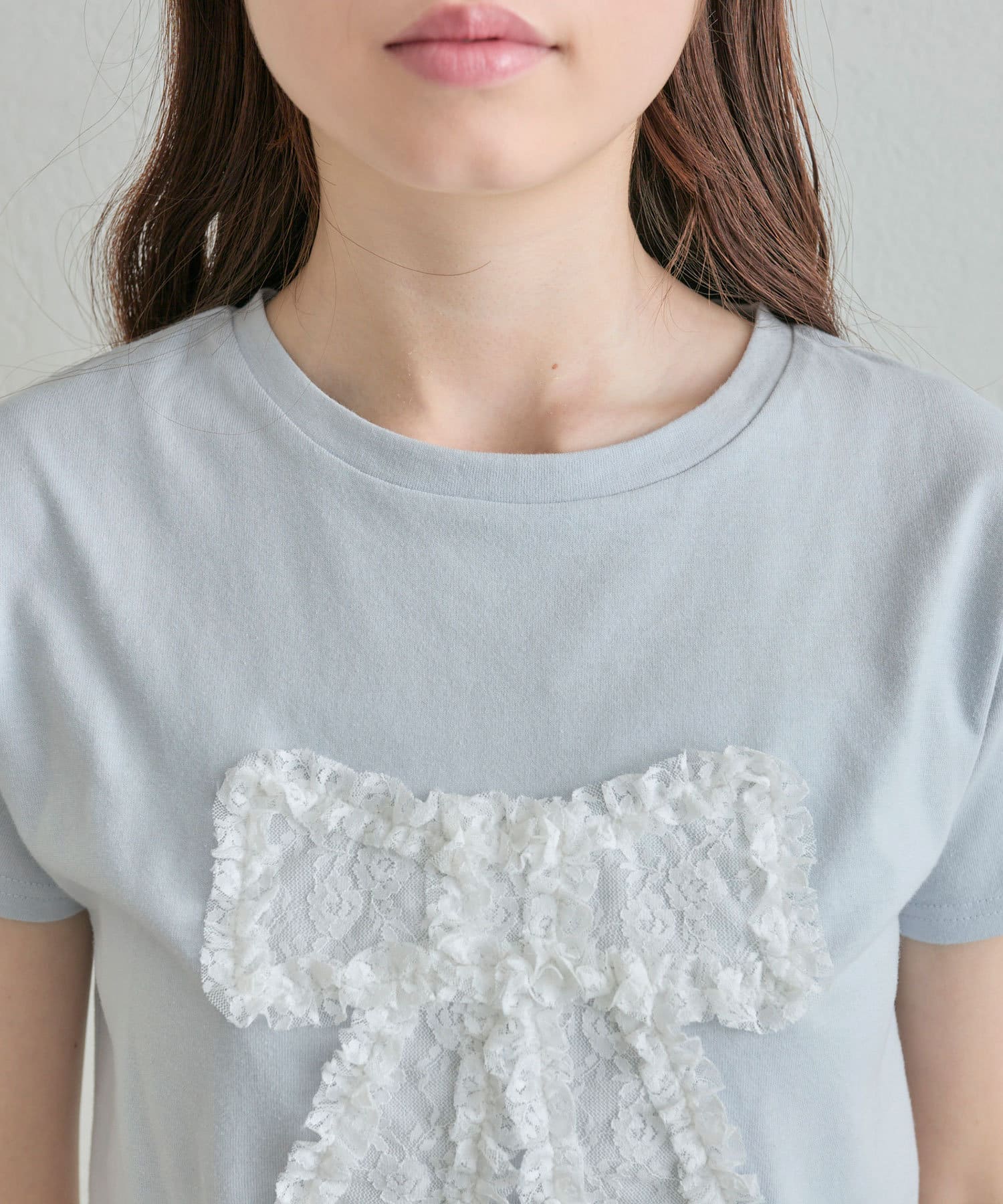 ・胸元に施された立体的なリボンがポイントのガーリーTシャツ。