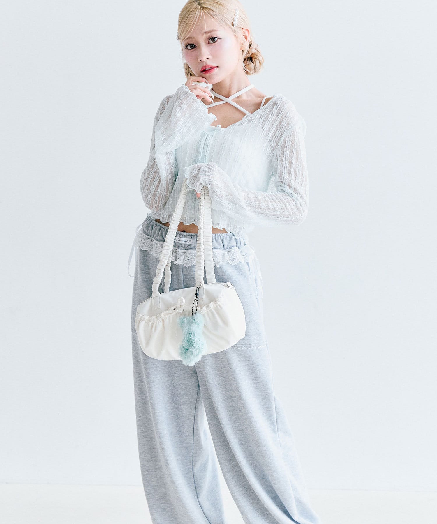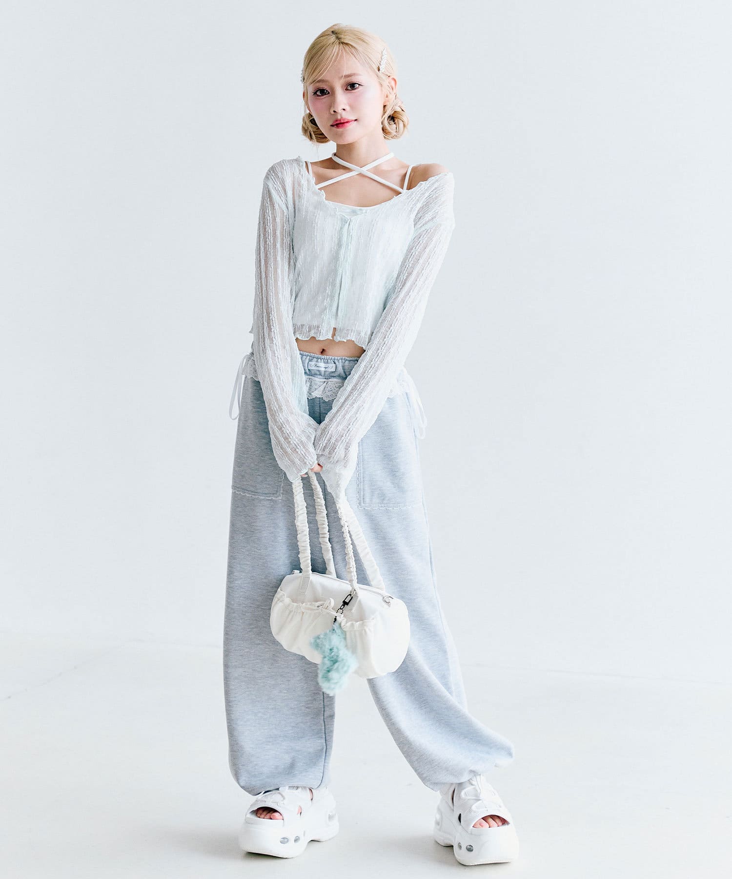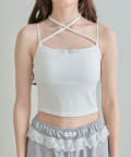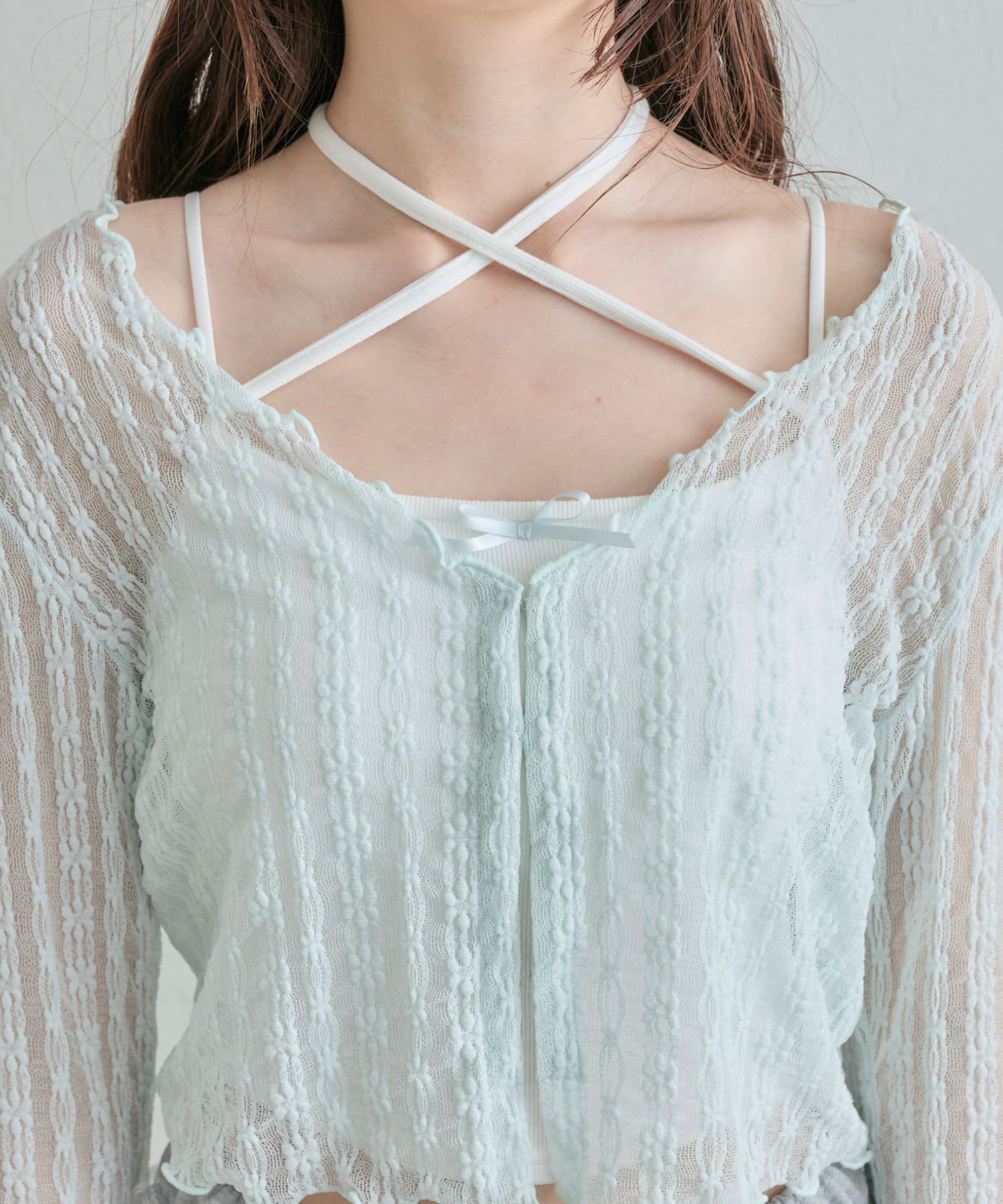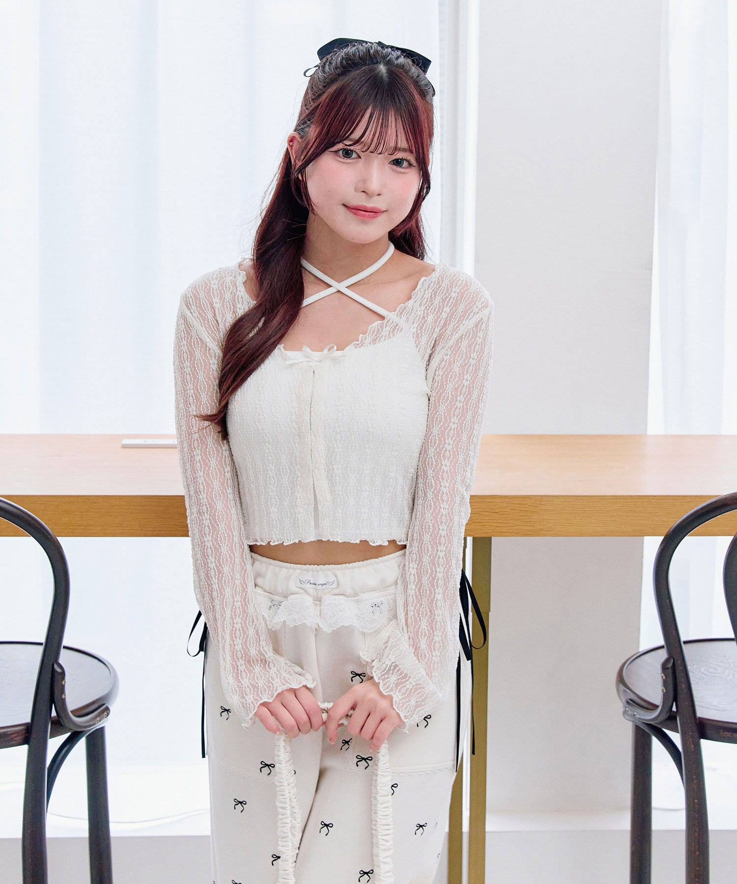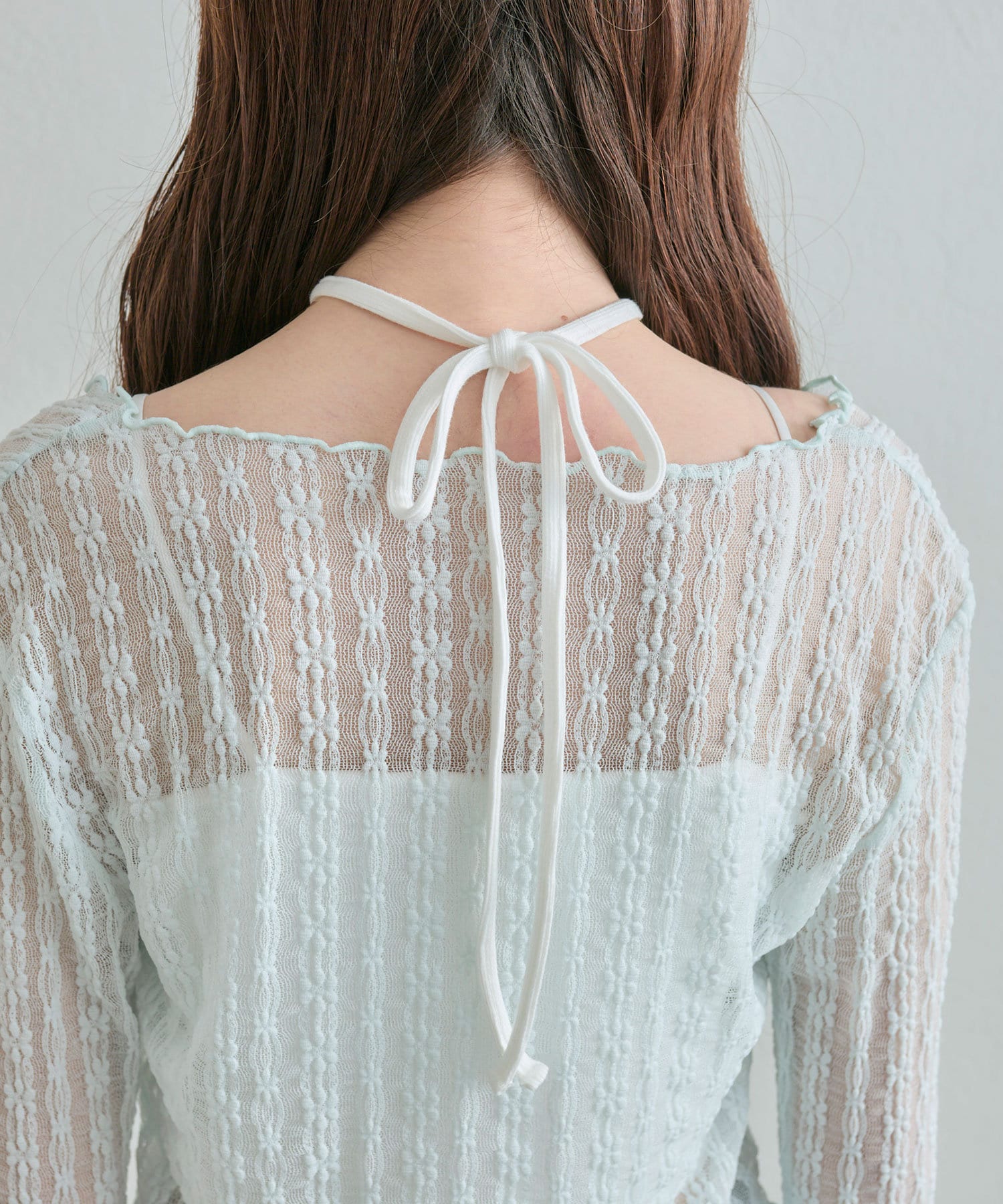 ・インナーはホルターネックデザインで、首の前でクロスして結ぶと顔周りが華やかになります。
