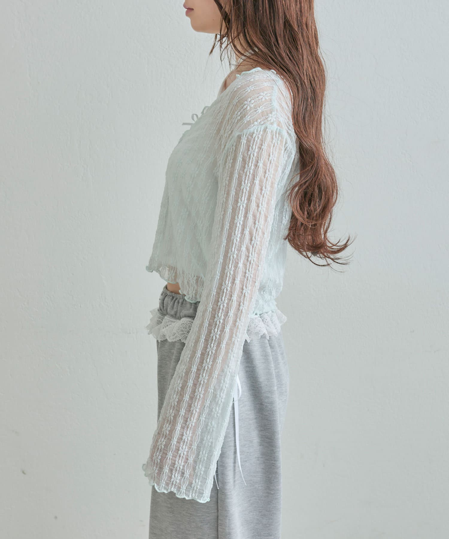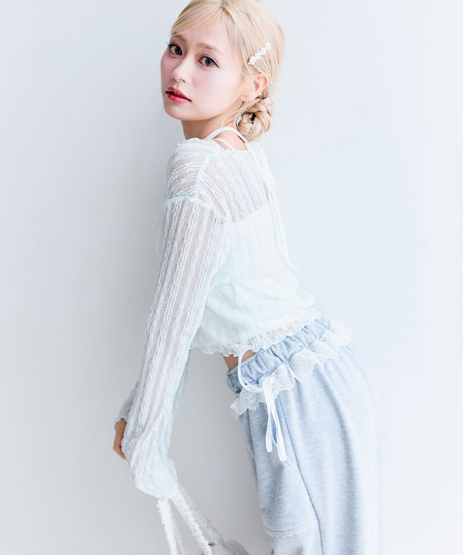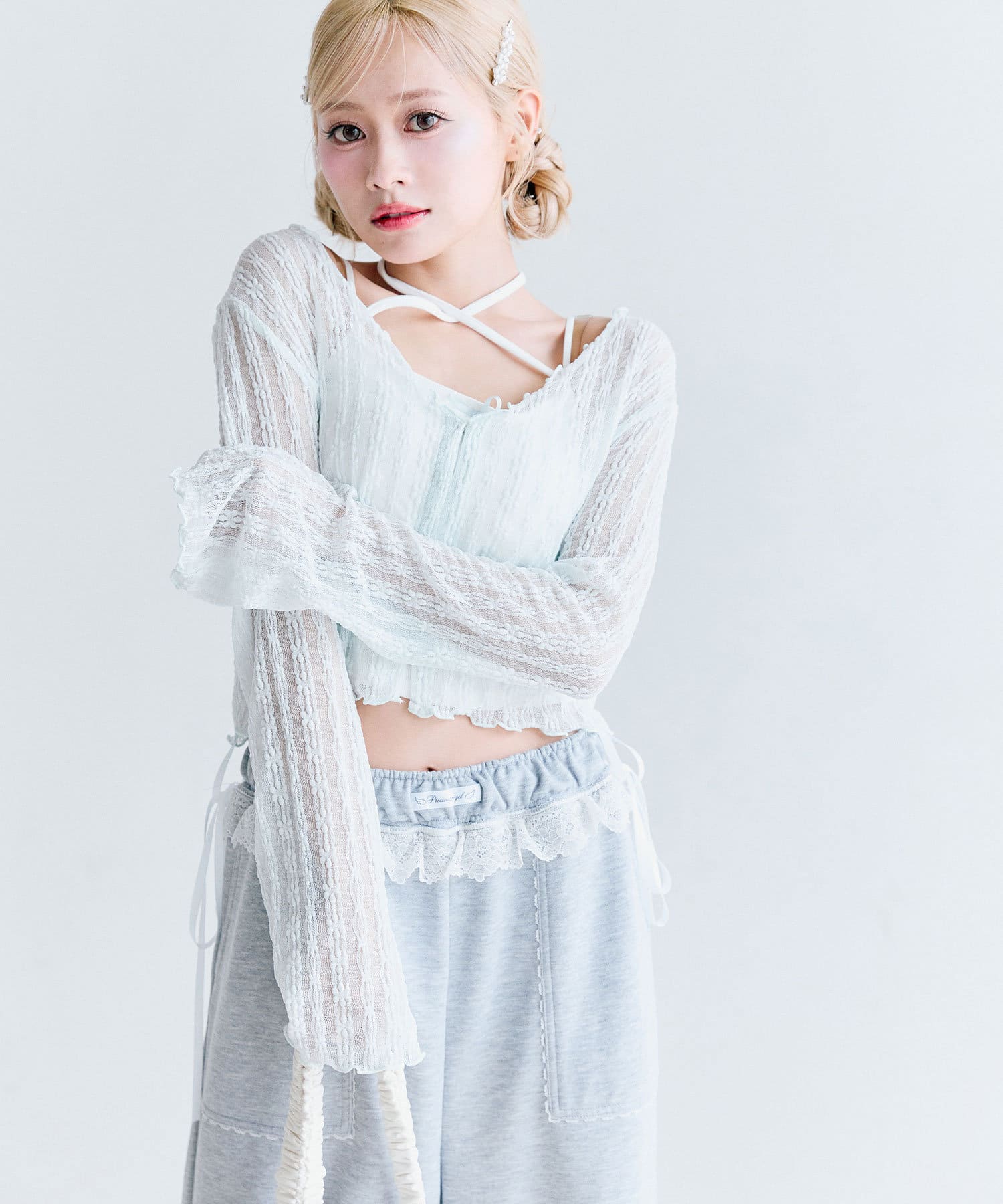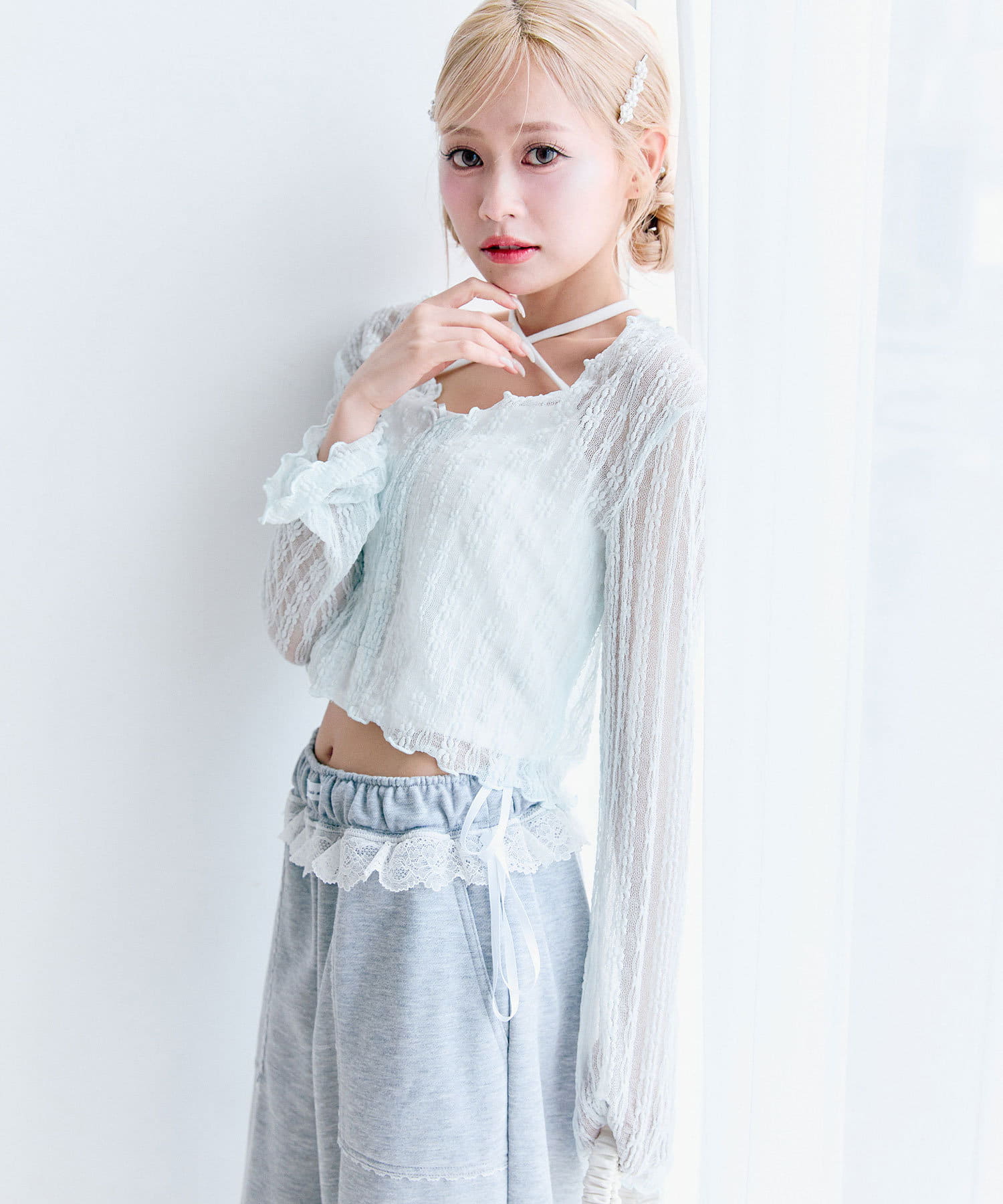 ・繊細なレースの上品な透け感でさりげない肌見せが叶い、大人可愛い雰囲気を演出できます。