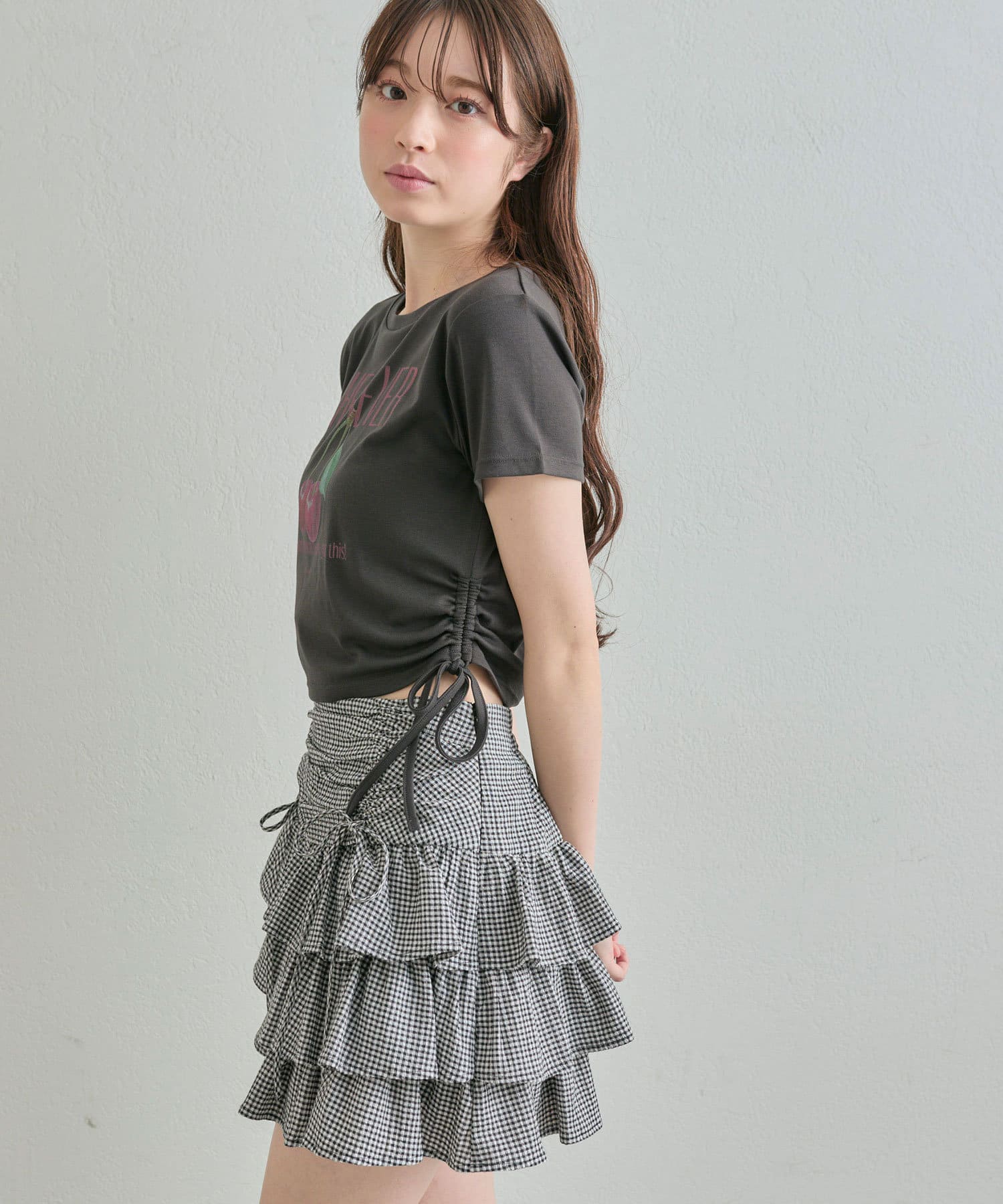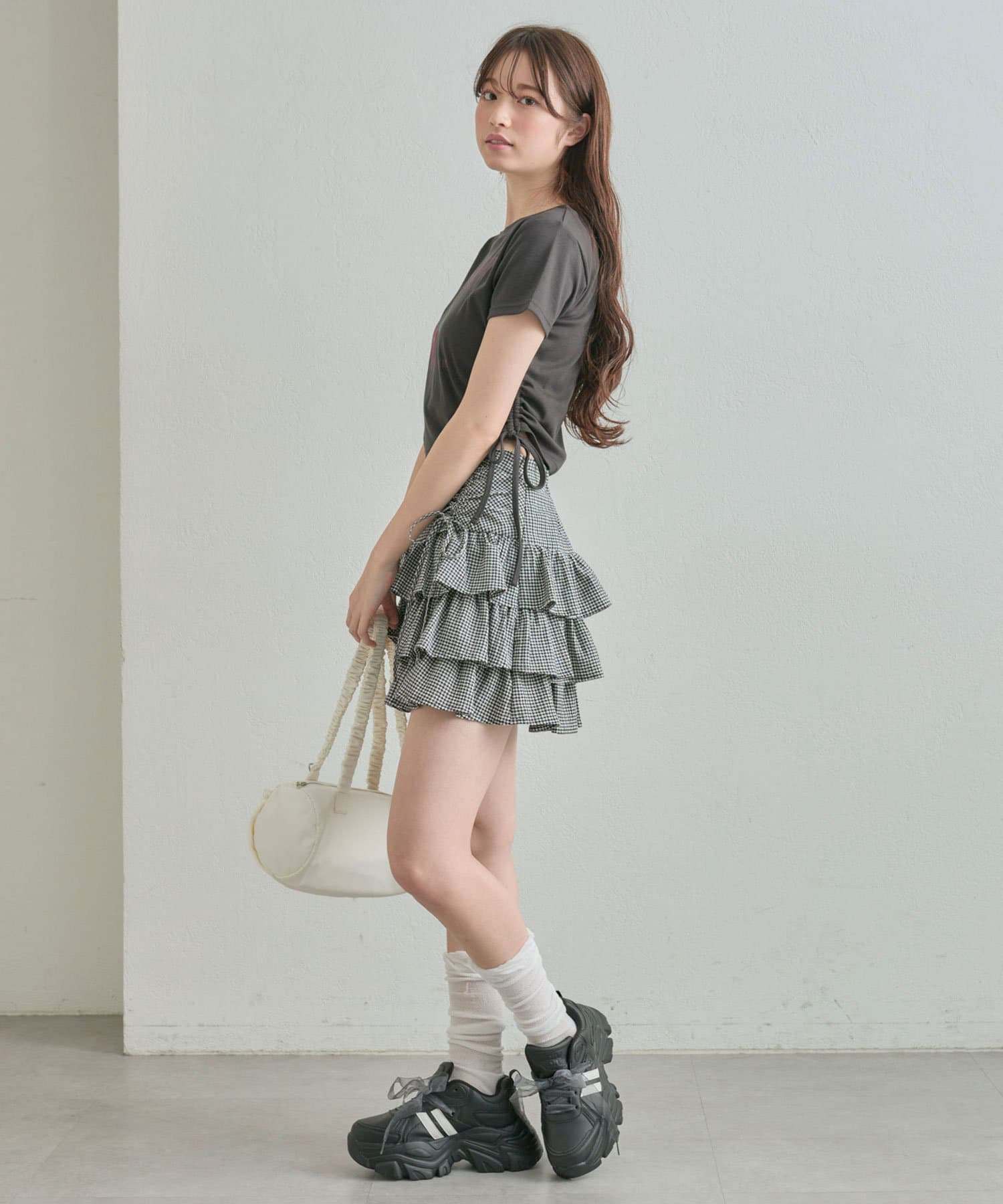 ・ミニスカートと合わせれば、甘すぎないカジュアルガーリーな着こなしに。