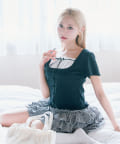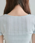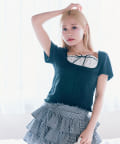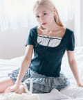 ・フリルインナーをレイヤードしているようなデザインがかわいいトップス。