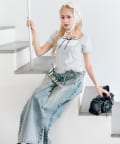・ロングスカートを合わせるとフェミニンな雰囲気になります。