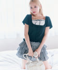 ・裾がフリルになっているので、インしなくてもかわいく着れるデザインです。