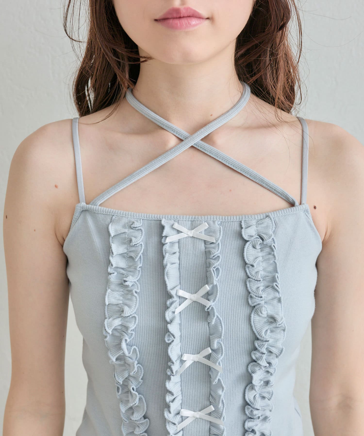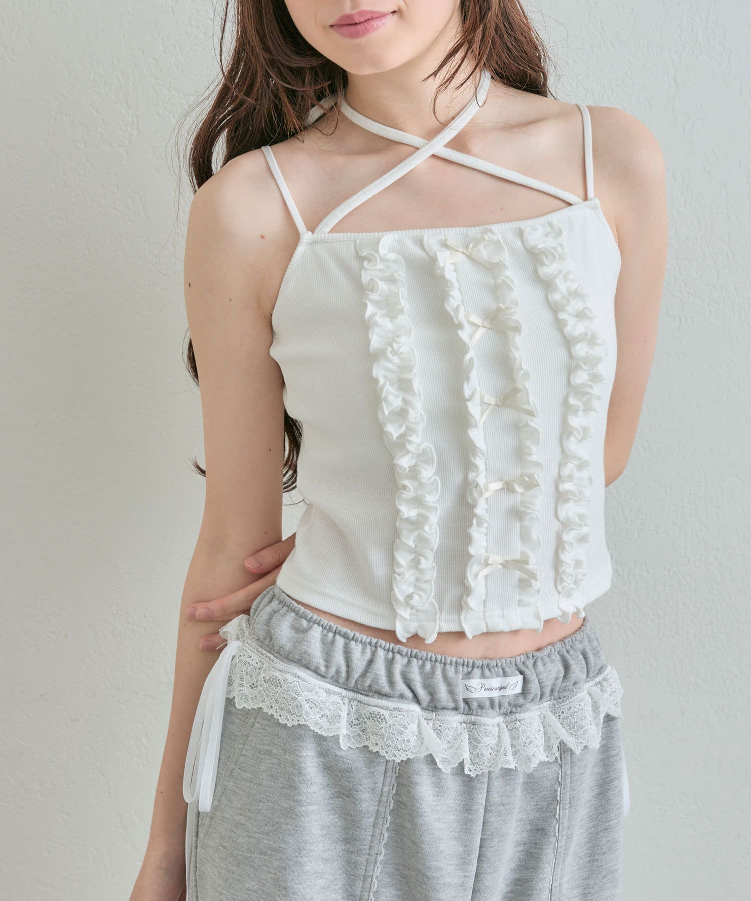 ・華奢なリボンとボリュームのあるフリルがポイントで、コーデの主役になるインナーです。
