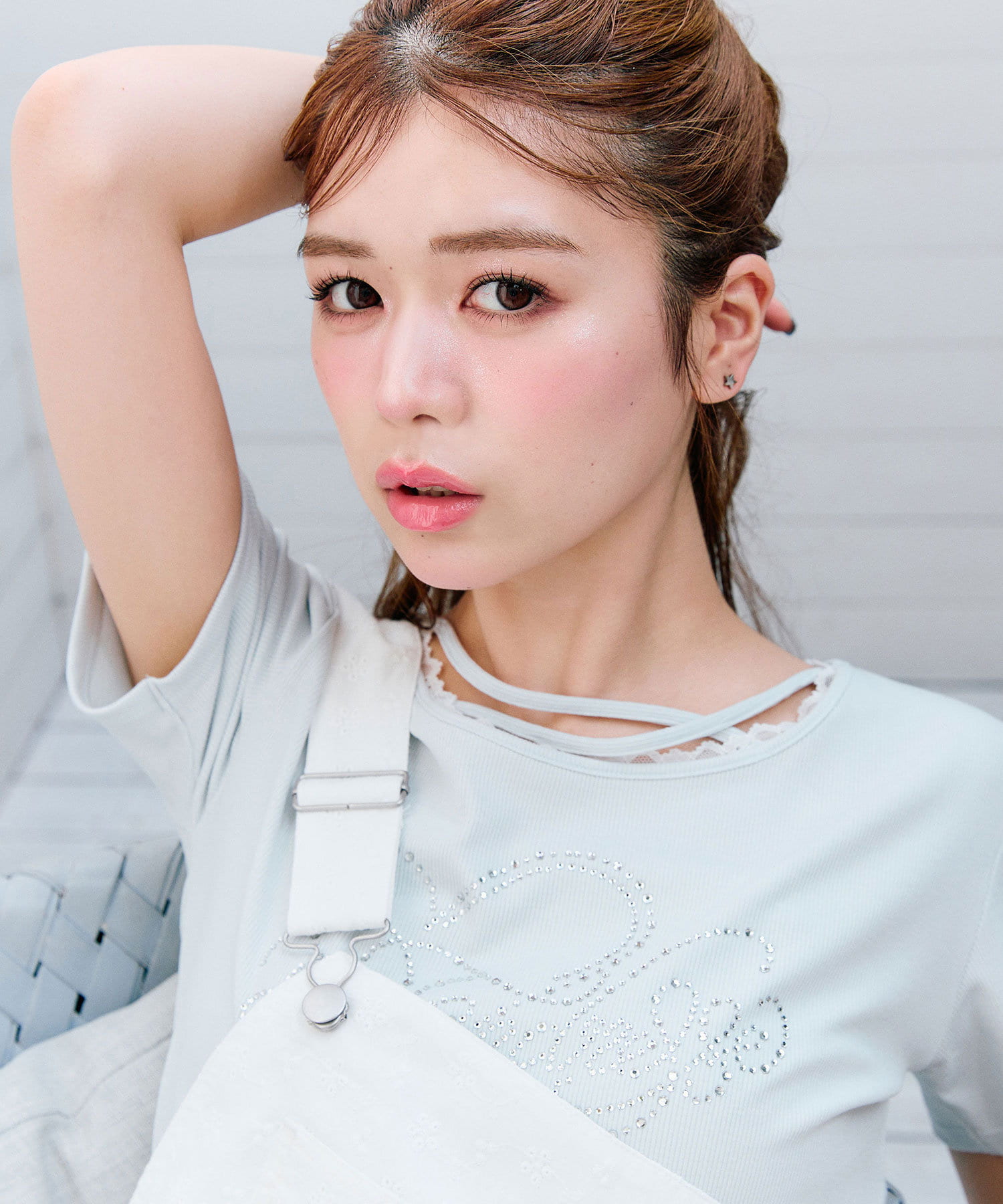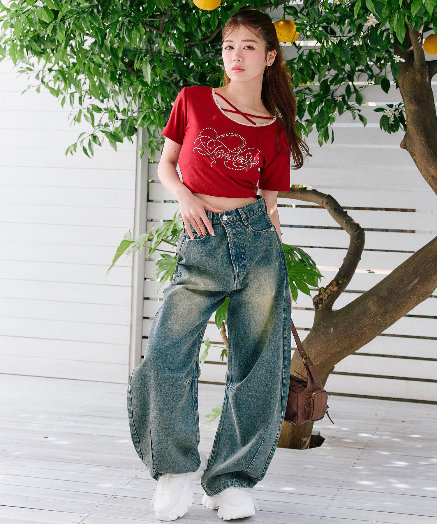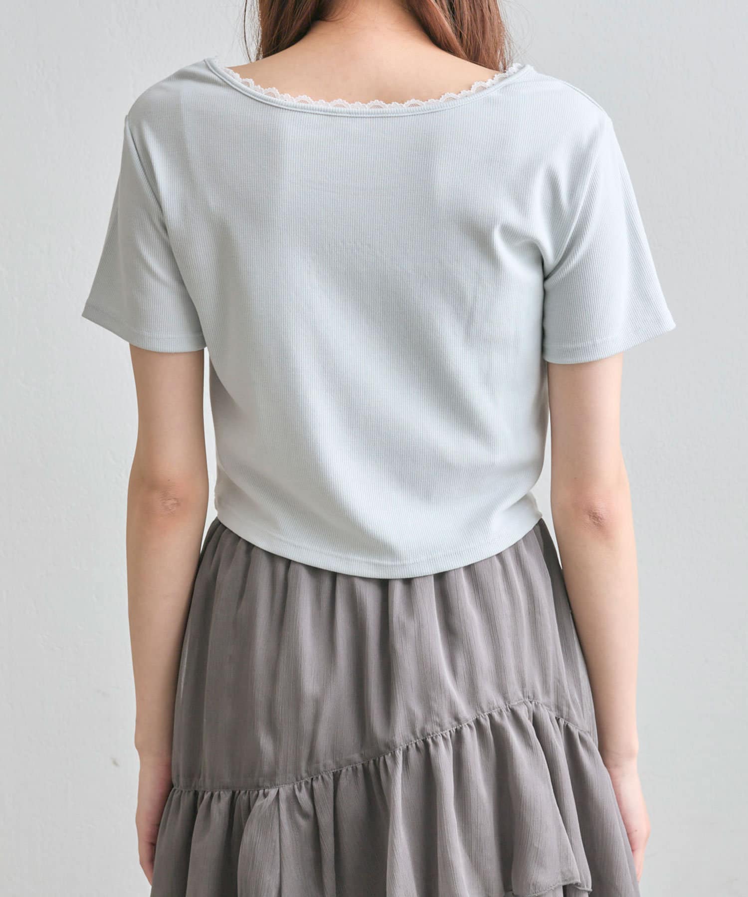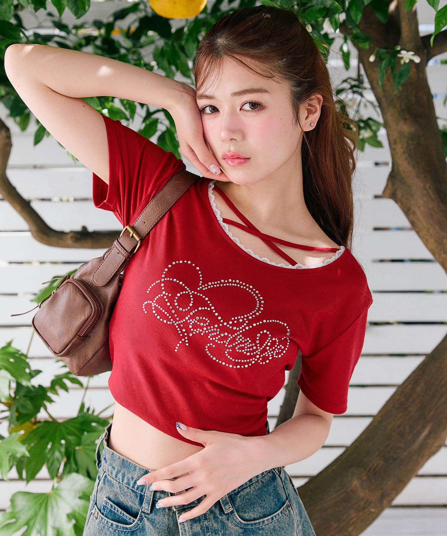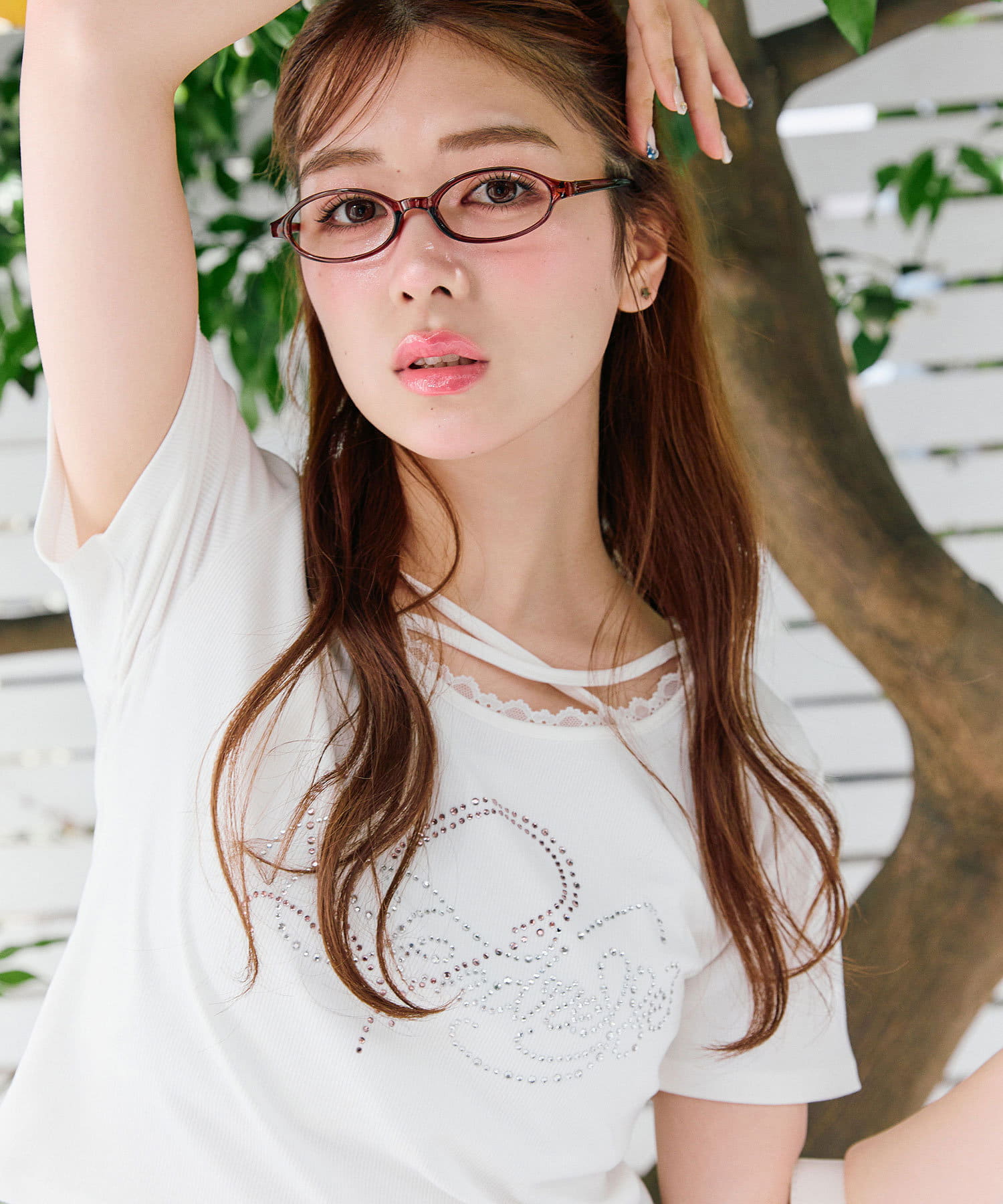 ・レースやきらきらロゴ、フロントのクロスデザインなど、かわいい要素たっぷりなガーリーTシャツ。