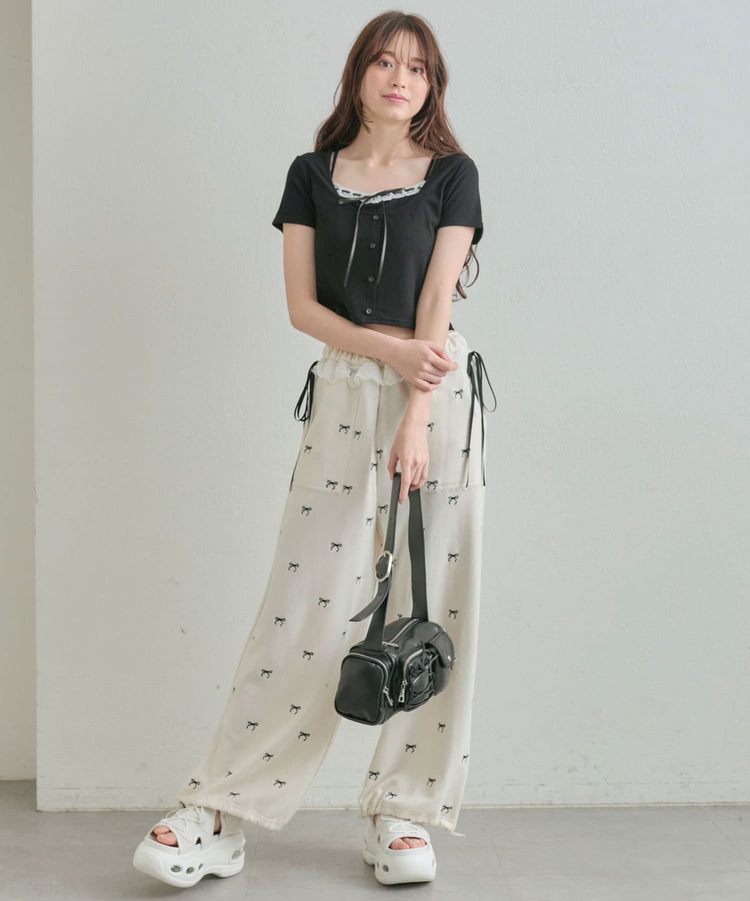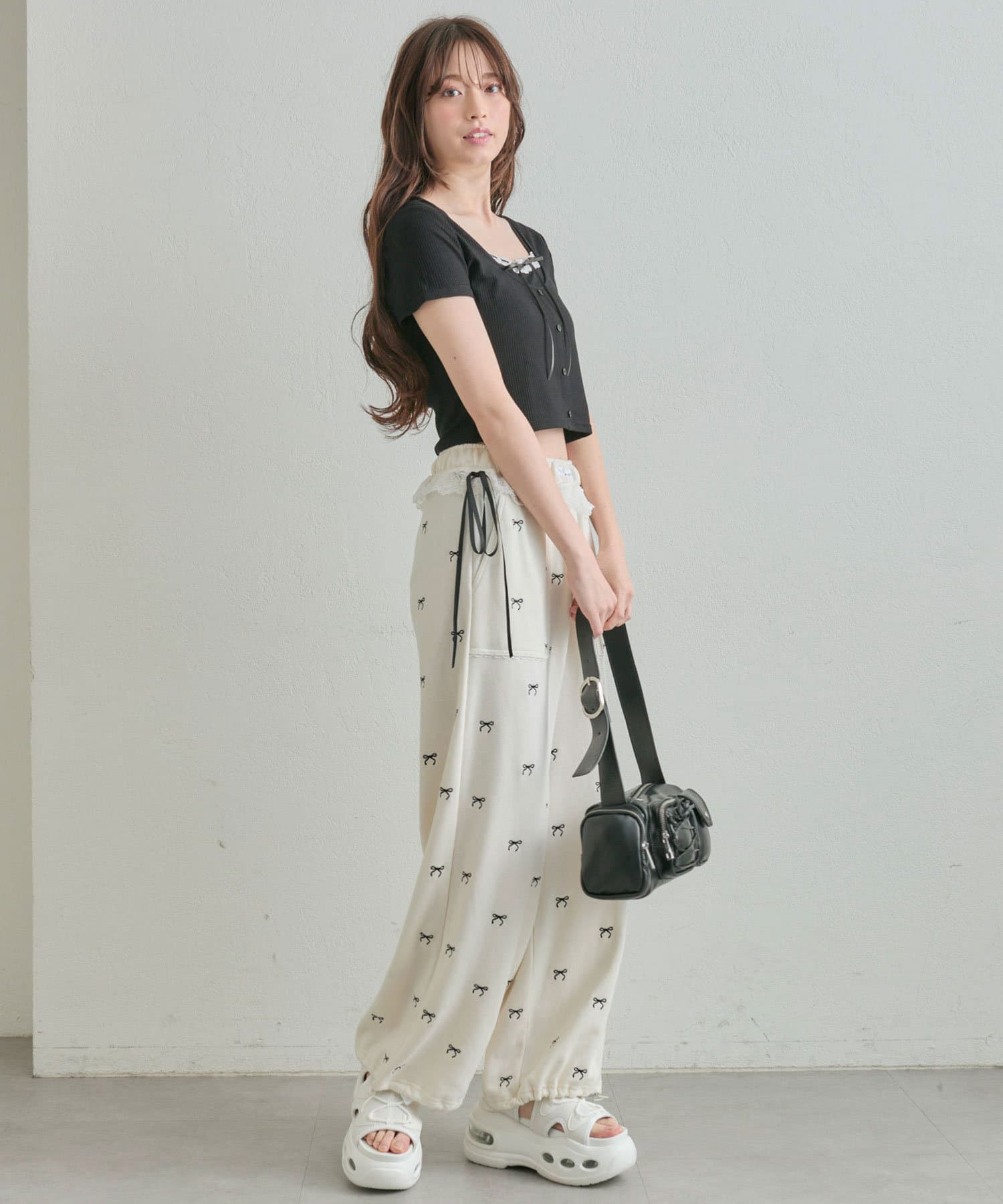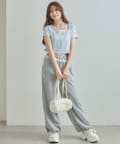 ・デニムやスウェットパンツと合わせたカジュアルガーリーなコーデもかわいいです。