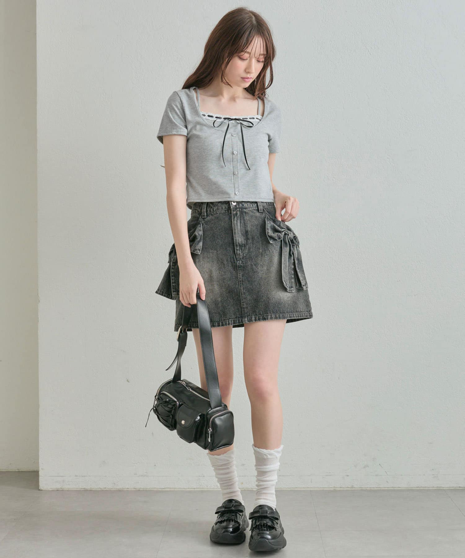 ・ミニスカートと合わせてガーリーに仕上げるのがおすすめ。
