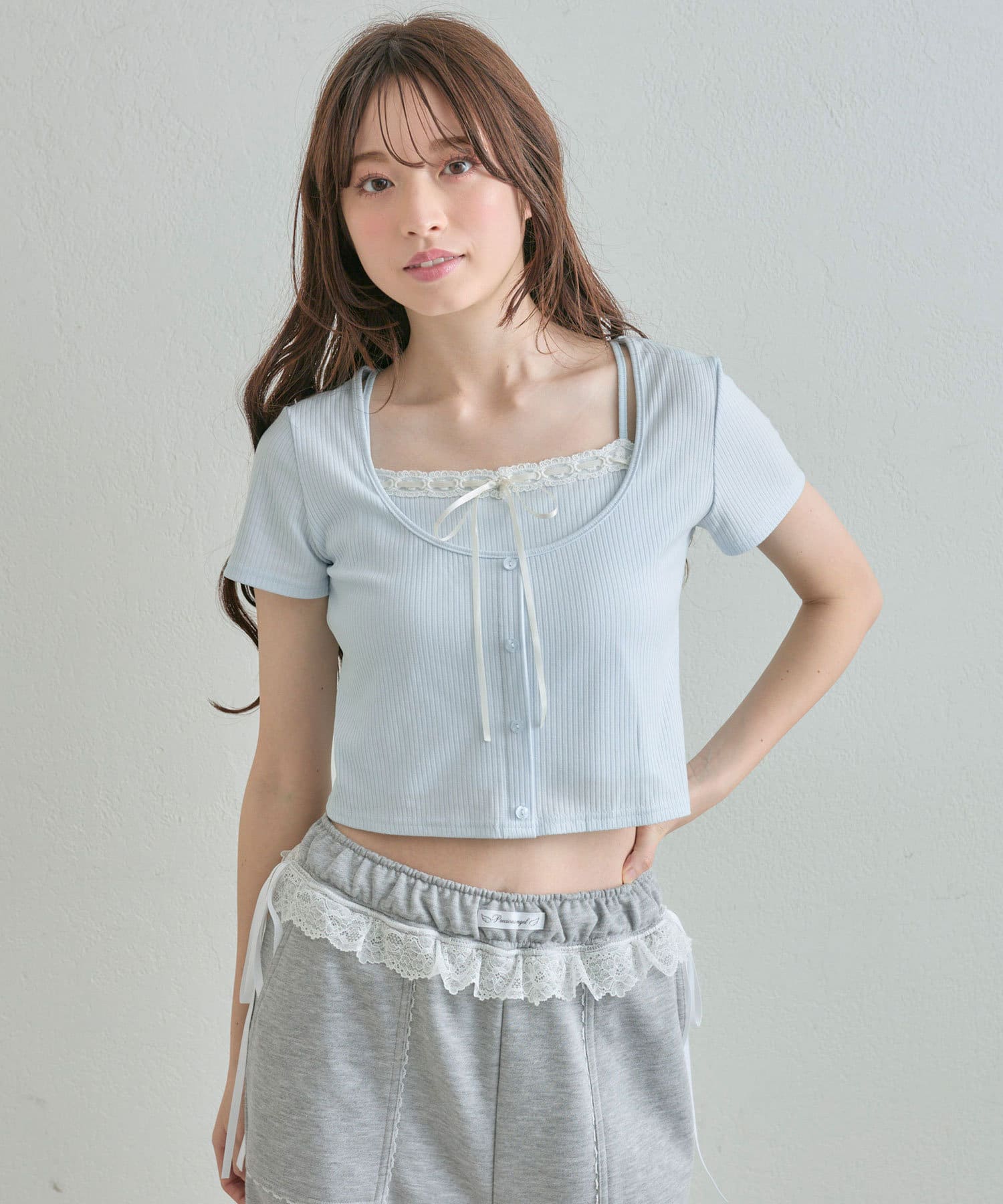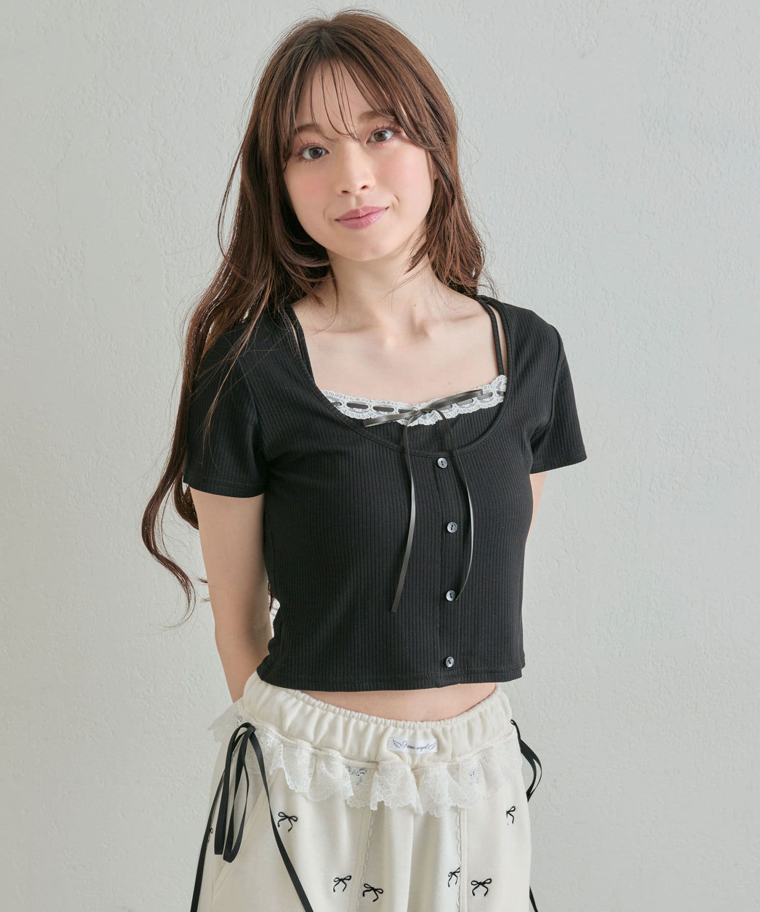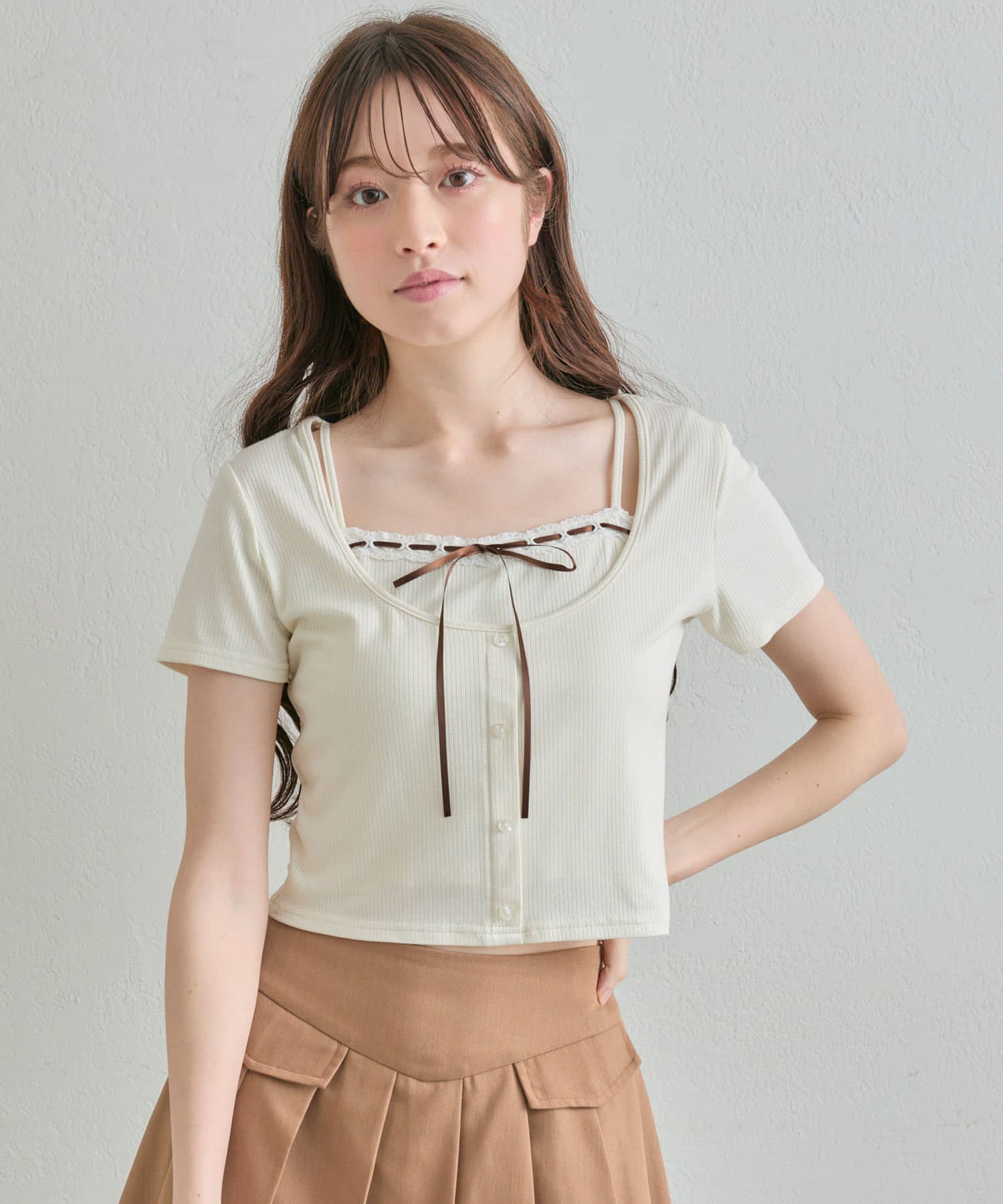 品番 1051060460 素材 【アイボリー・ブラック】本体: レーヨン93%, ポリウレタン7% レース部分: 綿50%, ポリエステル50% リボン: ポリエステル100% 【サックス・トップグレー】本体: ポリエステル65%, レーヨン28%, ポリウレタン7% レース部分: 綿50%, ポリエステル50% リボン: ポリエステル100% 原産国 中国 サイズ FREE カテゴリ トップス > Tシャツ/カットソー タイプ レディース ギフト ラッピング 可 取り扱い 本体:手洗い可能 アイテムサイズ