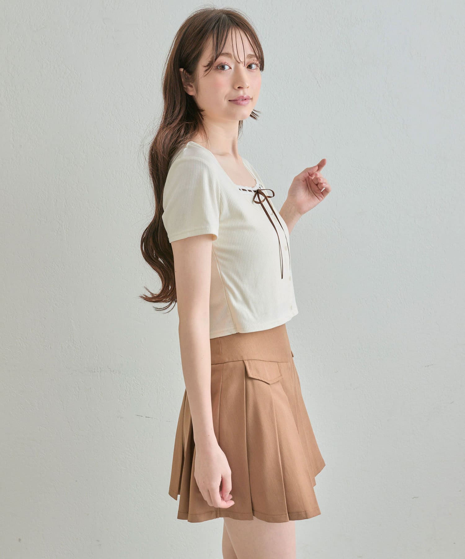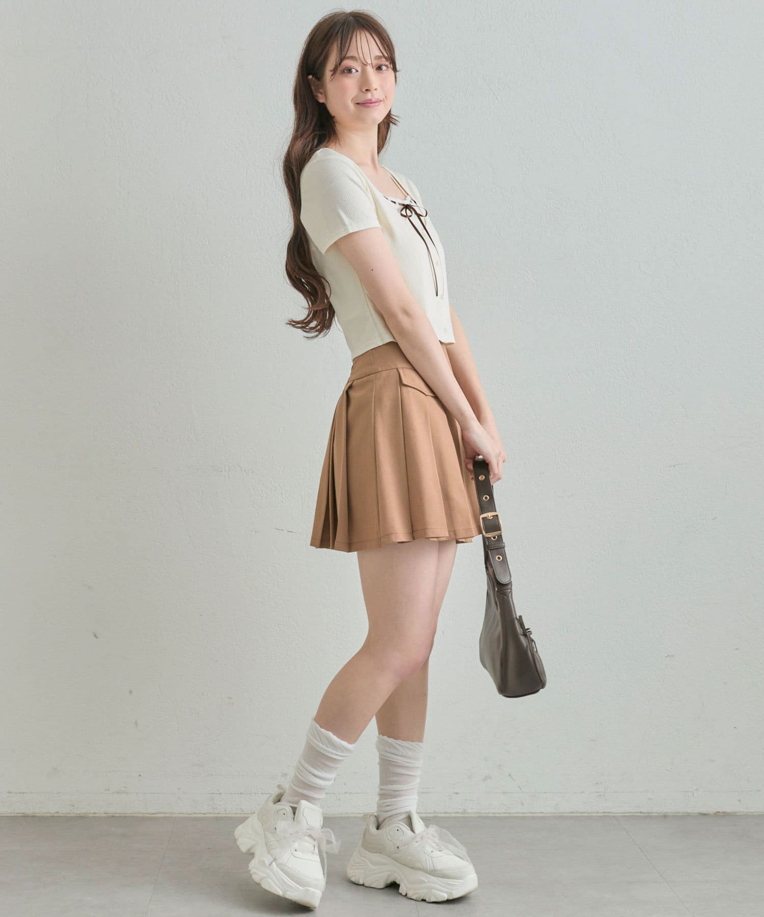 ・インナーはカップ付きのキャミを合わせると、下着のラインを気にせず着れます。
