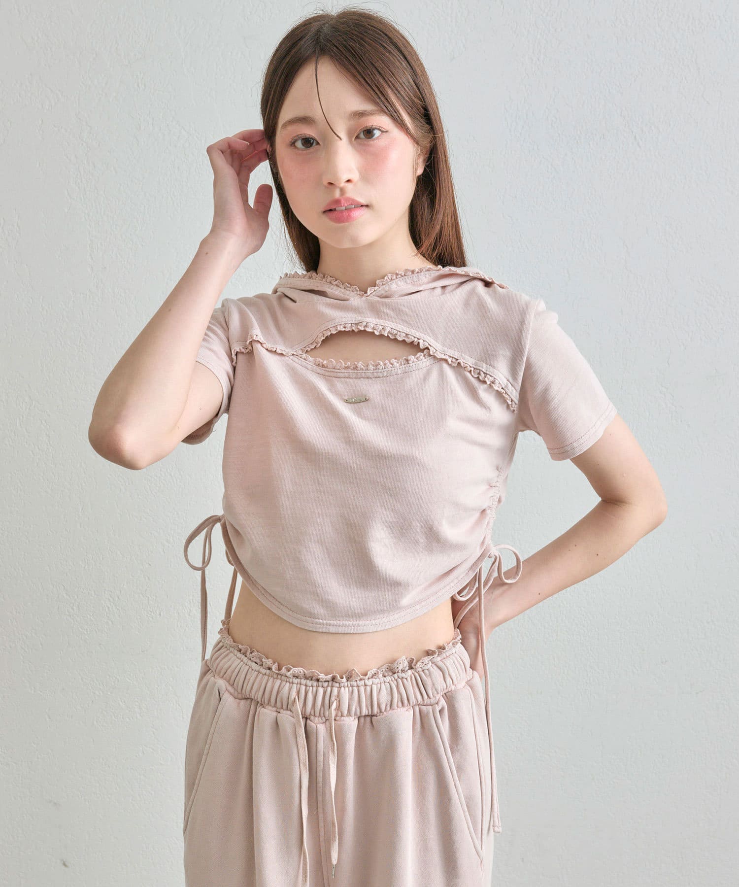 ・フード付きでカジュアルなカットソーだけど、フリルやリボンなど甘さ要素も詰まったデザインです。