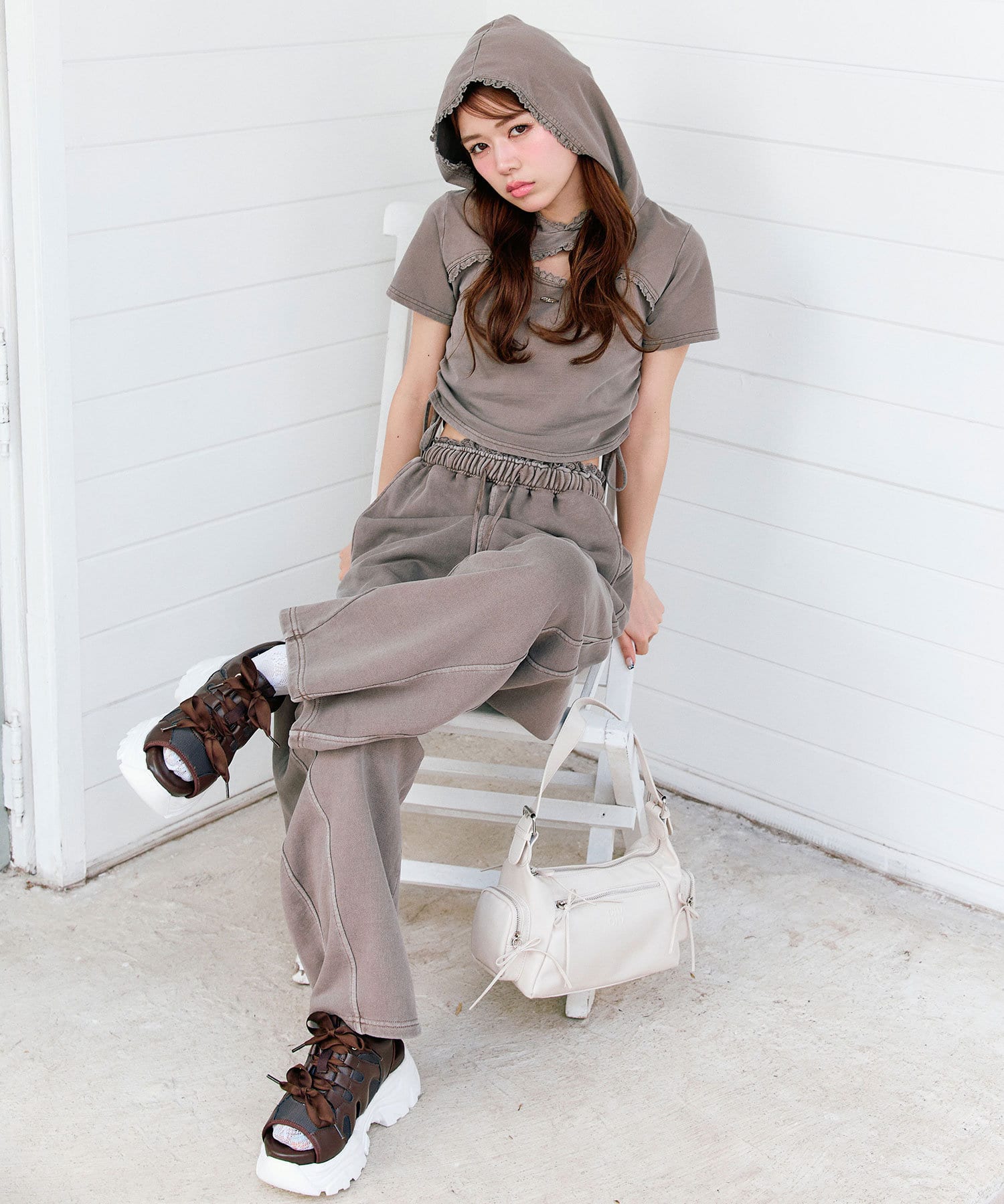 ・同色のバレルレッグスウェットパンツ(商品番号:1051020050)とセットアップで着るのが一押し。