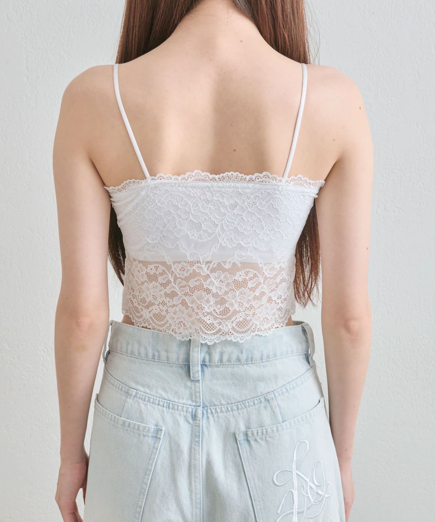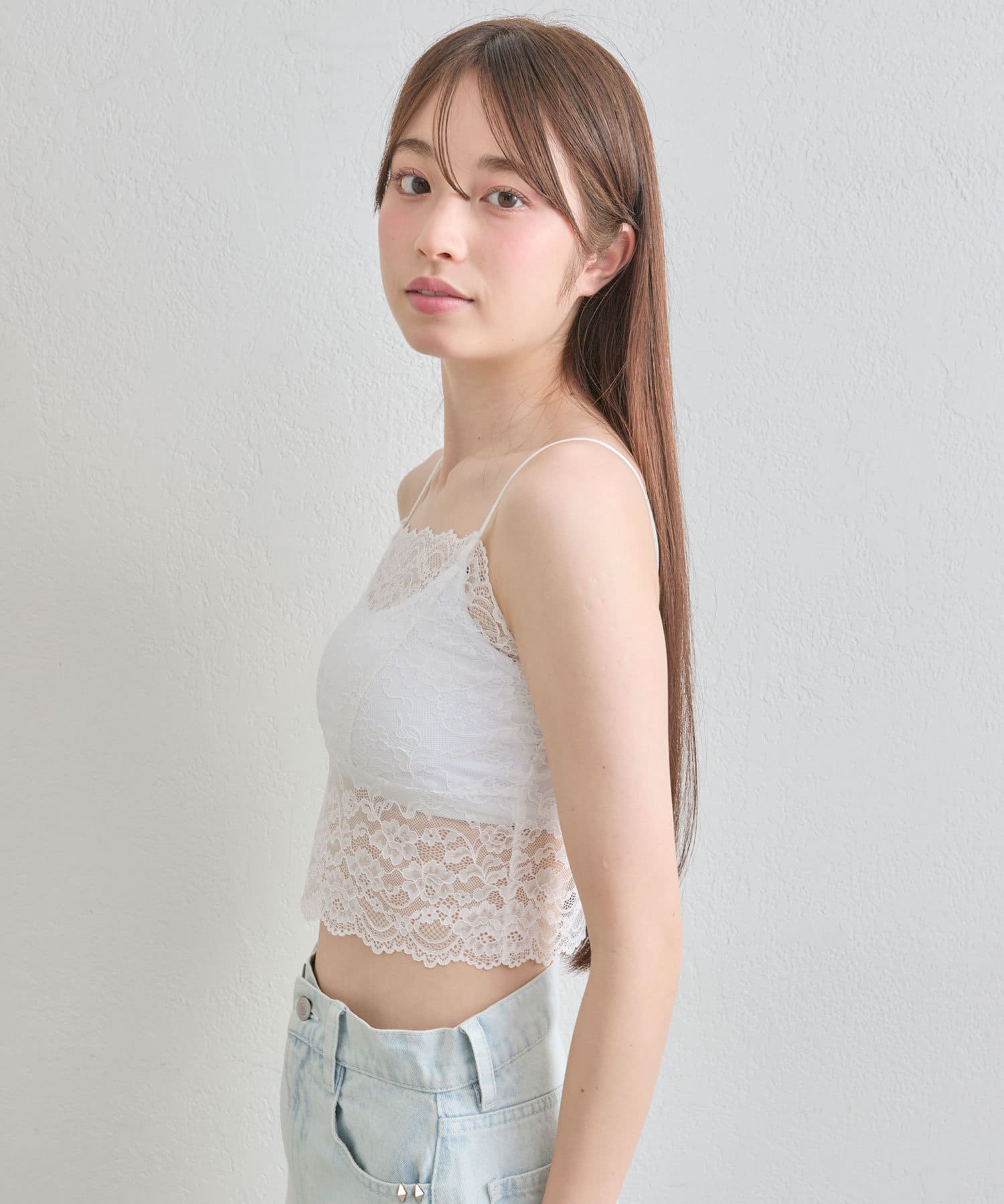 ・繊細なレースが施されたデザインで、フェミニンな印象を演出します。