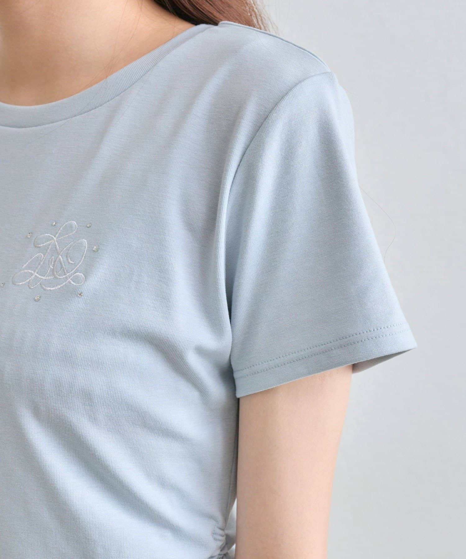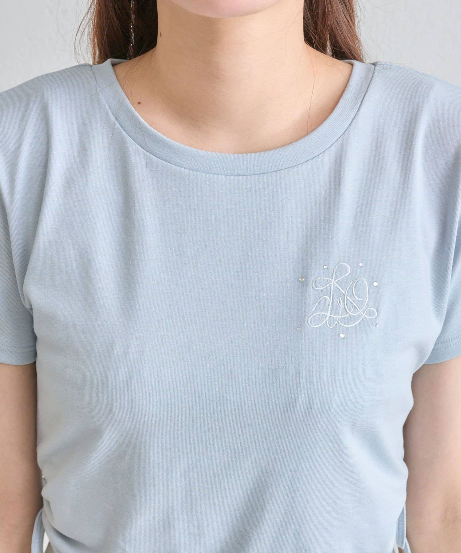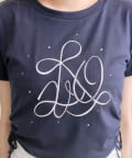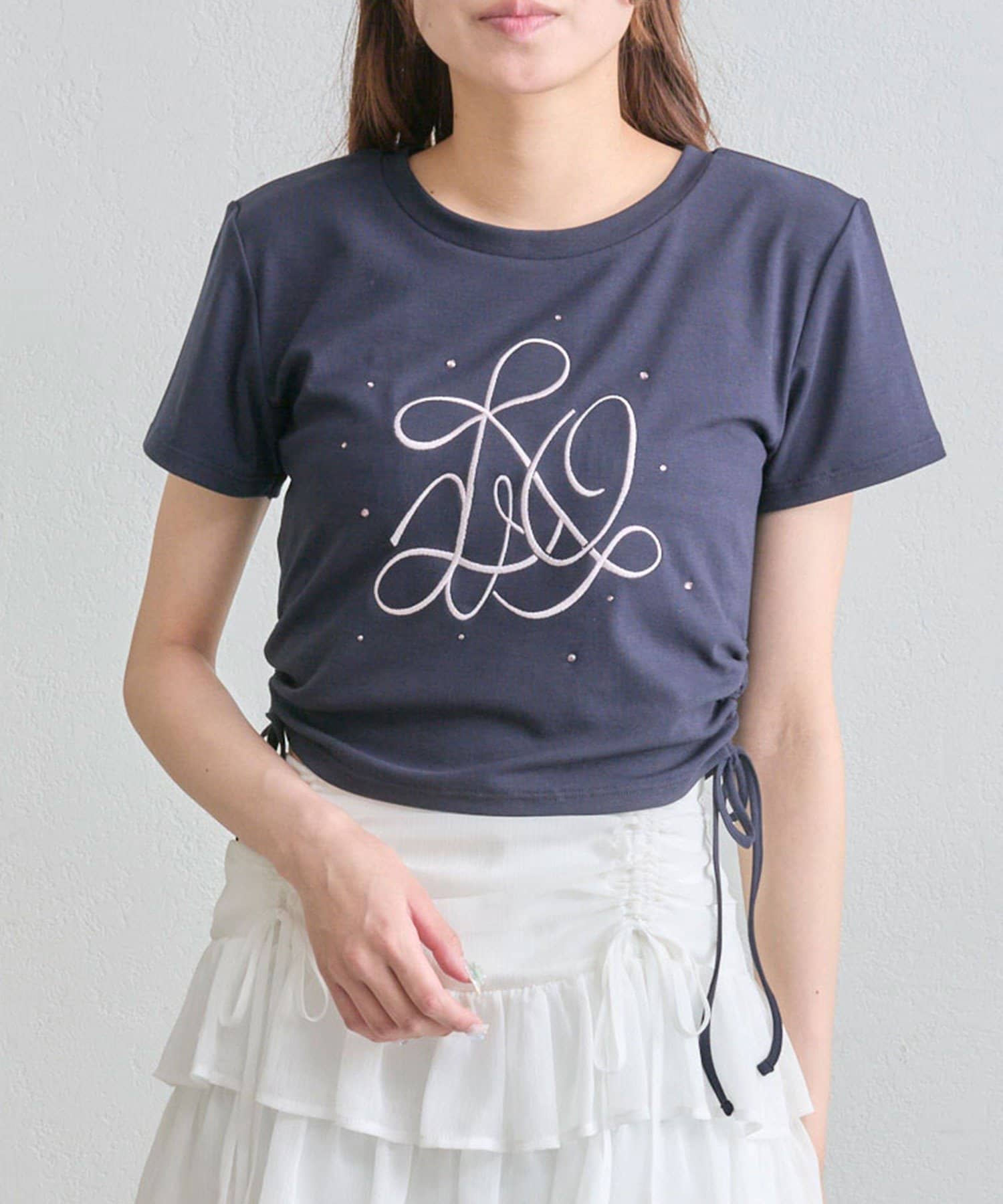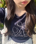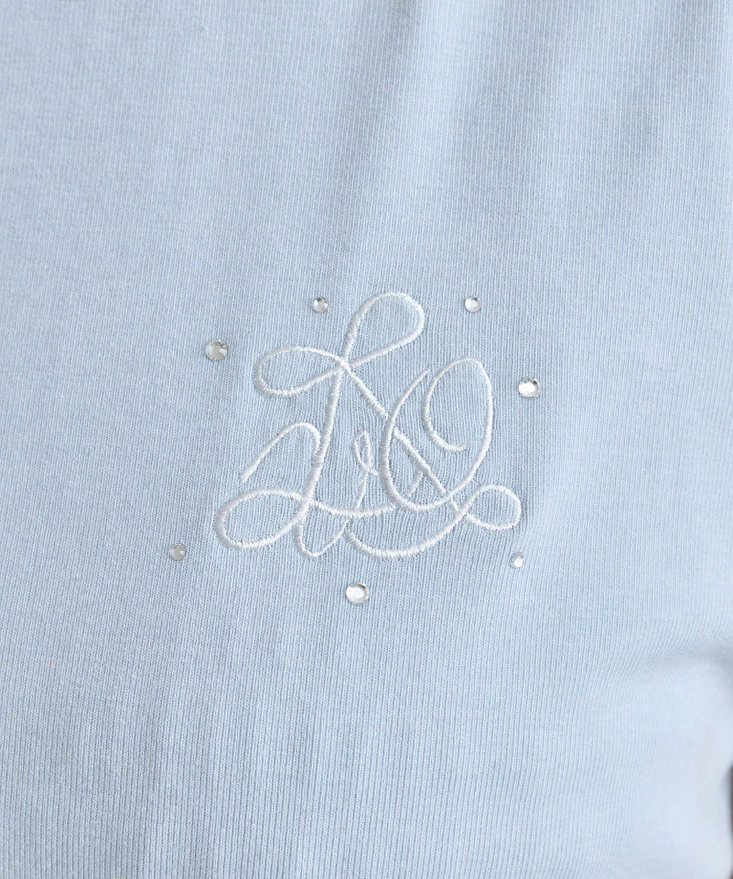 ・オフは大きなきらきらロゴ、サックスは胸元にストーン付きの刺繍、ネイビーはフロントにロゴ刺繍と、カラーによってデザインが異なります。