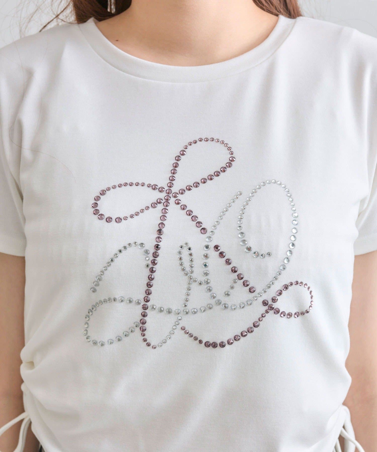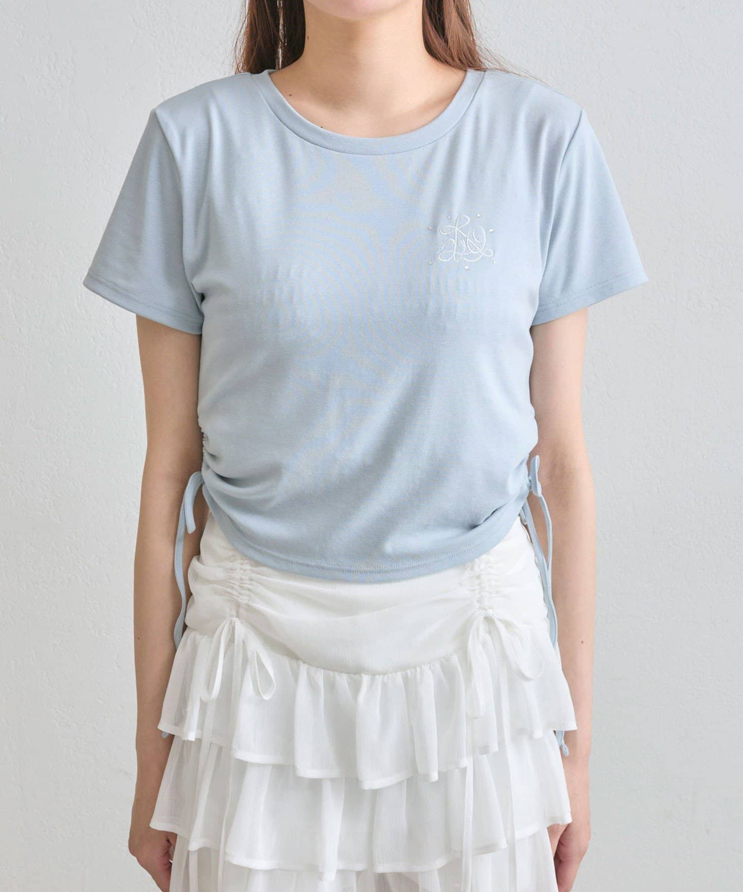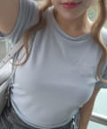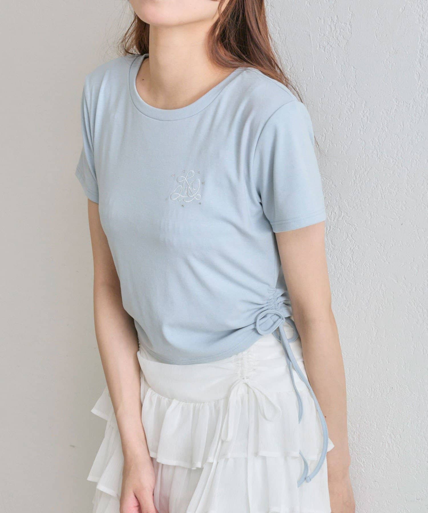 ・オフは大きなきらきらロゴ、サックスは胸元にストーン付きの刺繍、ネイビーはフロントにロゴ刺繍と、カラーによってデザインが異なります。