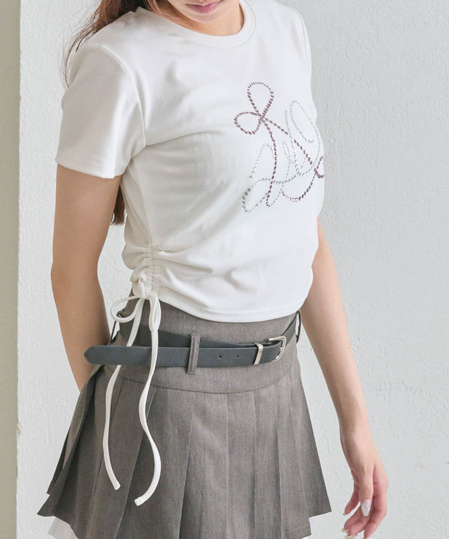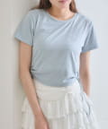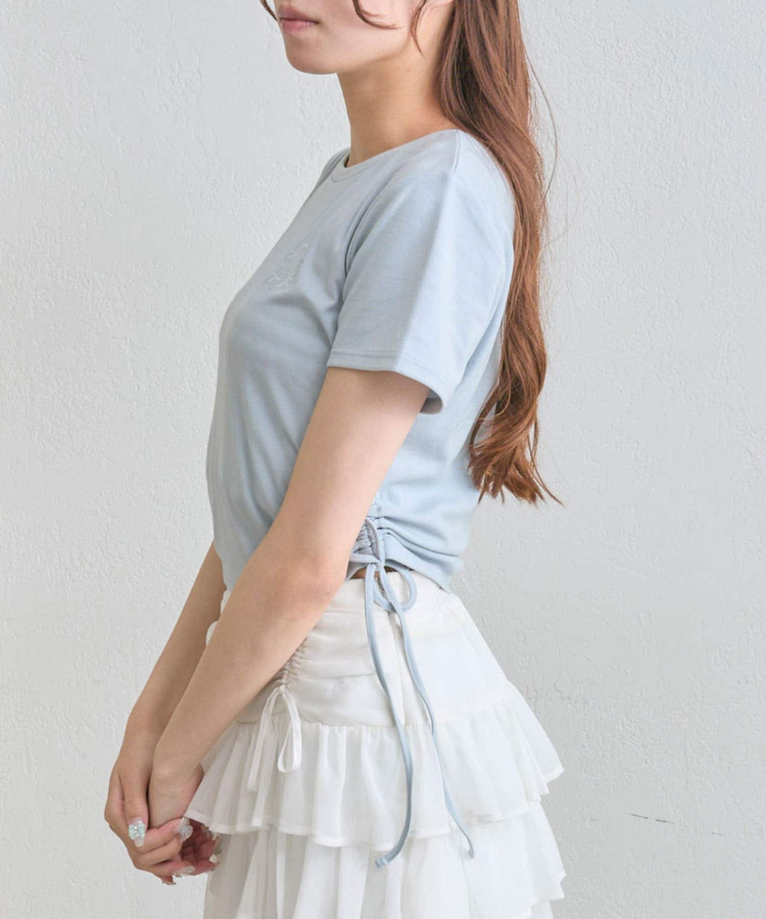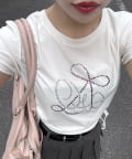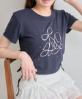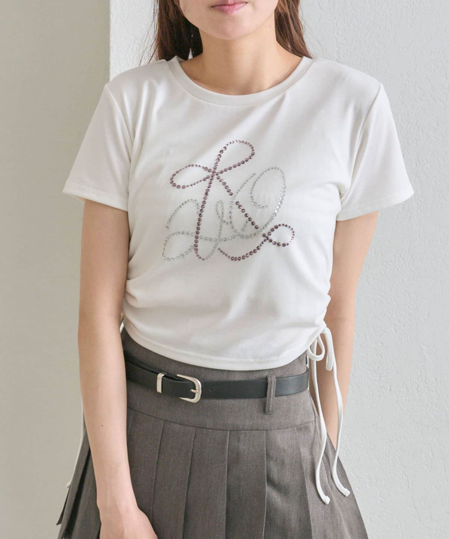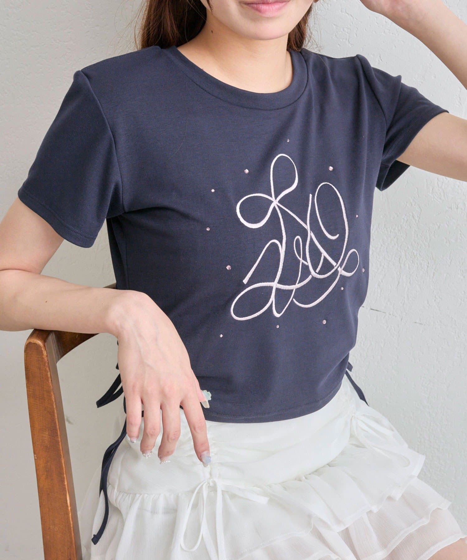 ・オフは大きなきらきらロゴ、サックスは胸元にストーン付きの刺繍、ネイビーはフロントにロゴ刺繍と、カラーによってデザインが異なります。