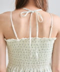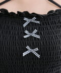 ・胸元はシャーリングで伸縮性が抜群なので、体にフィットして華奢見えします。