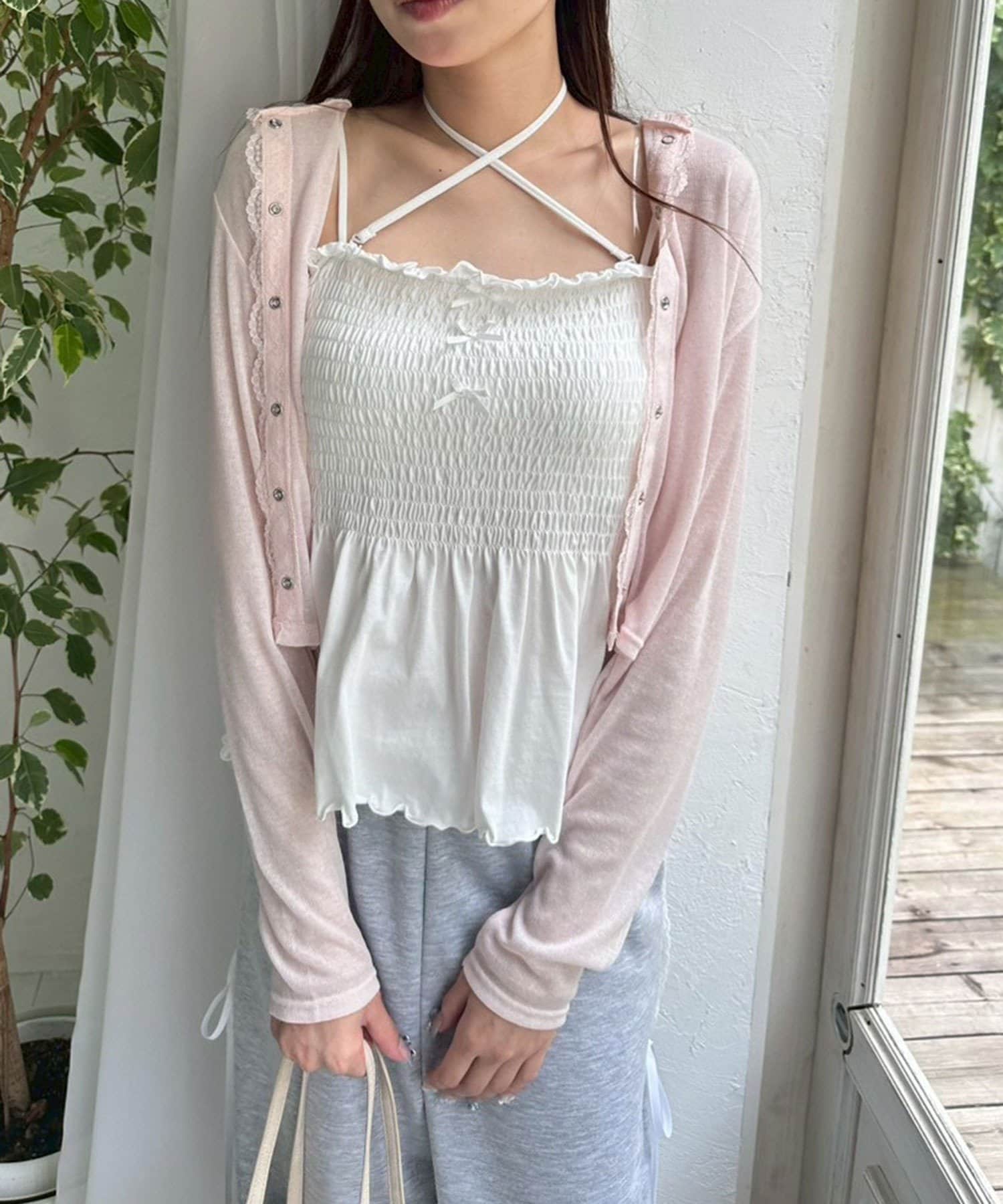 ・リボンやクロスさせたホルターネックなど、着映え要素たっぷりなインナー。