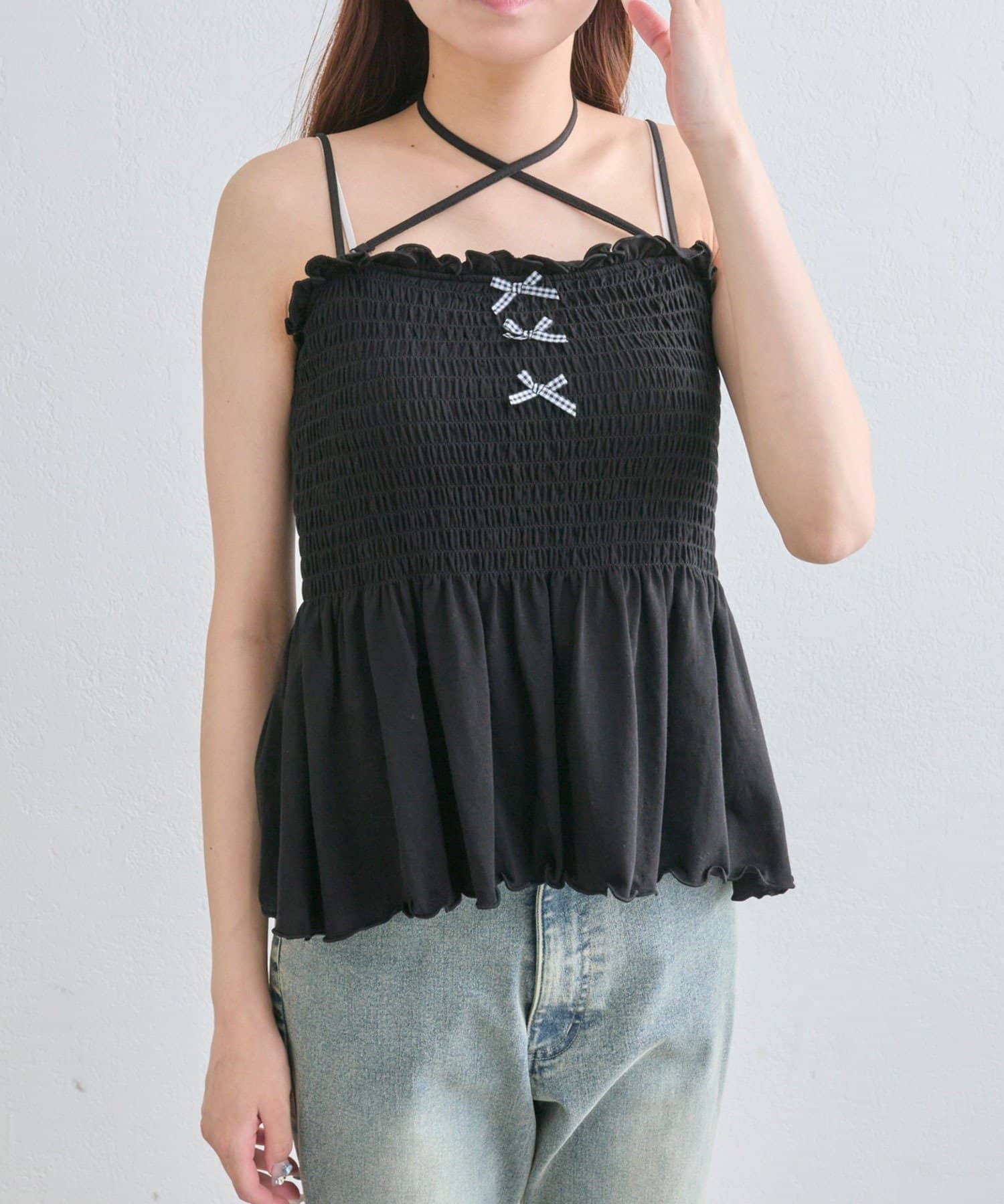 品番 1051060560 素材 【オフ・ブラック】本体: 綿100% リボン: ポリエステル100% 【アイボリー】本体: ポリエステル65%, 綿35% リボン: ポリエステル100% 原産国 中国 サイズ FREE カテゴリ トップス > キャミソール タイプ レディース ギフト ラッピング 可 取り扱い 本体:手洗い可能 アイテムサイズ