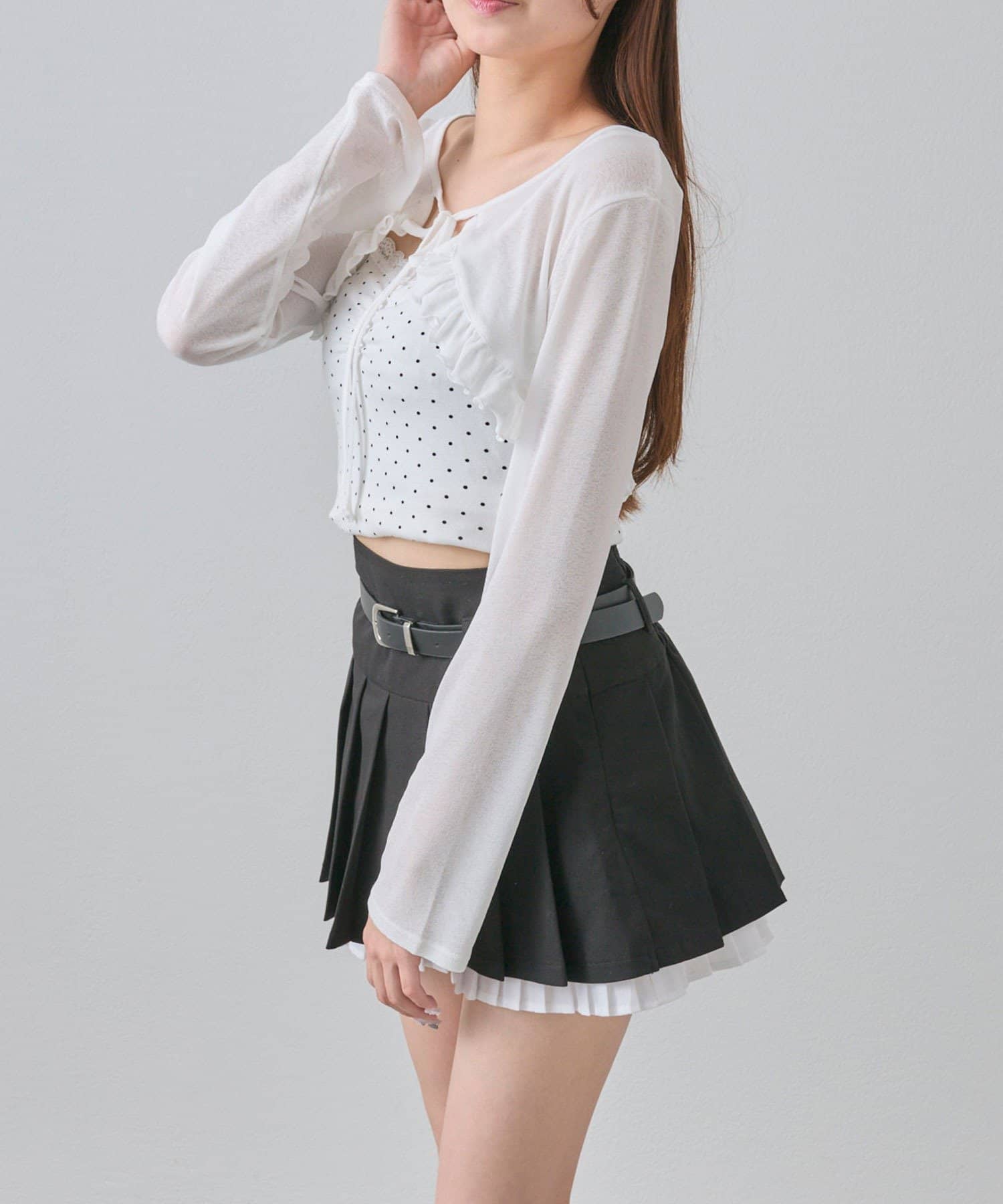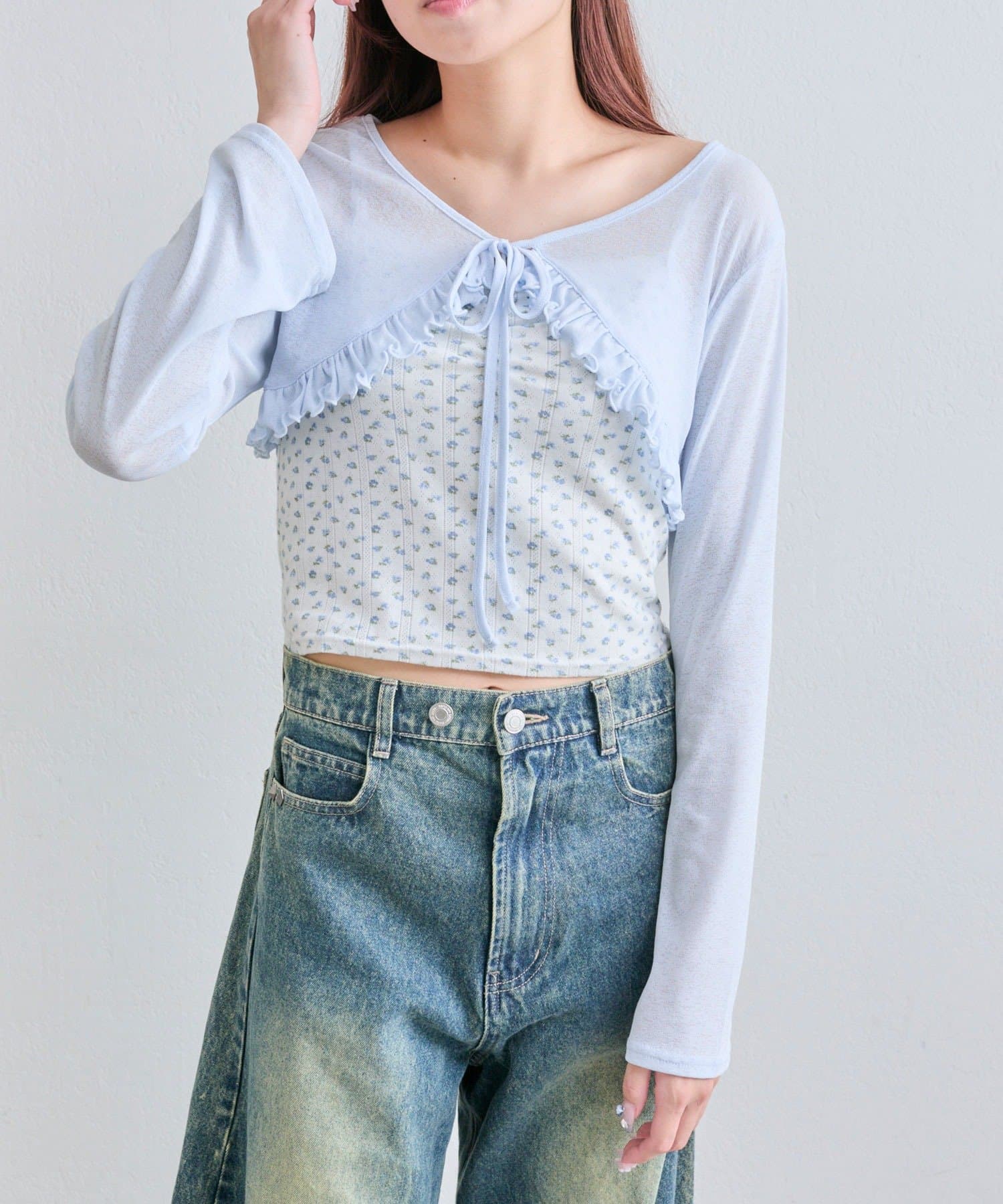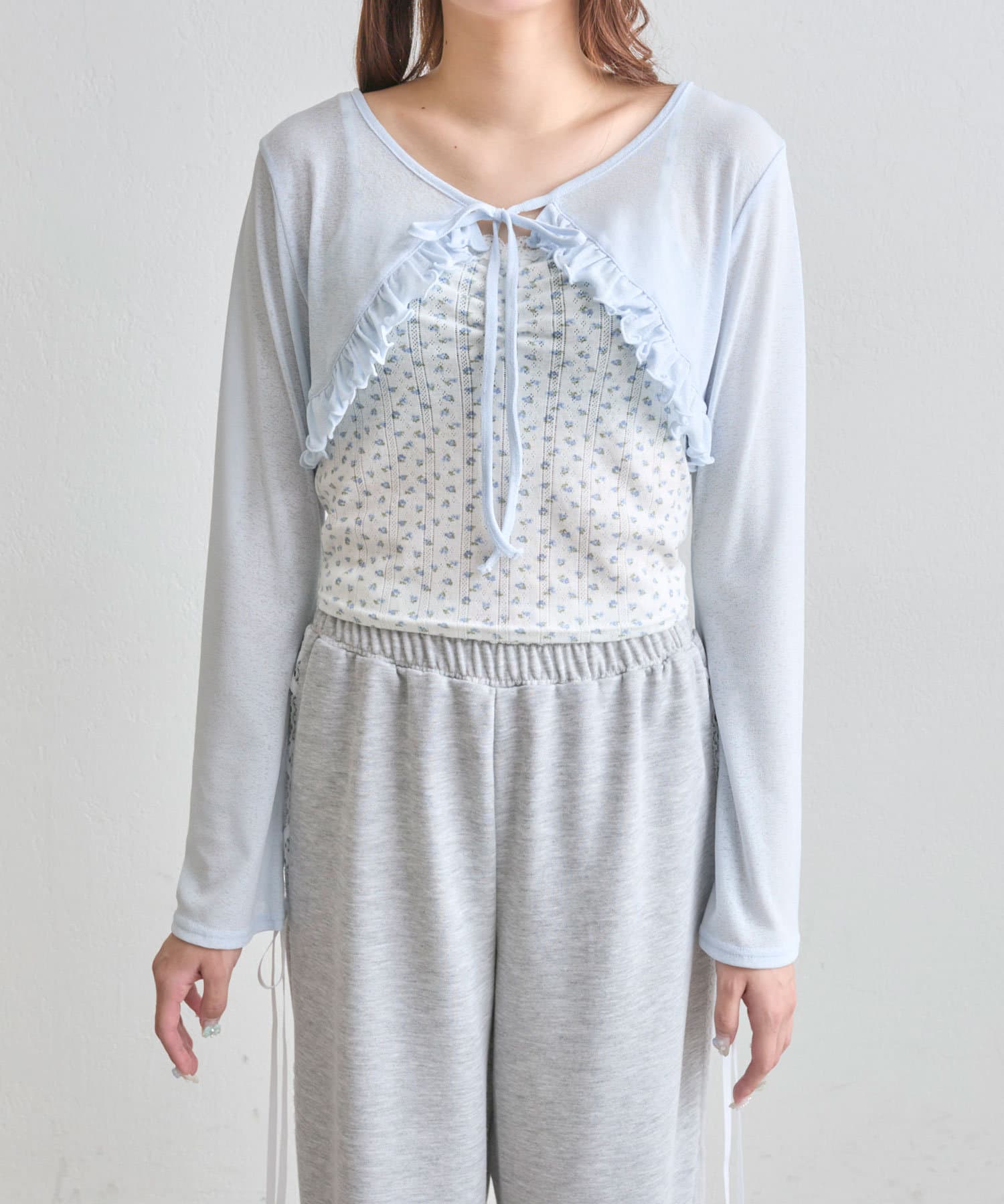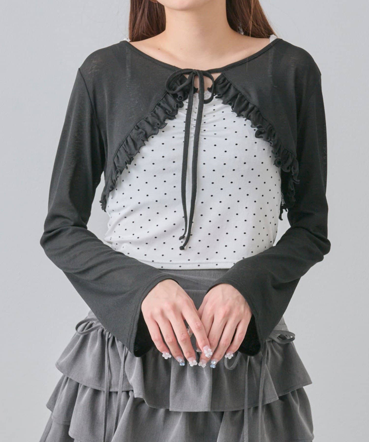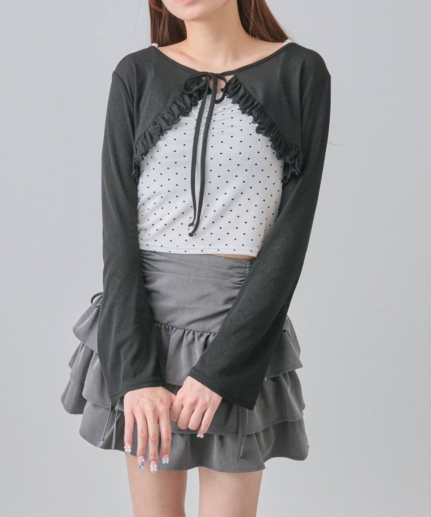 ・フリルがかわいいボレロと、レースが大人っぽいキャミのセットアイテム。