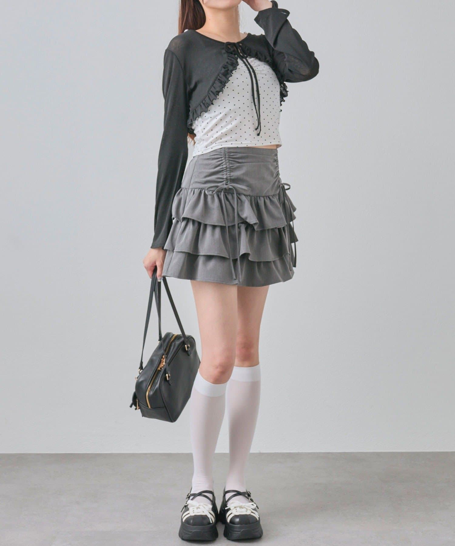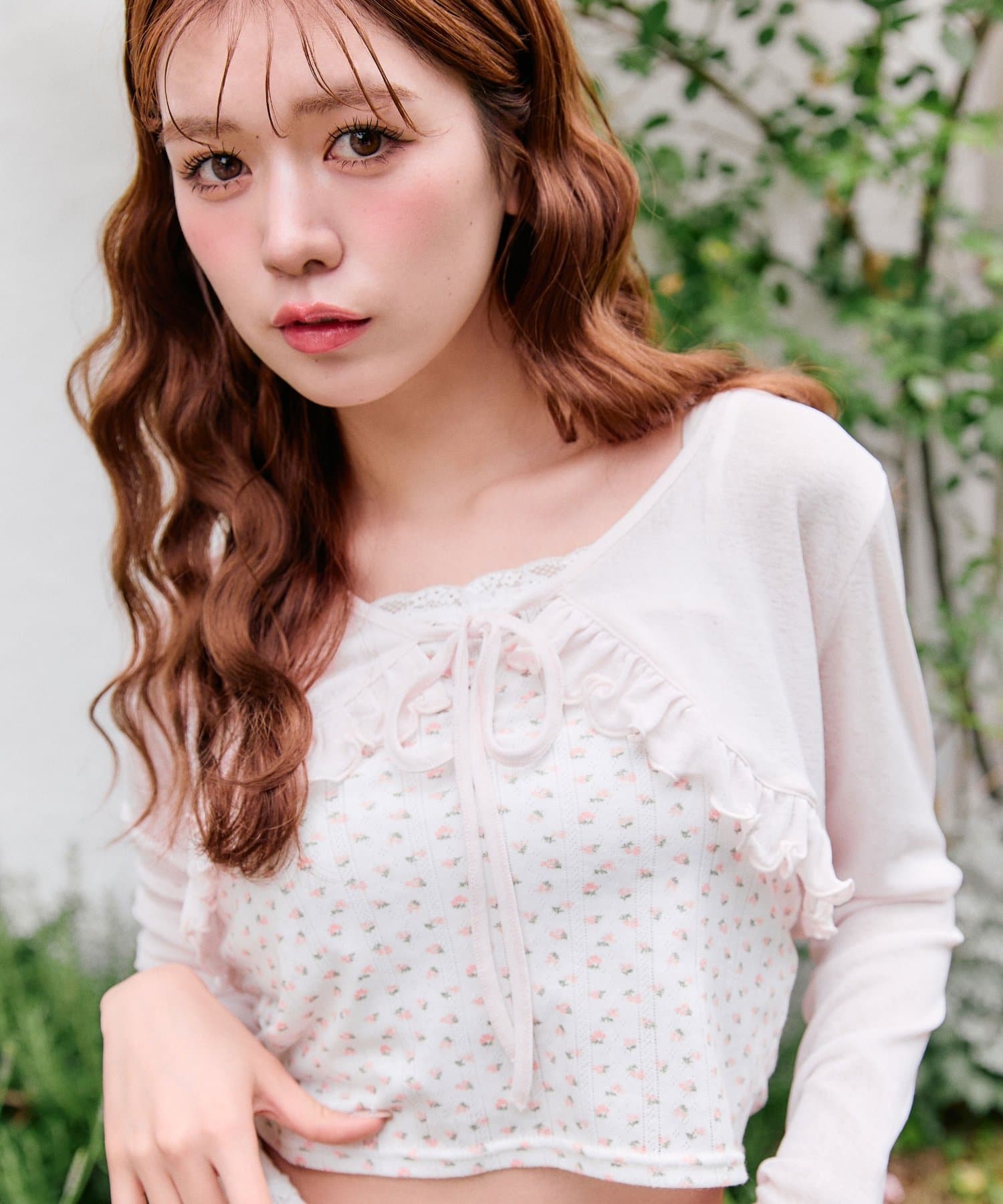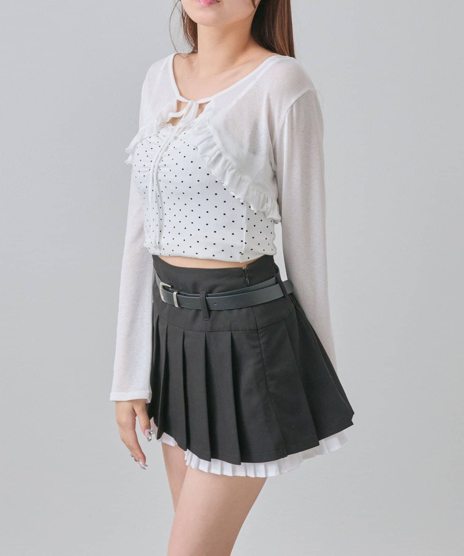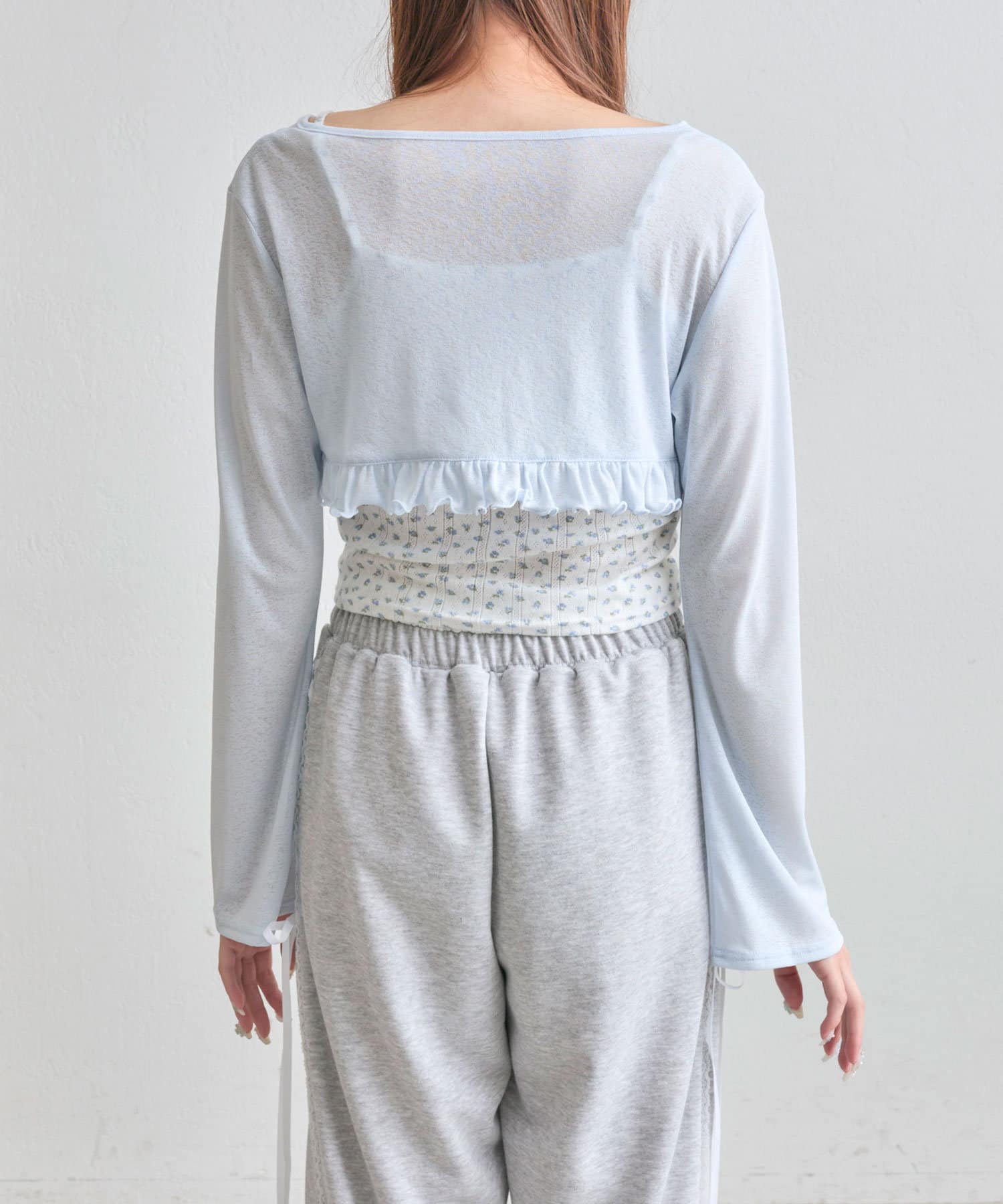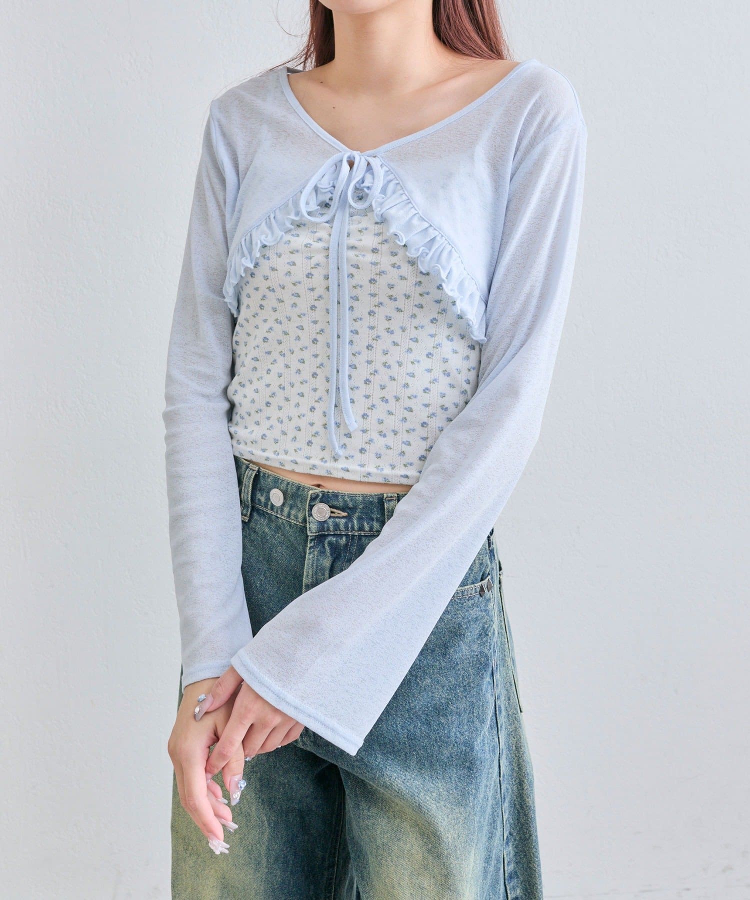・フリルがかわいいボレロと、レースが大人っぽいキャミのセットアイテム。