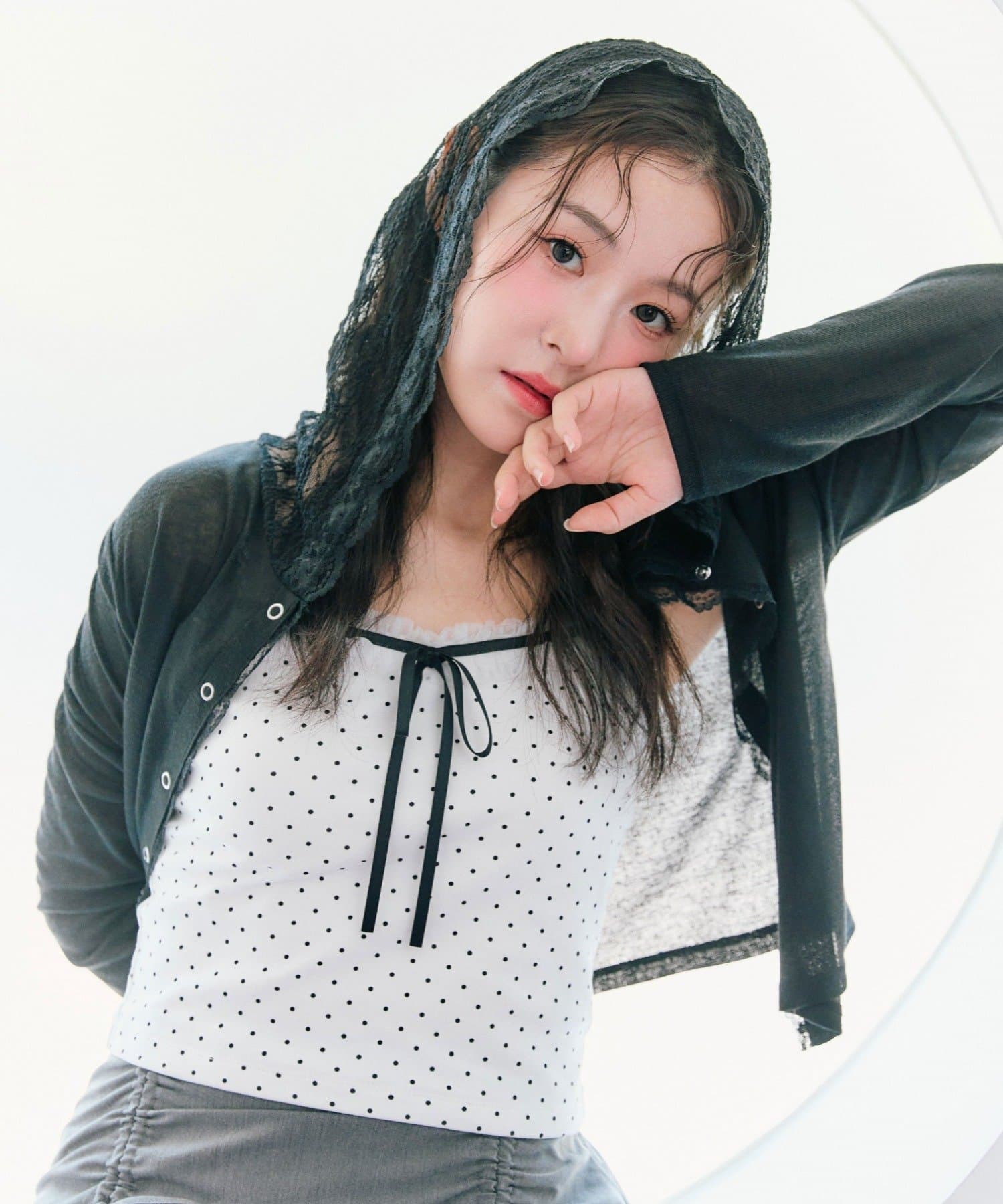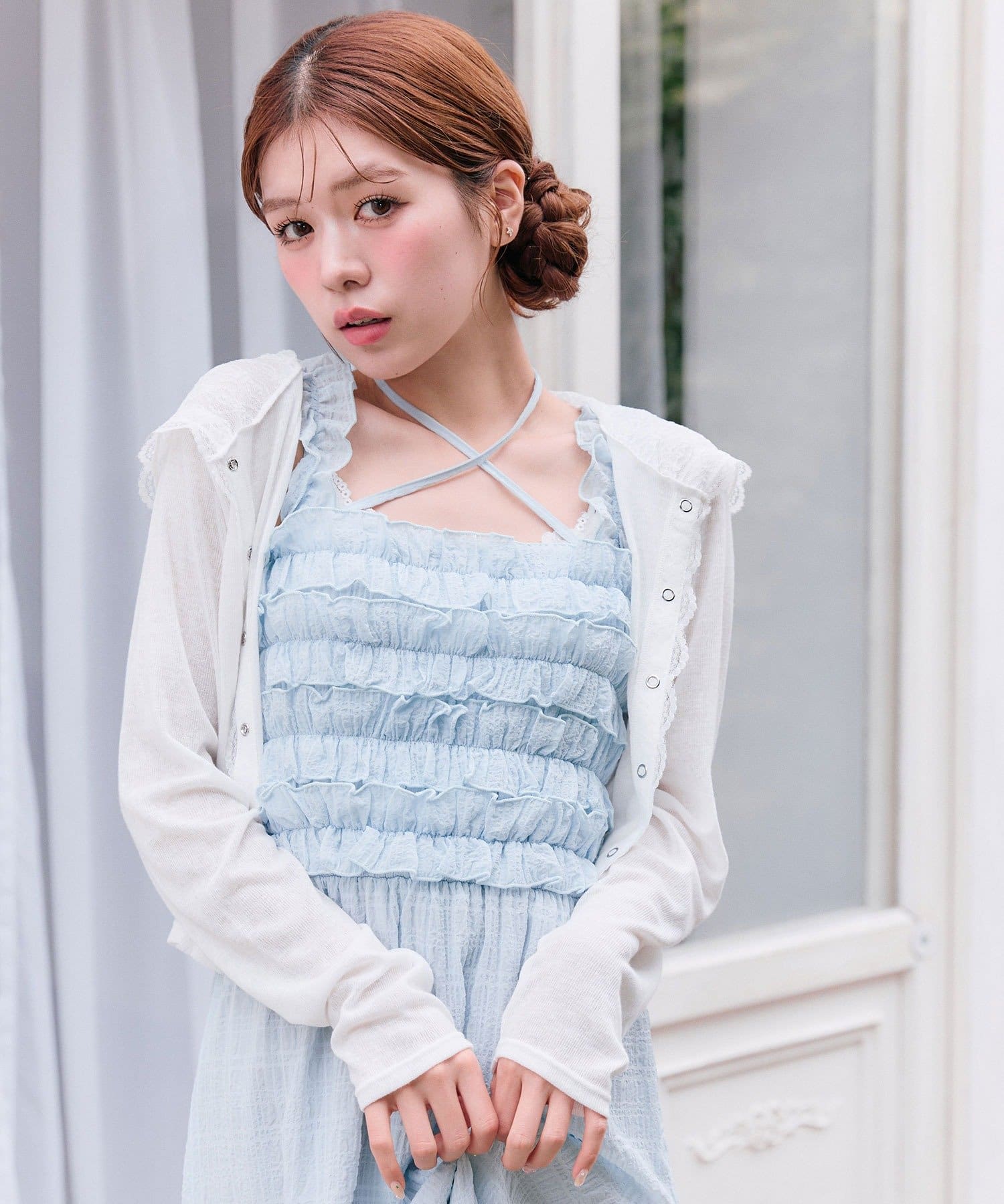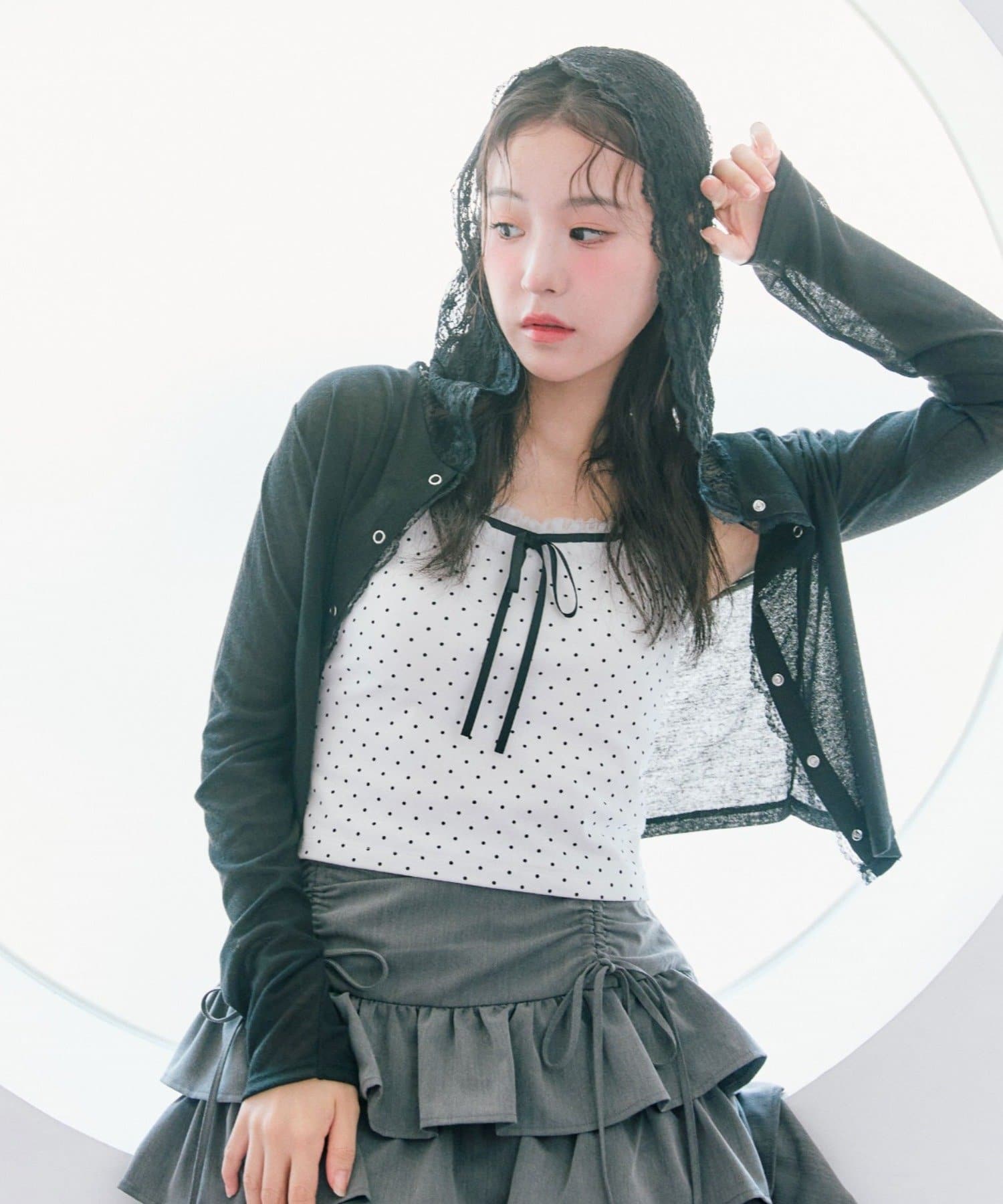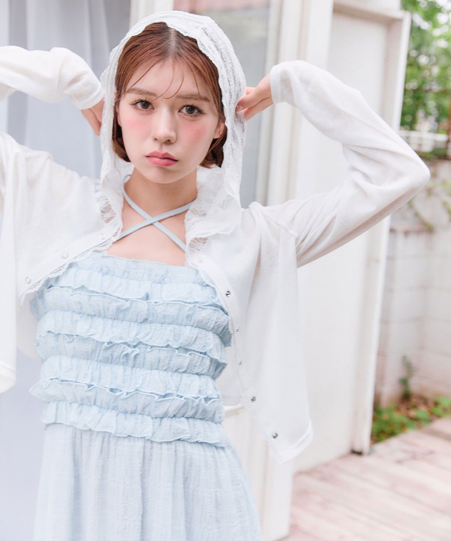 ・透け感のある素材にレースのフード付きで、カジュアルすぎず甘め要素もあるパーカー。
