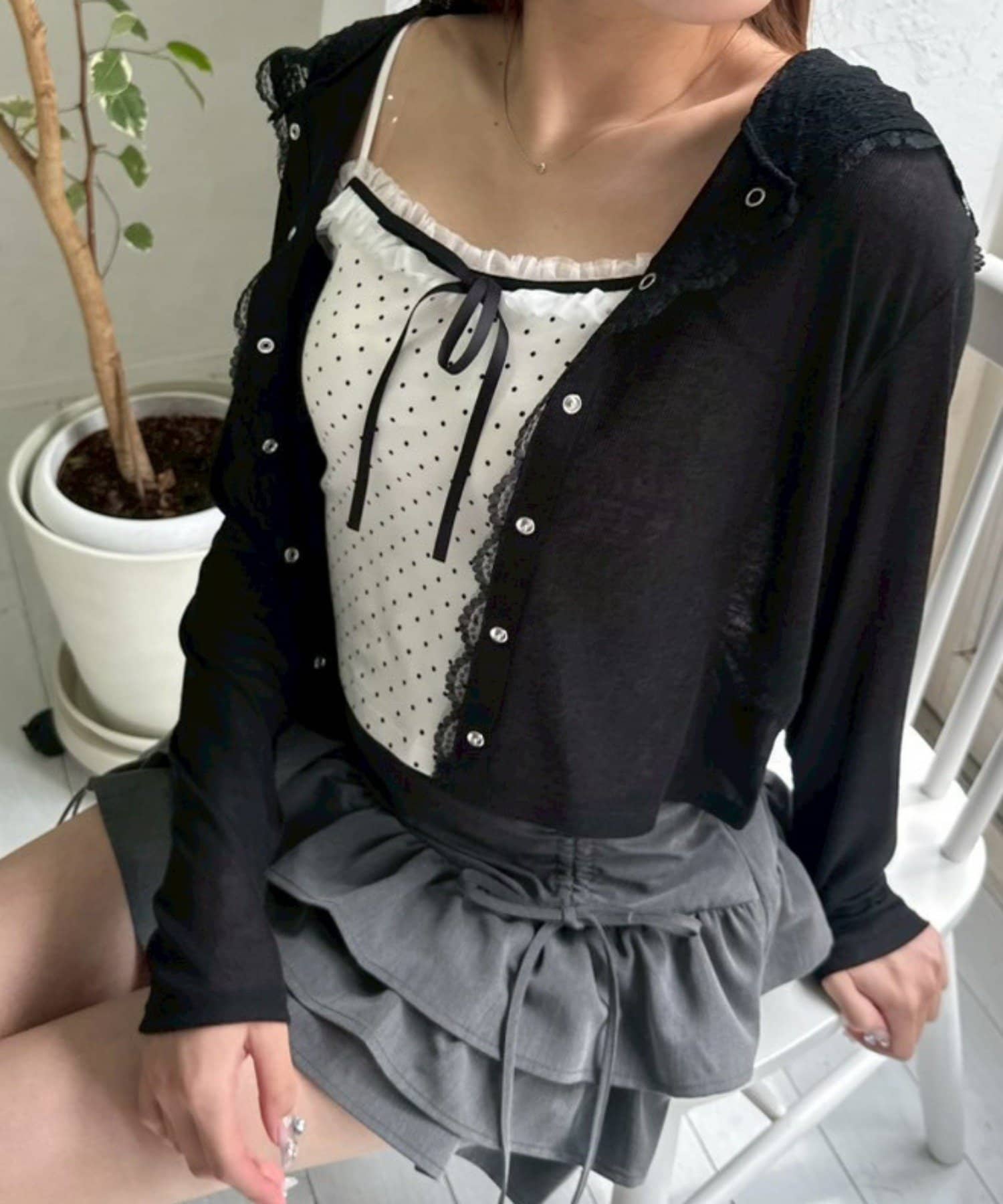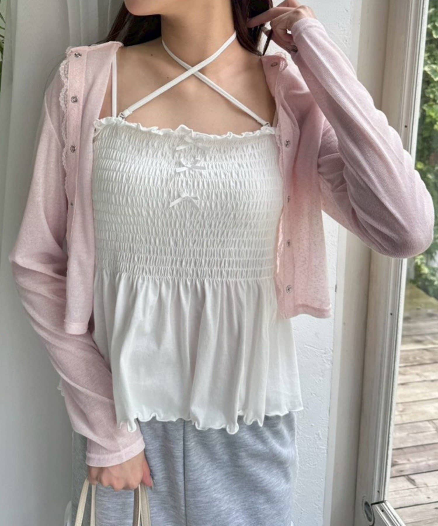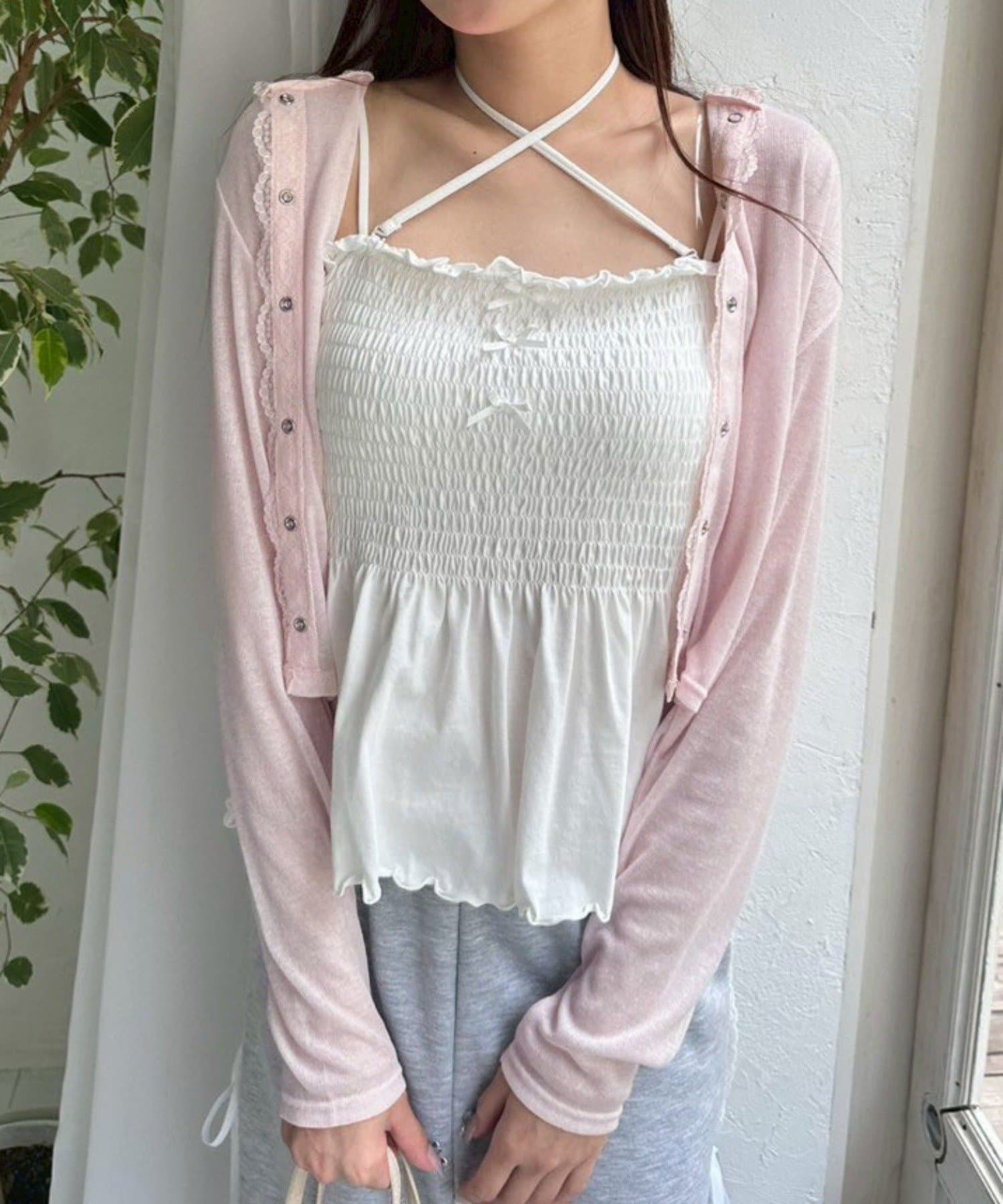 ・トップスとして着るときはカップ付きインナーを合わせるのがおすすめ。